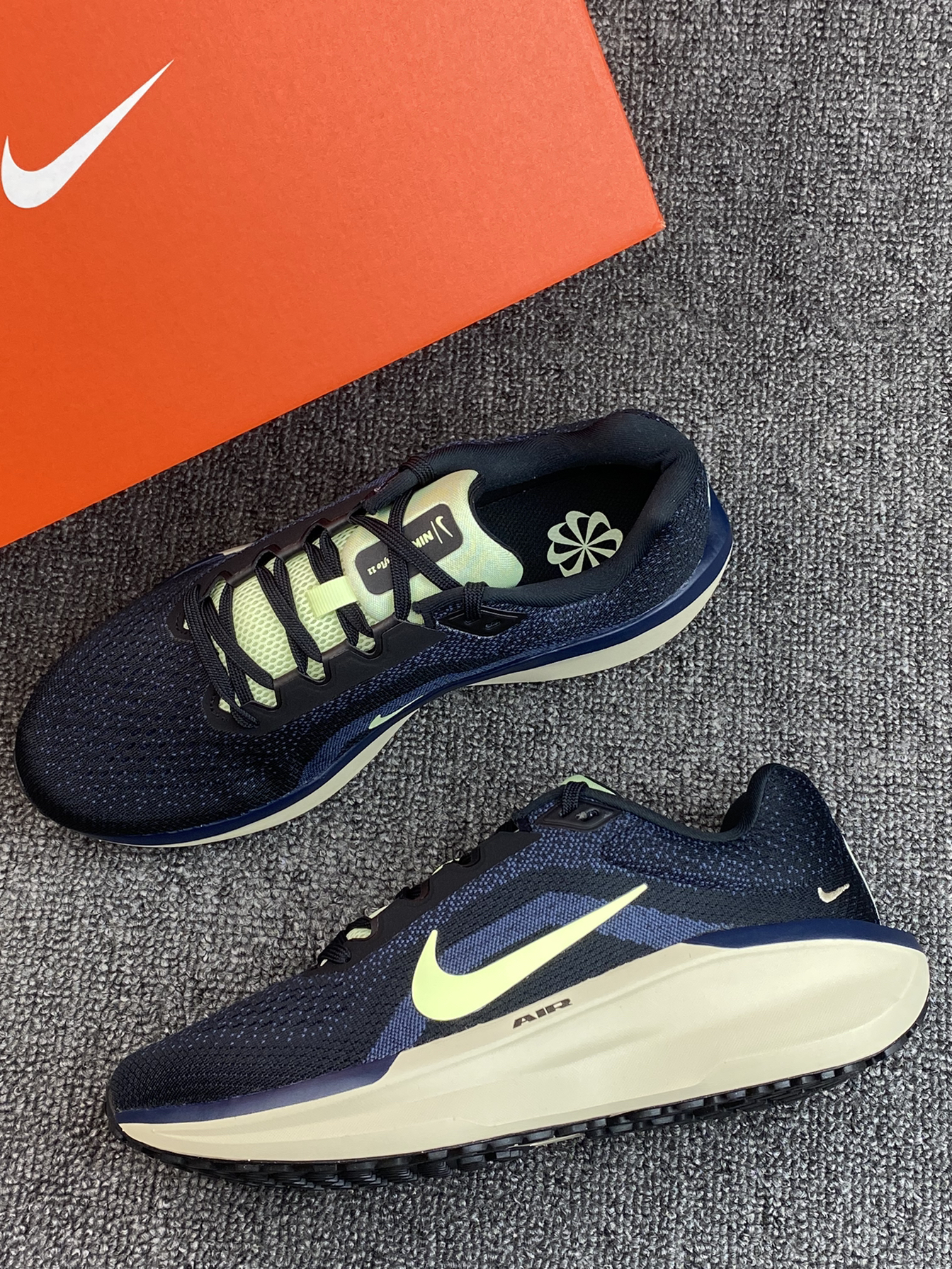 👟Nike Winflo 11 跑鞋 ✨才发售的新配色这就四开了,不得不说颜值依旧在线哎,黑蓝色比较沉稳耐看,但又加了荧光绿,让鞋子看起来更有活力感了。 🌸鞋面透气性没问题的,而且包裹感体验也到位,主要还是中底的感受,整体脚感不是呆软的,有一定的韧性回弹,对于平常跑步或者通勤穿都合适。 🤫目前4⃣️开的价位还是蛮有诚意的,我觉得自穿或者送人都是不错的选择。