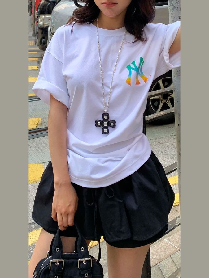 姐妹们!挖到宝了!!今年夏天最让我心动的单品必须是这件MLB短袖!从版型到细节都长在我的审美点上,直接封神🔥 🌟 高级感设计,简约不简单 整体走极简风,但一点都不寡淡!经典的小标LOGO在胸口若隐若现,不会太夸张又自带辨识度✨ 螺纹领口立体挺括,怎么洗都不变形,搭配高腰裤瞬间拥有直角肩,纯欲感直接拉满~侧边还藏着小刺绣,阳光下看超精致,细节控狂喜! 🧊 面料绝绝子,穿了像开空调 摸...