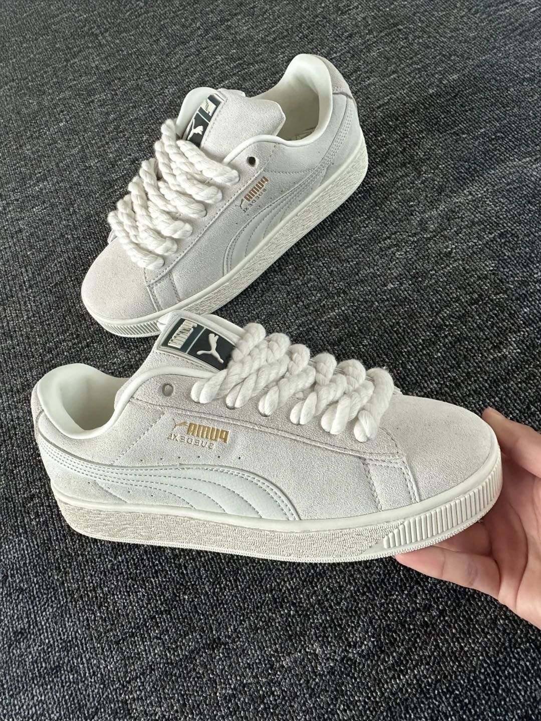 兄弟们,我最近入手了一双彪马Suede,想和大家分享一下。 一开始吸引我的是它的外观。经典的板鞋造型,简约又有点个性,上脚感觉挺百搭的。我买的是米白色的,颜色低调,日常穿挺合适的,搭配牛仔裤、运动裤或者工装裤都不错。 穿着这双鞋,感觉脚挺舒服的。鞋底软软的,弹性也不错,走久了脚不会很累。鞋面是麂皮材质,摸起来挺细腻的,透气性也挺好,春夏穿不会觉得闷脚。 让我挺惊喜的是,这双鞋的价格挺亲民的,...
