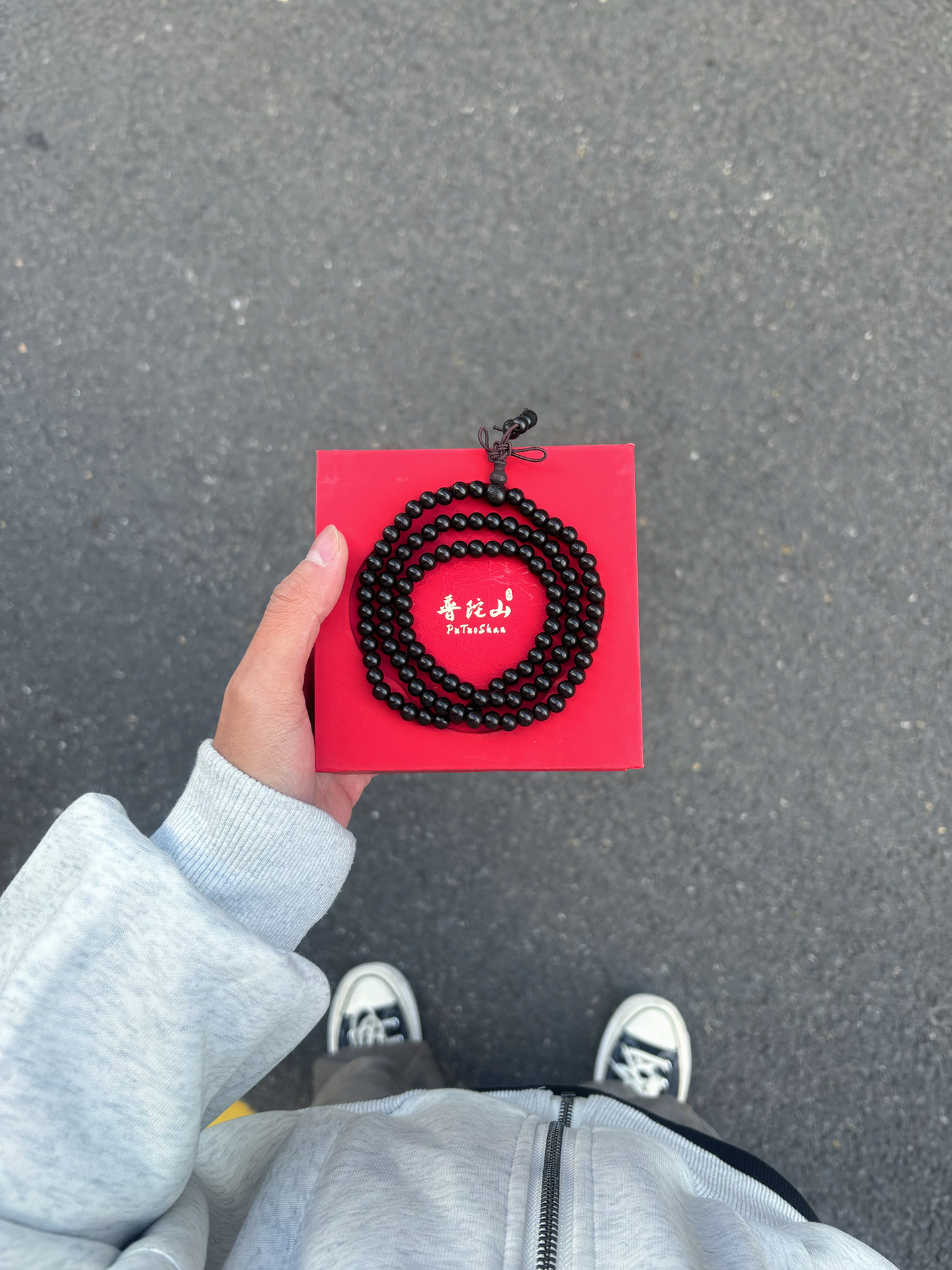 我太喜欢中国风的饰品了,正好马上就要回家过新年了,春节戴条国潮手串可太适合了! #普陀山文创 的这条新中式的八方来财的转运珠手串就很不错,是由108颗檀木串珠穿成的,整体看起来质感很不错,很有韵味,没事的时候还可以盘一盘打发一下时间哦!