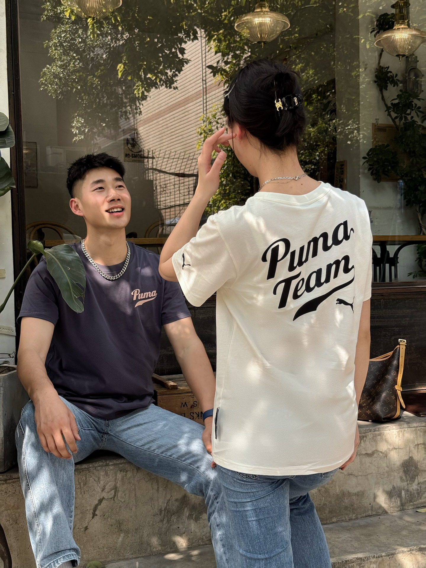春日午后的阳光真的太舒服了 阳光暖烘烘的 洒落在街头 热恋期的情侣怎么能少得了情侣👫装呢 Puma 今年的新品t恤 深得我心 白色经典百搭 胸前有小小的品牌logo字母 搭配牛仔裤 青春感满满 夏日出篇穿搭🟰白T👚➕蓝色牛仔裤👖 不得不说 这样一穿 随意往街头一坐 那种松弛感是什么也比不了的🦄 👔: #Puma 图片来源于网络,侵删
