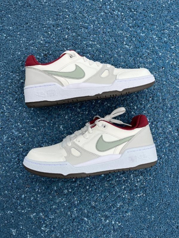 大家好,我最近入手了一双Nike Full Force小板鞋,想和大家分享一下我的使用体验。 这双鞋的颜色搭配挺有春日气息的。米白色的鞋面比照片上看起来更耐脏,我试过用湿巾擦咖啡渍,效果还不错。绿色的钩子是带灰调的薄荷绿,实物颜色挺特别的。后跟内衬有一圈酒红色,我觉得这个小细节挺有设计感的。 脚感方面,后跟的海绵挺厚的,穿的时候脚踝不会觉得磨。鞋底软度适中,比空军一号软一些,但又有一定的支撑性...