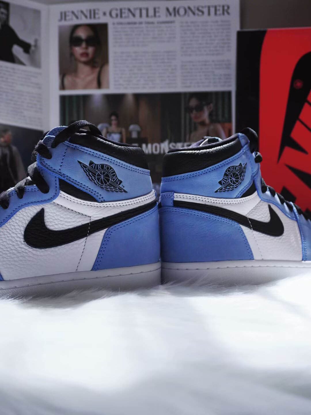 🤣哥们儿,这双大学蓝AJ1实物质感真不戳!白蓝拼色干干净净,夏天配短裤、冬天搭卫裤都行,不挑人。 😃皮面比前两年复刻的几双软乎,踩起来没那么板砖了,高帮裹着脚踝也不硌得慌。 ✌️女生穿建议买小半码,配鲨鱼裤巨显腿长。说实话,这双算难得能日常穿出门还不吃灰的,冲不冲看个人预算吧。