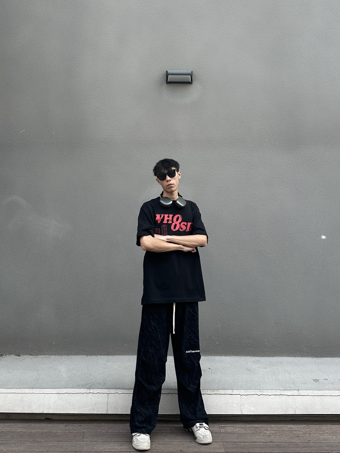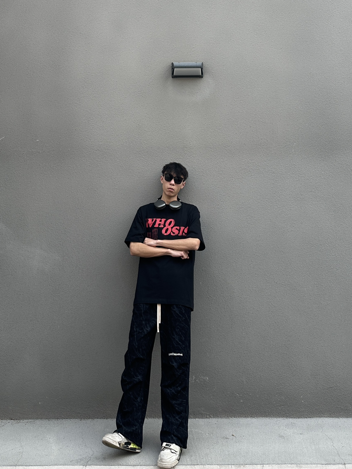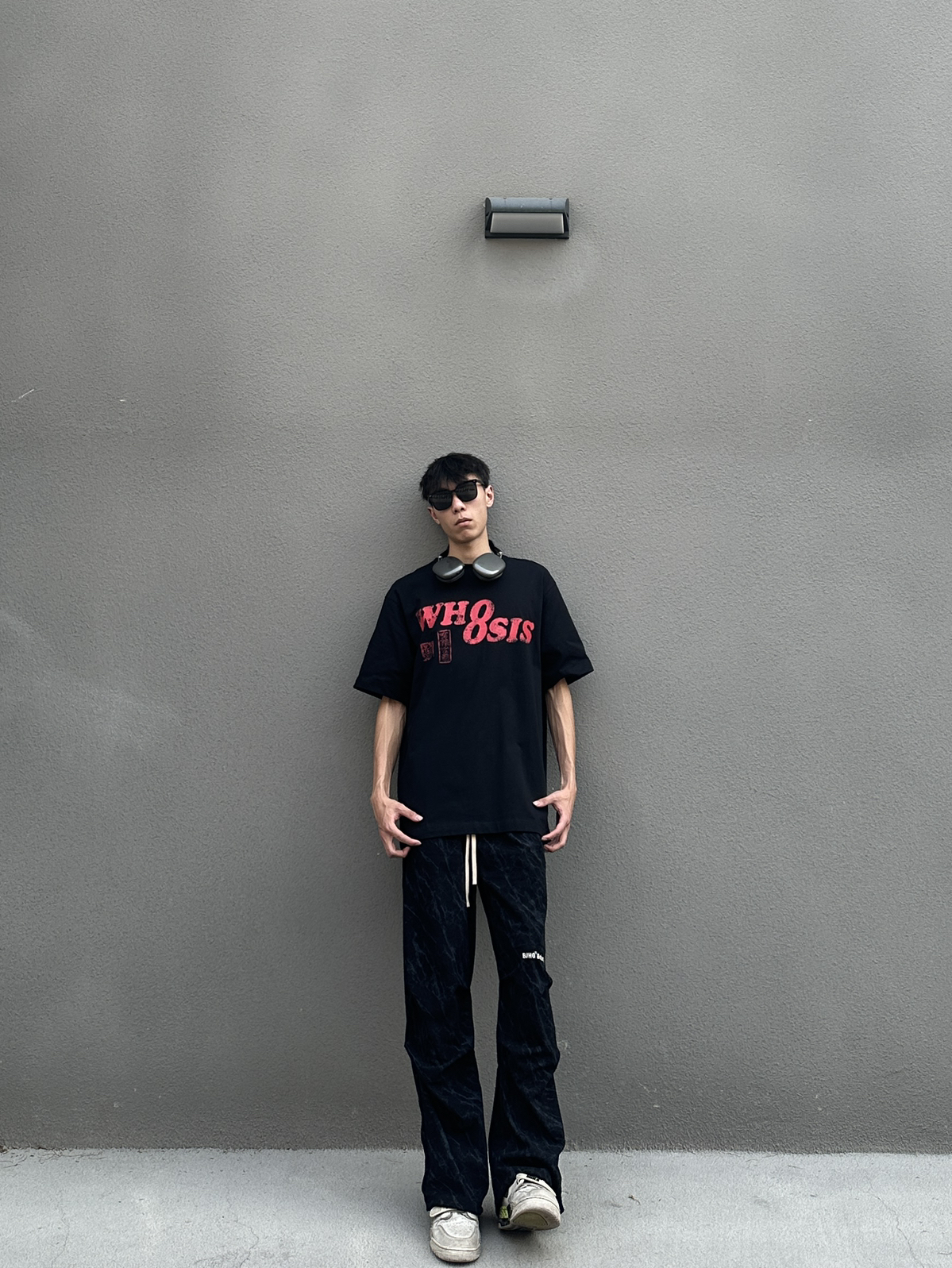 黑色绝对是最百搭的配色了 今日穿搭分享来啦 👔 WHOOSIS 今日上身一件印花圆领短袖 印章印花设计满满中式风味 宽松版型垂感面料很好打理 我182cm 65kg XL码搭配一条黑色伞兵裤 这一身春日舒适感轻松拿捏