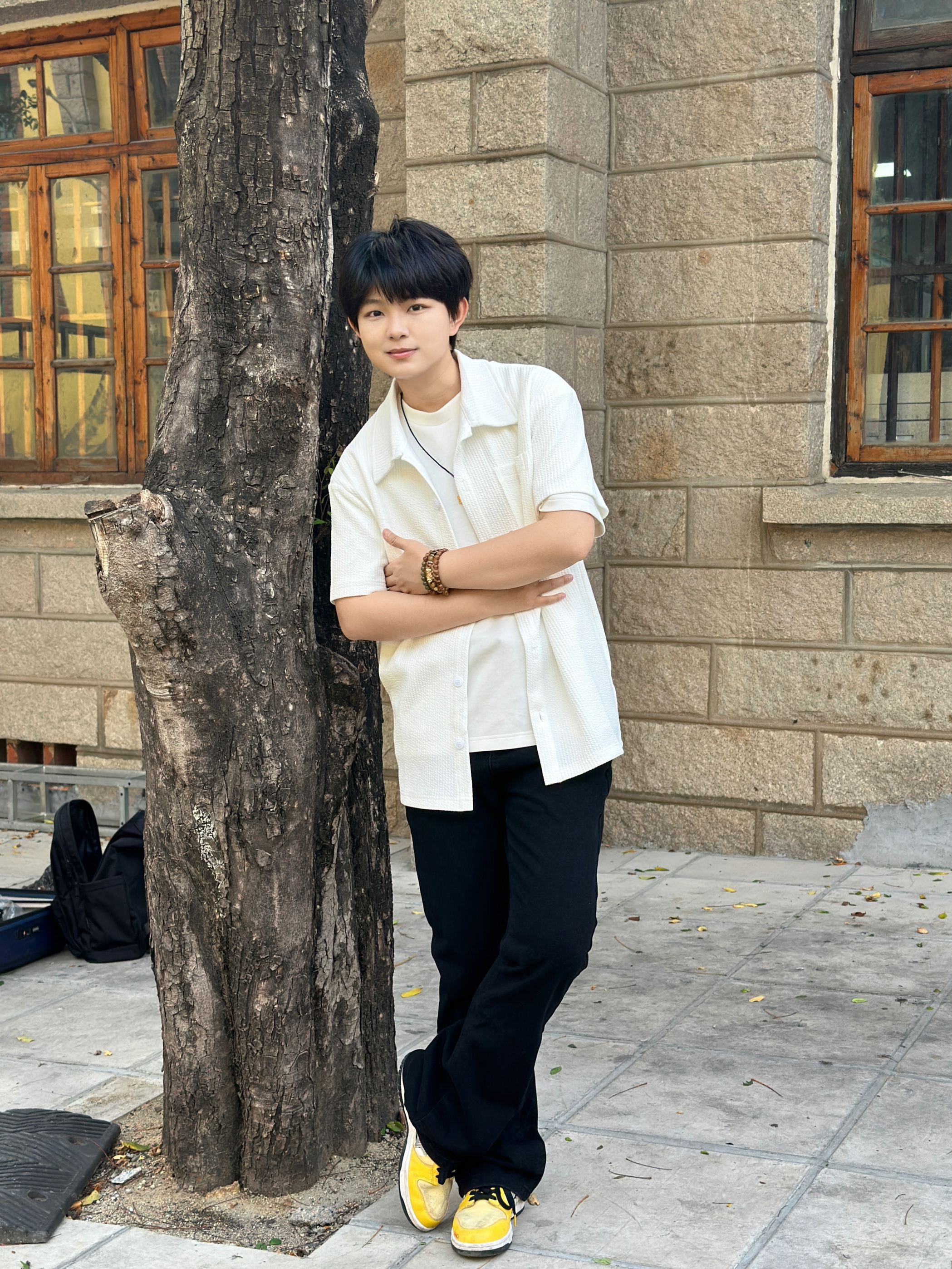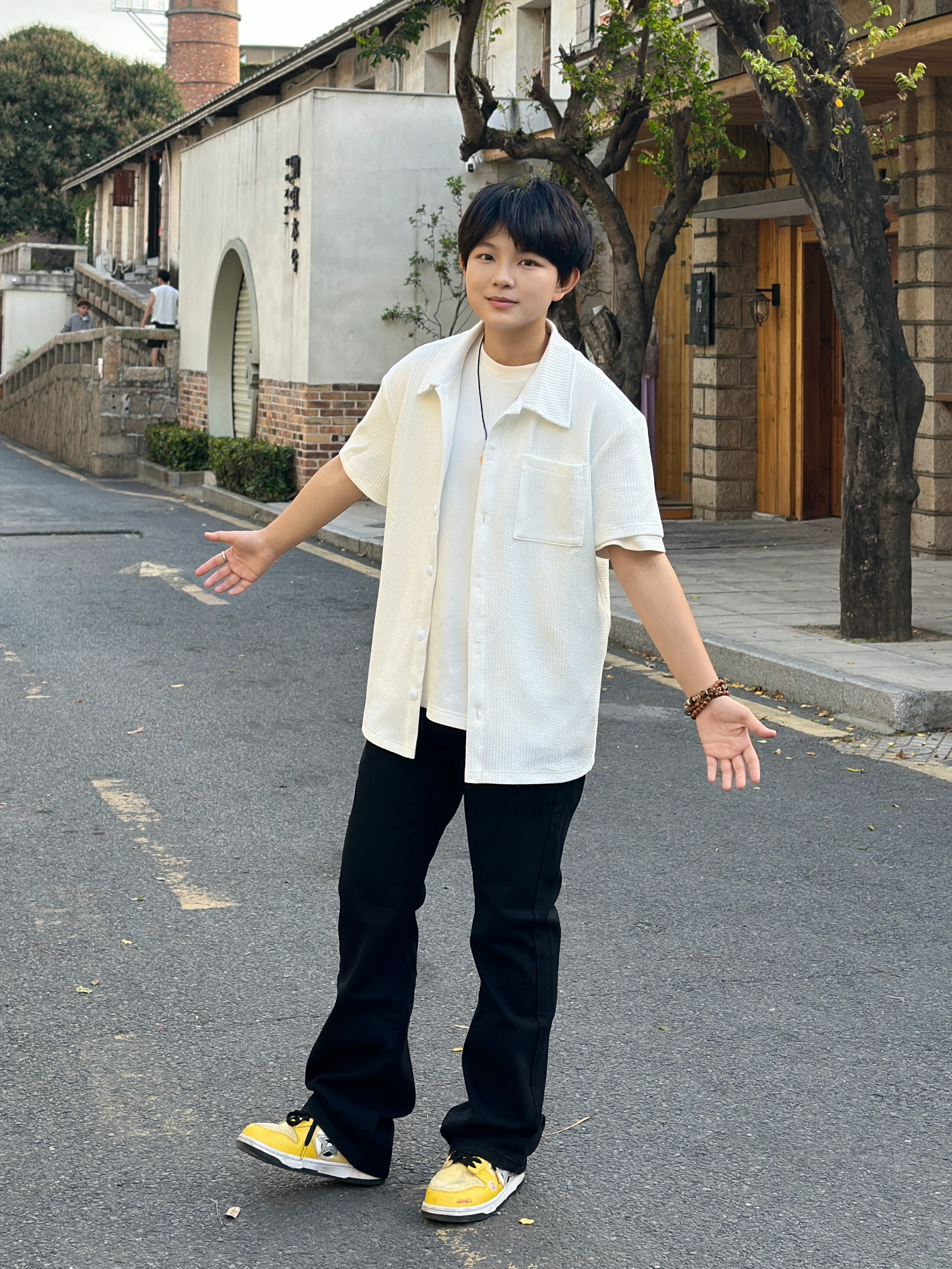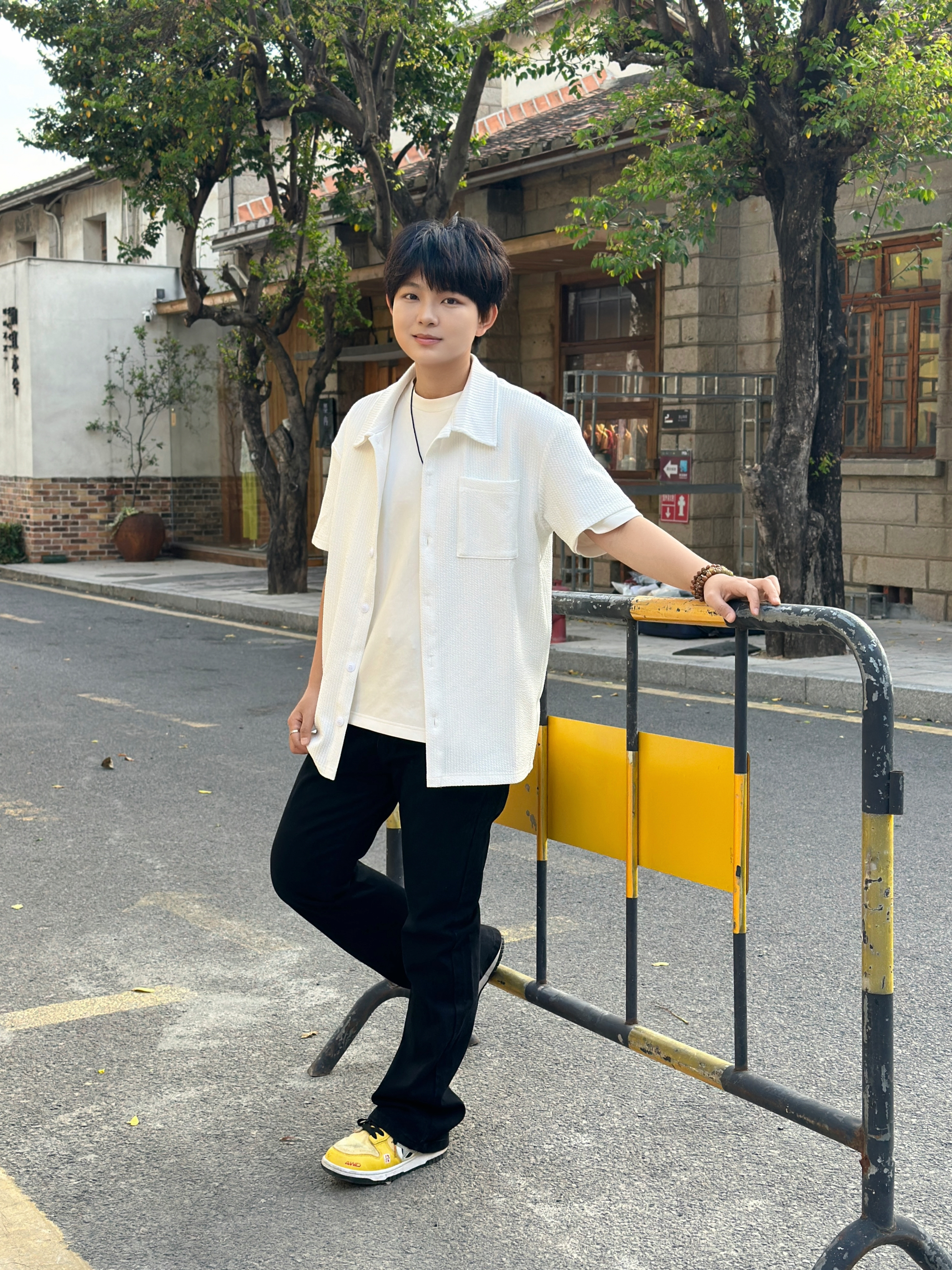 163 105 今天分享一套超绝的日常穿搭!白色短袖衬衫搭配纯白内搭,简约又清爽,就像夏日里的一阵凉风🌬 下身这条黑色牛仔裤,简直是“神裤”!宽松版型不挑腿型,藏肉显瘦一流,穿上立马拥有大长腿既视感🦵 再蹬上一双亮黄色的运动鞋,瞬间活力值拉满,走在街上回头率爆表💥 整体就是干净利落又时尚~