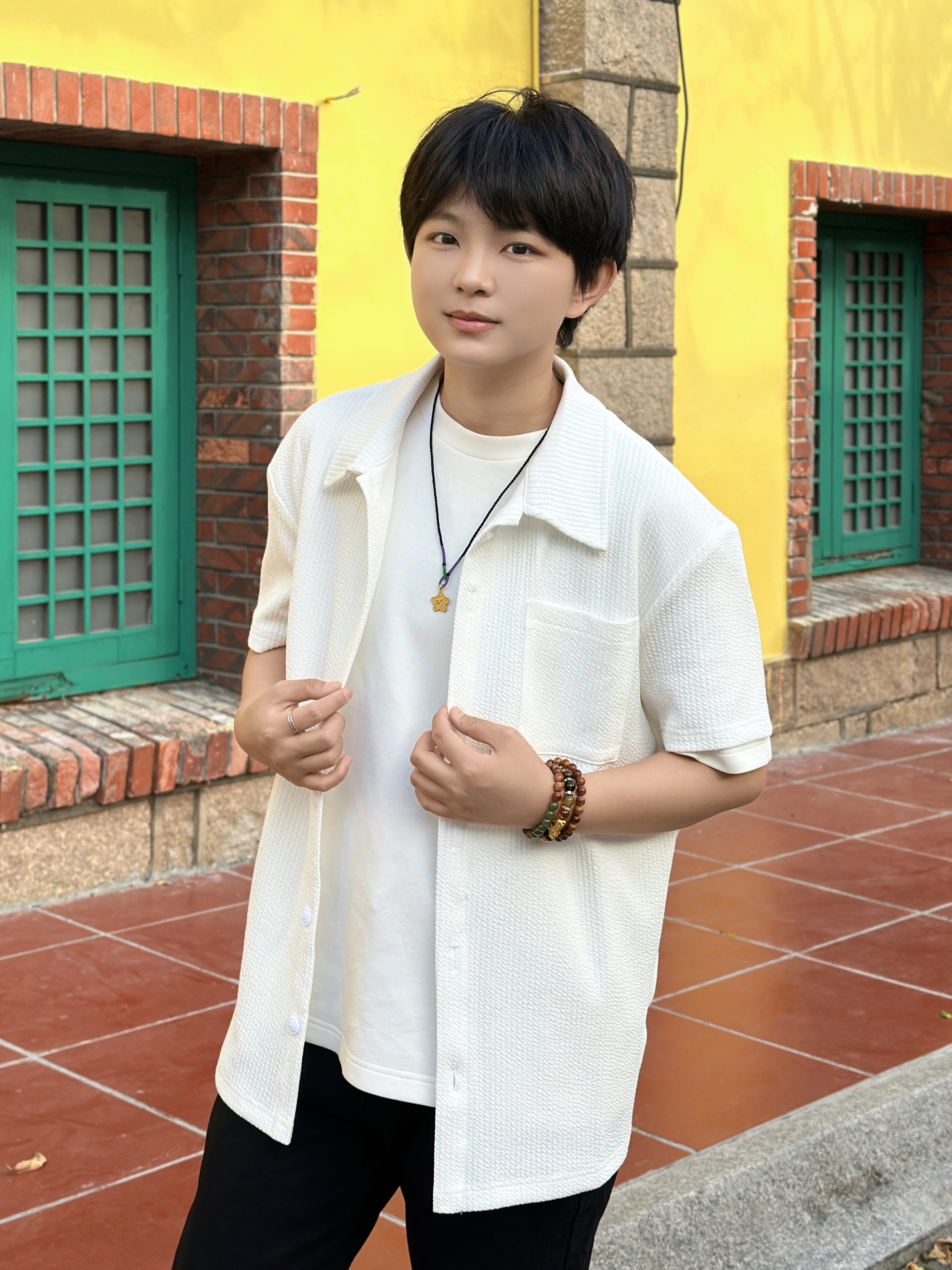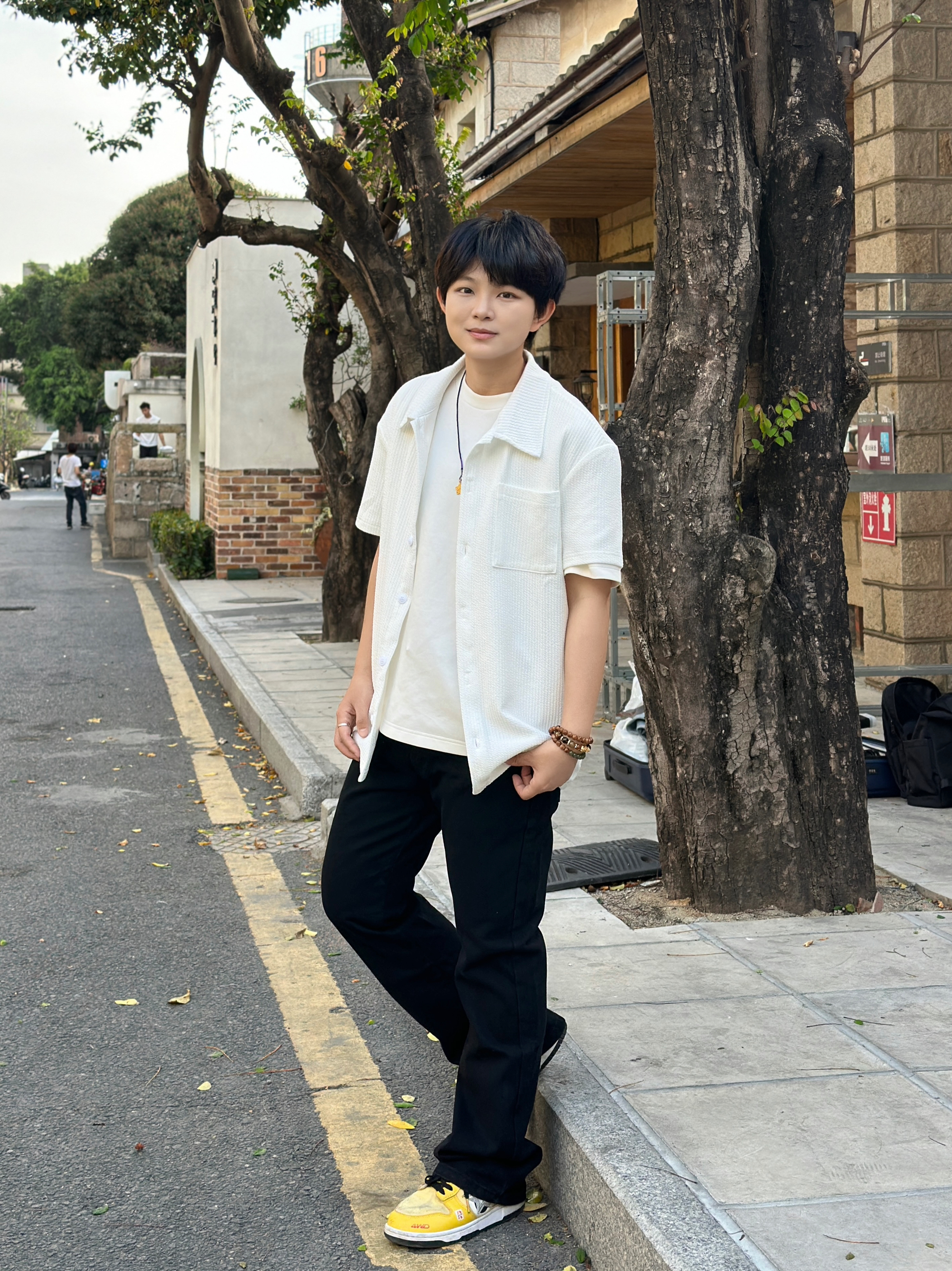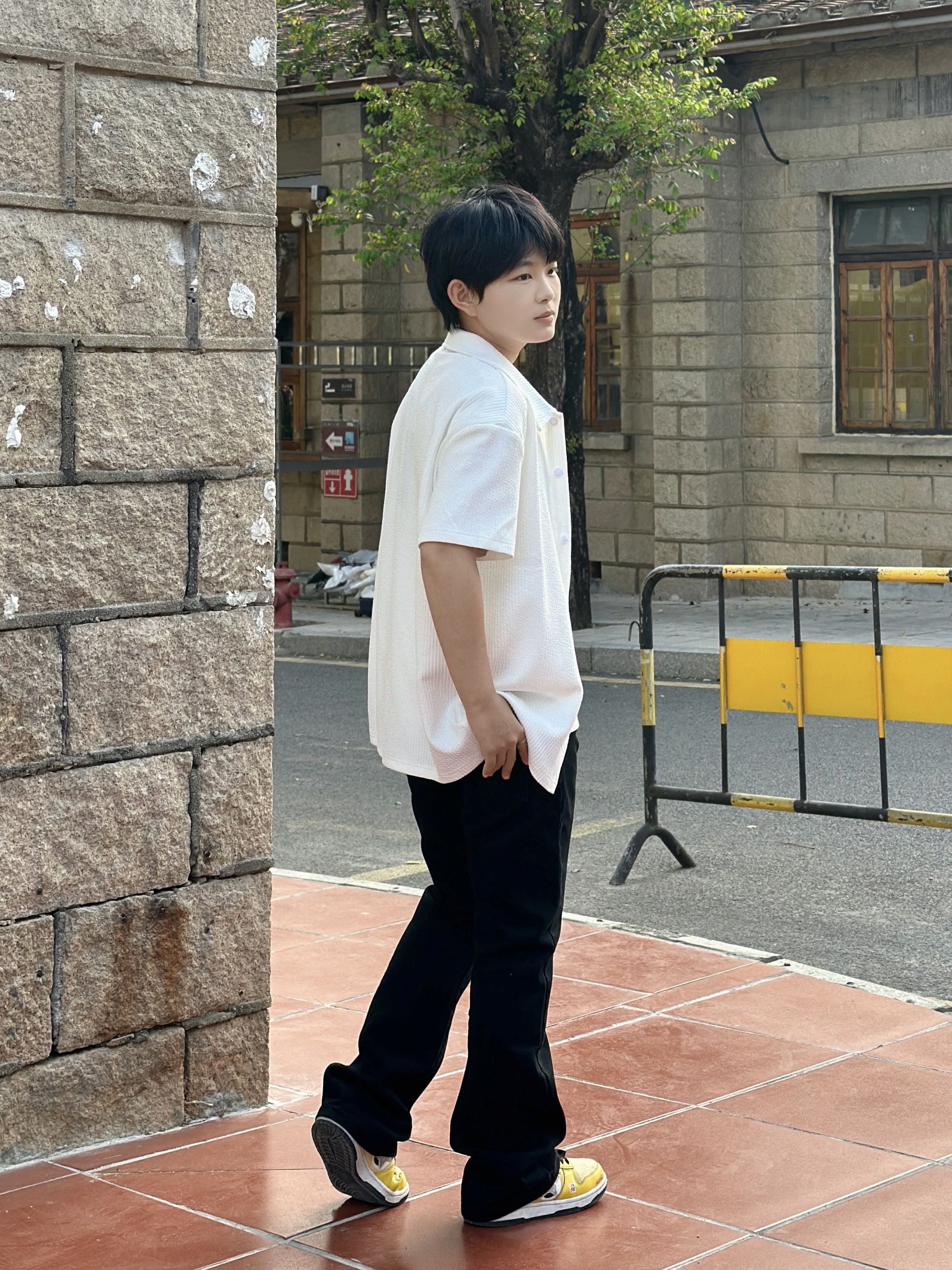 163 105 今天分享一套超绝的日常穿搭!白色短袖衬衫搭配纯白内搭,简约又清爽,就像夏日里的一阵凉风🌬 下身这条黑色牛仔裤,简直是“神裤”!宽松版型不挑腿型,藏肉显瘦一流,穿上立马拥有大长腿既视感🦵 再蹬上一双亮黄色的运动鞋,瞬间活力值拉满,走在街上回头率爆表💥 整体就是干净利落又时尚~