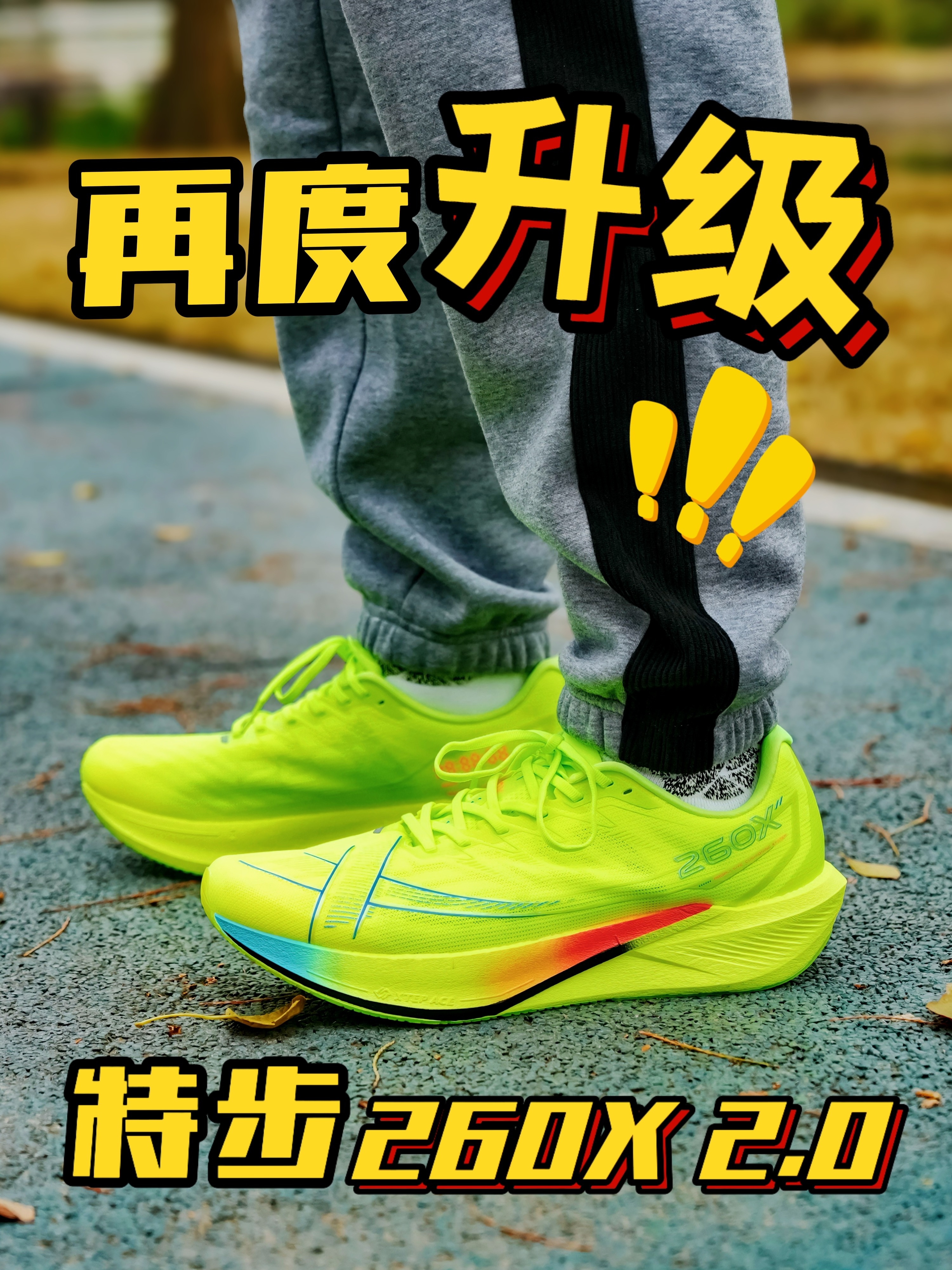 本篇笔记关联了特步 260X 2.0 跑鞋 减震回弹缓震支撑网面竞速体考橡胶碳板 男款/万物生/新荧光绿 等商品,为用户提供真实的使用体验和购买参考。