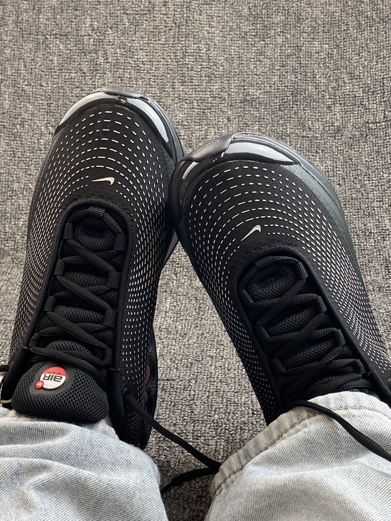 👟Nike Air Max Dn 低帮跑步鞋 ✨这系列鞋子还是比较小众啦,颜值方面是帅气的!黑银色搭配,加上厚实的中底设计,很有范哎。 🌸鞋面是织物网面的,透气性和包裹感是👌的,中底可视化的气垫,虽说定位是跑鞋,但整体的鞋身其实比较重,用来跑步是会有一点费力的,更适合平常穿搭穿。 ✨尺码不偏,正码选择就🉑️,但脚背高胖的还是考虑选大半码到一码吧,会更舒服些。