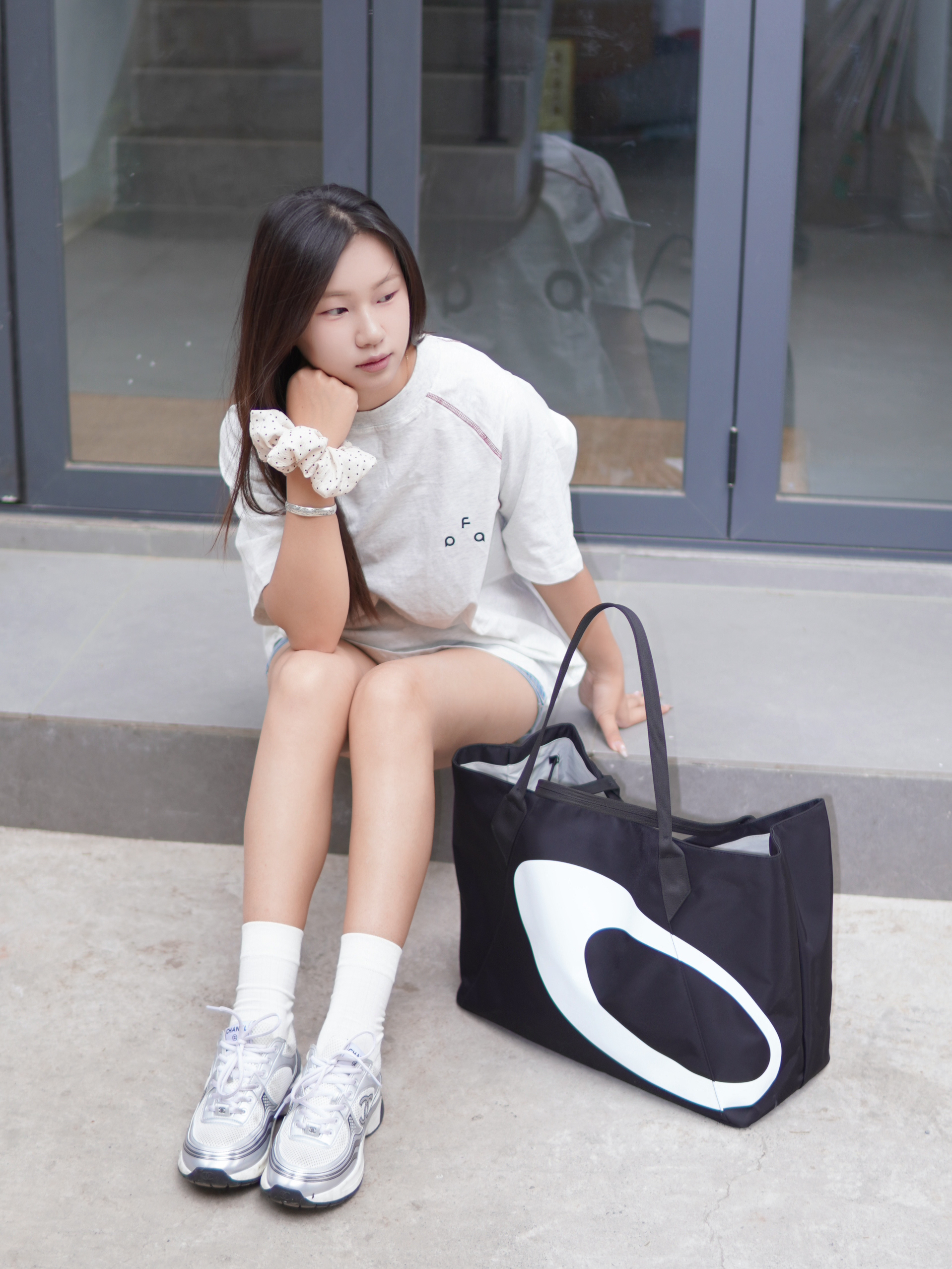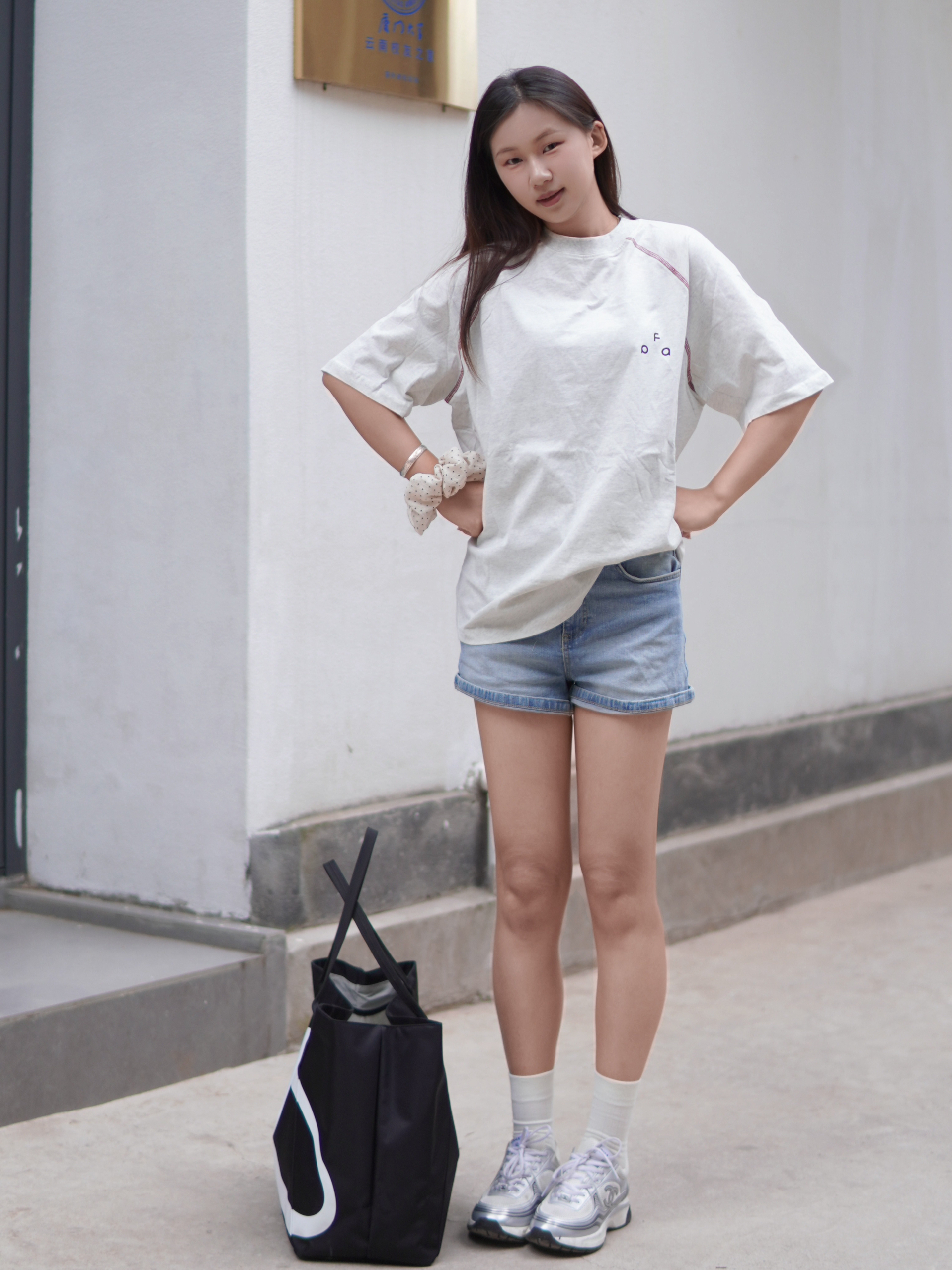 身高|体重:173/55 🧍♂️ 穿搭风格:运动休闲 👔 上衣:fpa短袖T恤 👖 下装:牛仔短裤 👟 鞋子:香奈儿银角大王 🎒配饰:黑色大托特包