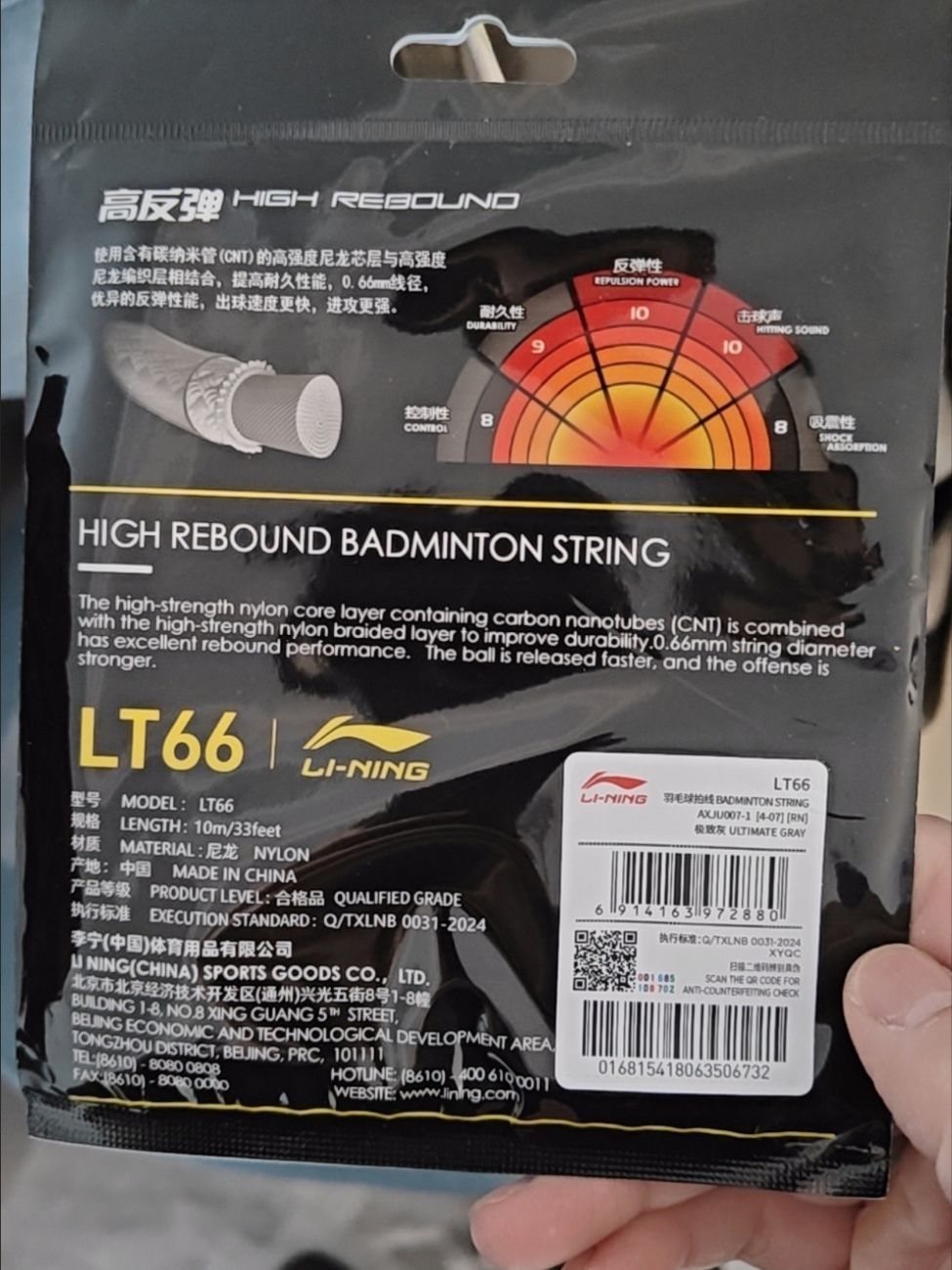 本篇笔记关联了Li Ning/李宁 LT66 高反弹 耐打 碳纳米管 羽毛球拍线 灰色等商品,为用户提供真实的使用体验和购买参考。