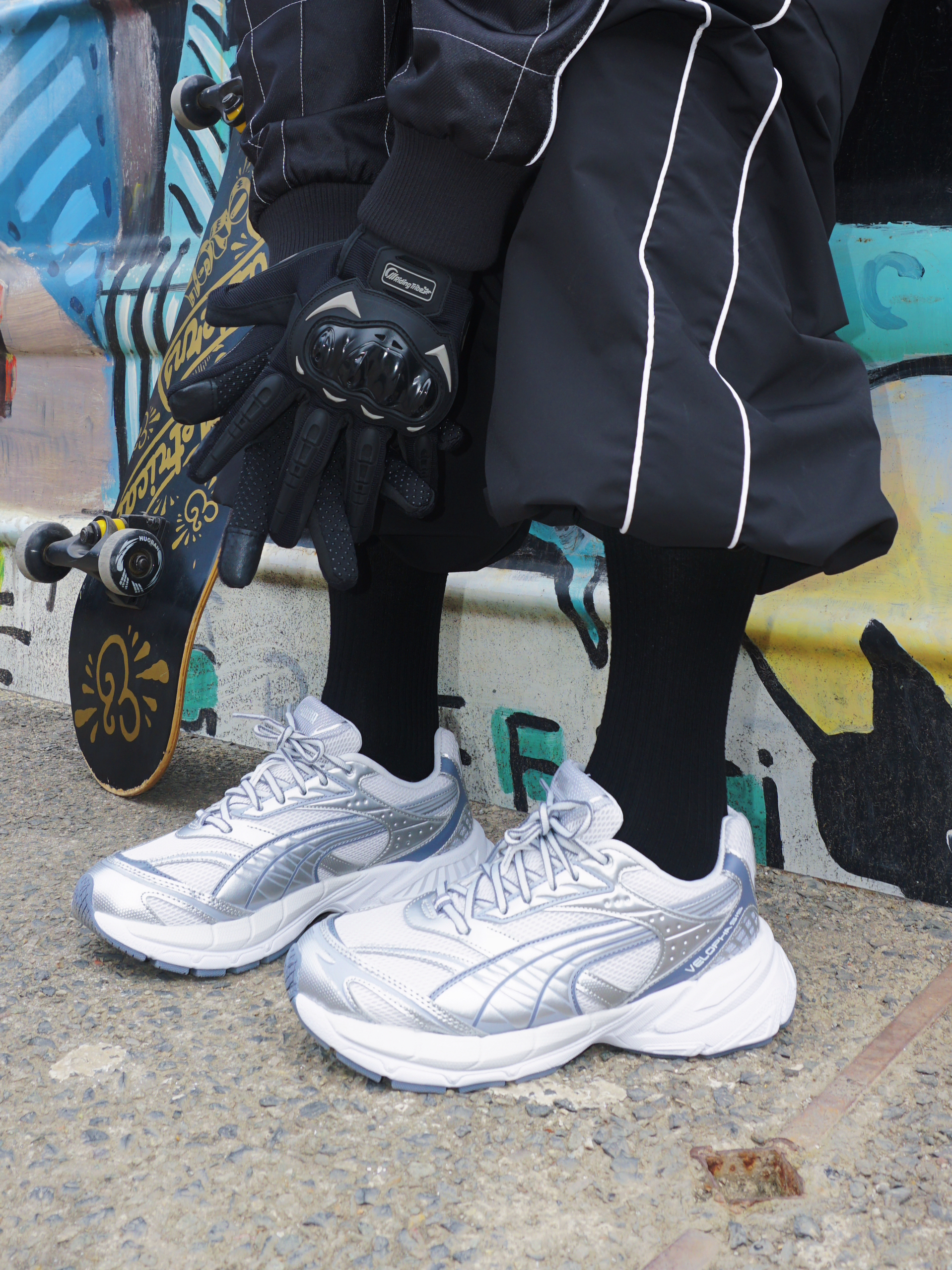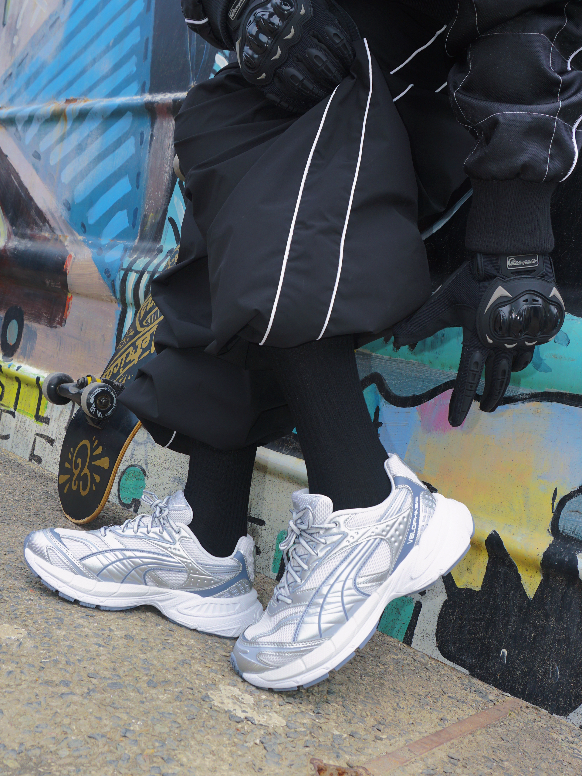 今日份银翼赛车手上线🪩秒回2000年, 还得是老鞋型耐看✔️又注入新味道~ 不只关乎老爹鞋👟跑鞋🏃薄底鞋等等… 更是赛博朋克🌪️or磁带未来主义的狂欢❕ - 每个点都戳我审美💡够chunky不会过宽, 银白色的比例贼和谐👀流线型Smooth~ 百搭适配各种风格💯日常穿显高显腿长, 上脚Q弹的赶脚👣柔韧和包裹性刚刚好~ - 刚好搭一套赛博未来风Outfit🏁秒帅住~ 用新入手的Rose同款运动夹克⚫...