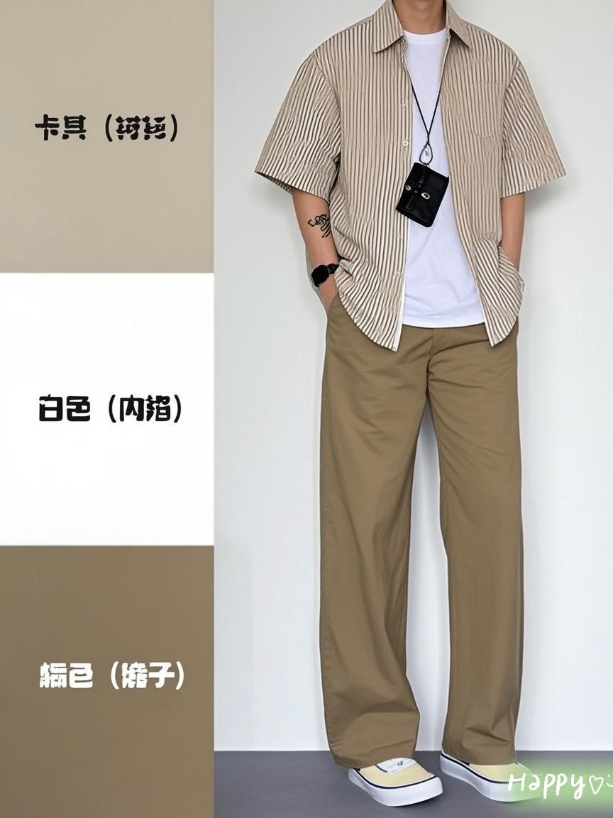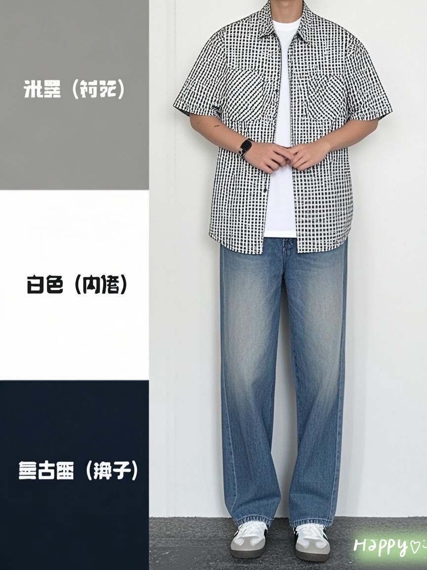 被问爆了!夏日清爽少年感穿搭公式 宝子们,又到了给衣柜换新装的季节啦!今天必须给大家分享一套我最近超爱的夏日男士穿搭,谁穿谁好看,直接化身清爽少年~ 先看这件米黑格纹短袖衬衫,经典格纹元素永远不会过时,复古又时髦。宽松版型不挑身材,不管是肌肉型男还是稍显肉肉的兄弟,都能轻松驾驭,遮肉又显瘦。面料轻薄透气,夏日炎炎也不会觉得闷热,随便活动都超自在。 内搭选择纯白色T恤,简约干净,和衬衫搭...