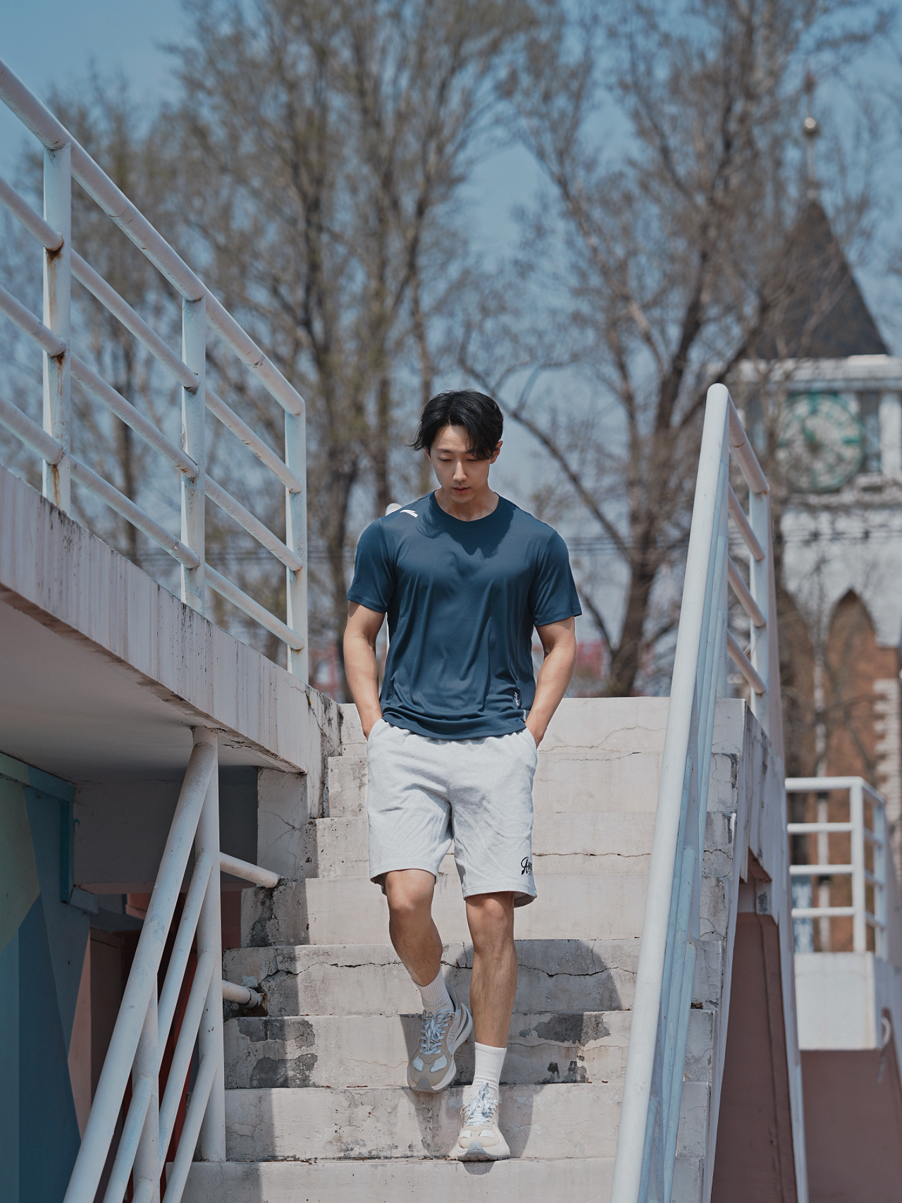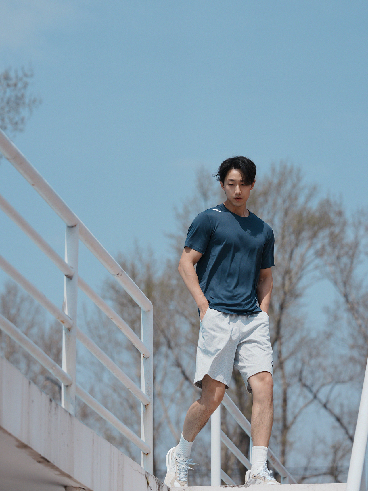 下周降温 趁着好天气出来耍一耍🏃🏻 今天的运动搭配低调一些🤨 藏蓝色T恤➕灰色短裤 配色沉稳又不乏质感 穿着干爽不黏腻 运动起来那叫一个轻盈通透 风格也带着些休闲松弛 就算不是运动场合 日常出街也很舒适惬意身高|体重: