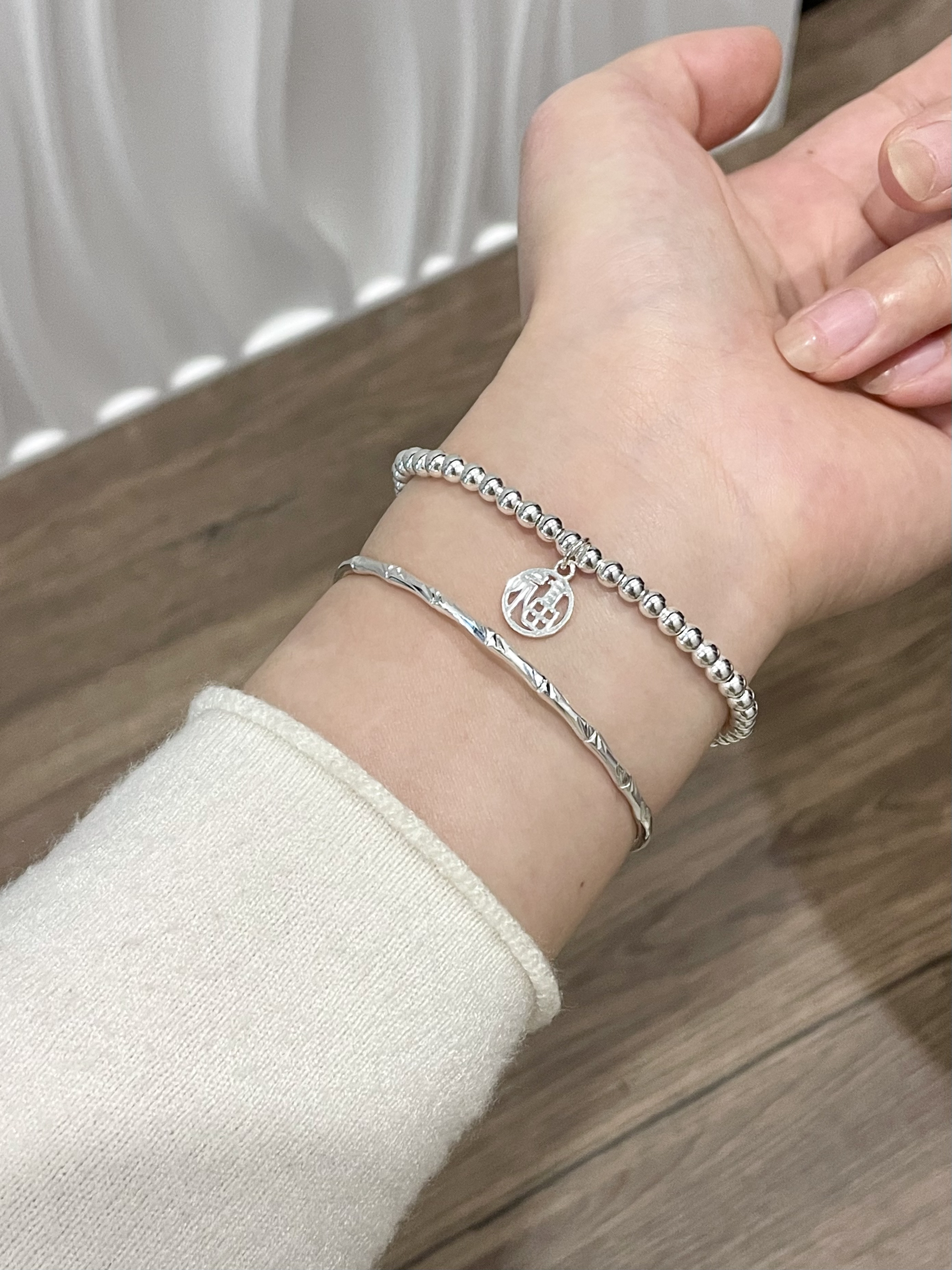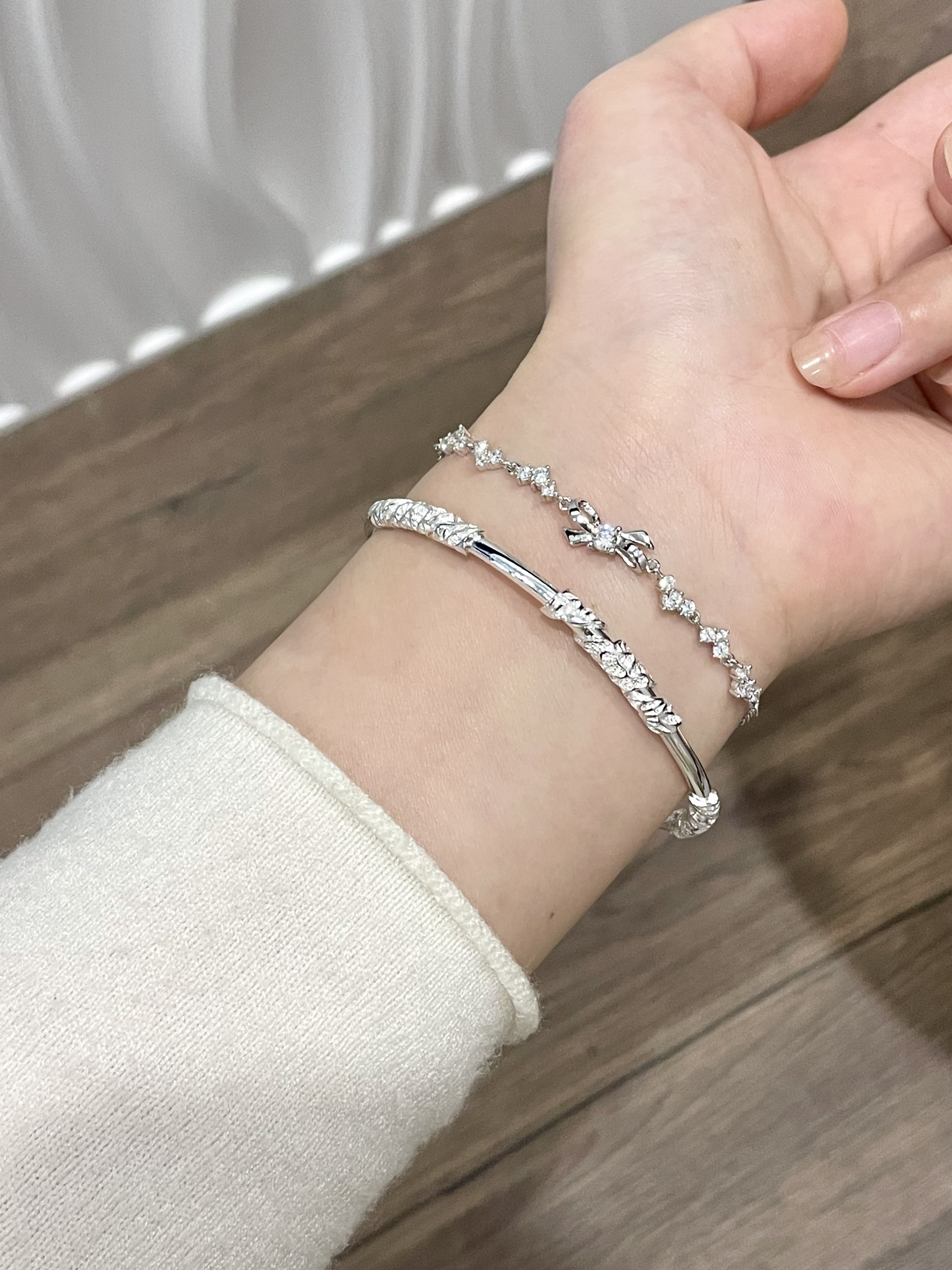 妈妈一直就喜欢中式的风格 这不我熬夜挑选了几款足银手镯 有四叶草 竹节 莫比乌斯 繁花 …… 我还搭配了五条手链可以叠戴着 平时搭配衣服也会有层次感 礼盒还有母亲节贺卡和小花束 当作🎁给妈妈泰有心意啦~