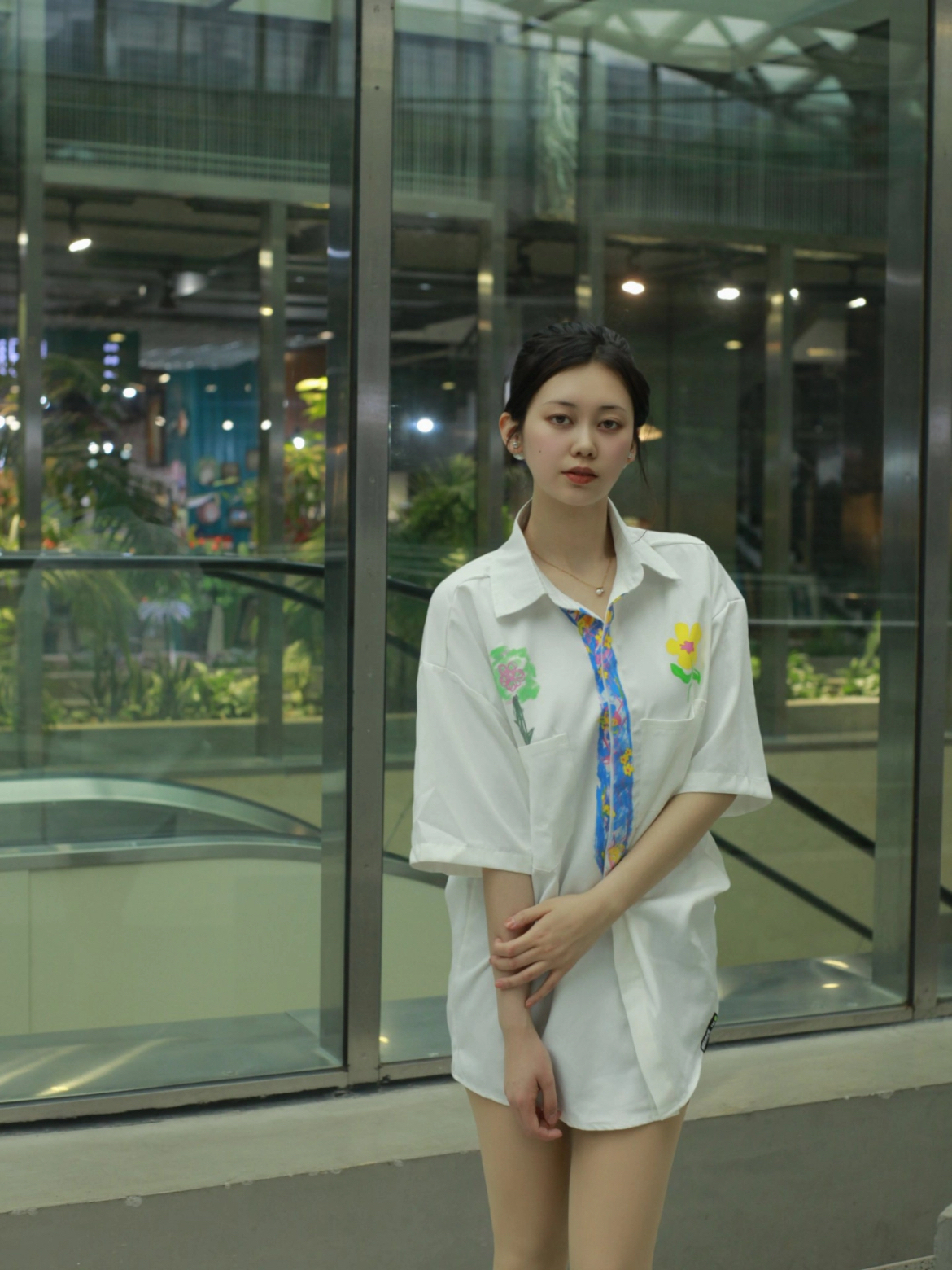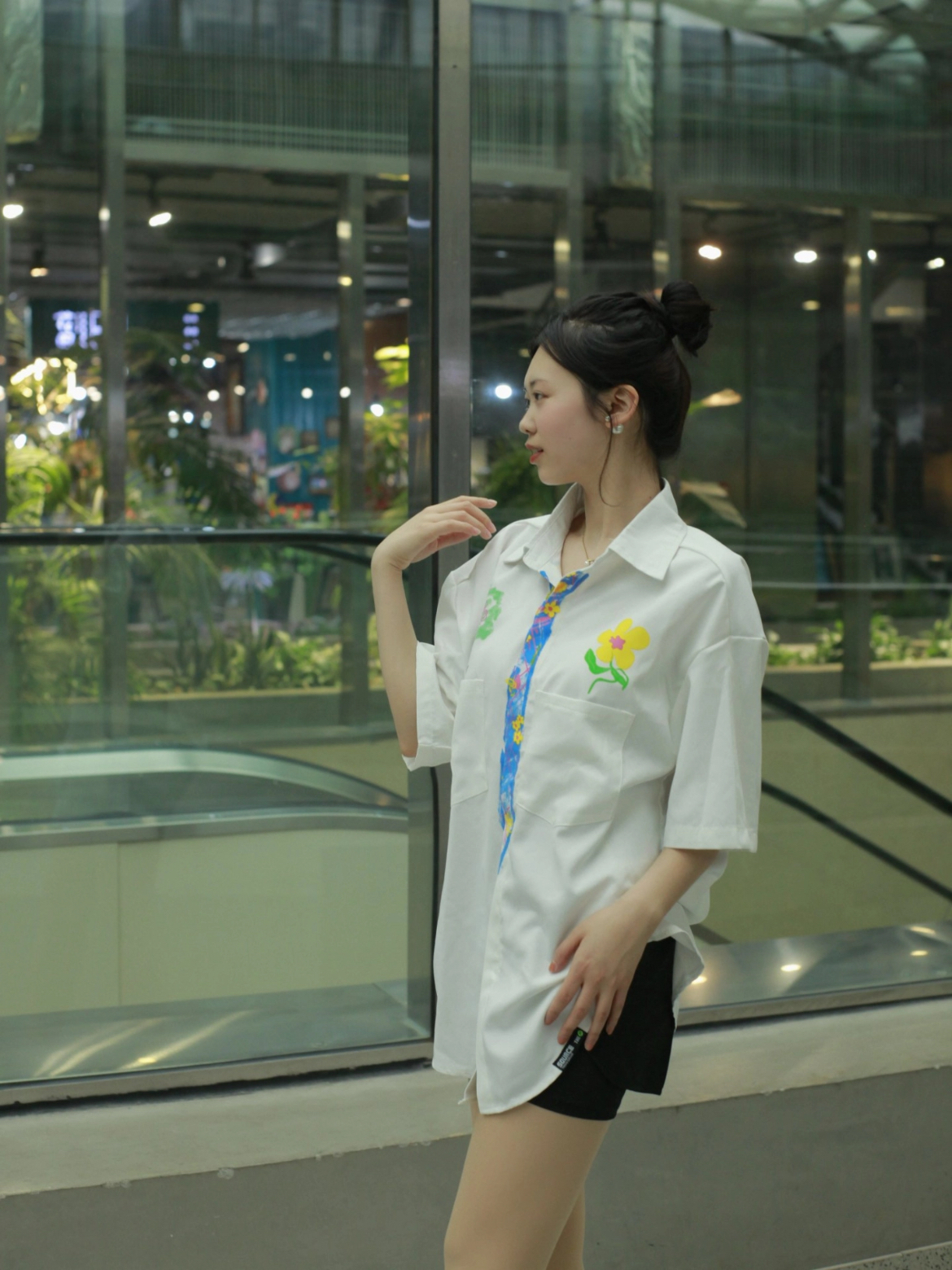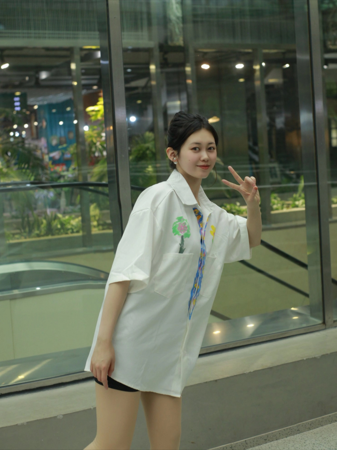 今天来聊聊白衬衫和黑短裤咋搭配~ 【整体look】一件白色的短袖衬衫配上黑色短裤,简单又好看②,还带点美式复古那味儿。男女同款哦,都可以穿! 【图案细节】衬衫上的涂鸦植物花卉,画得栩栩如生 ,就像真的花花草草在衣服上生长。假领带的印花看起来巧妙,增添了复古氛围,让人眼前一亮(。 【版型优点】宽松大码的版型,穿起来可舒服了,没有束缚感。不管你是啥身材,都能轻松hold住 』【材质体验】这衬衫的材质还...