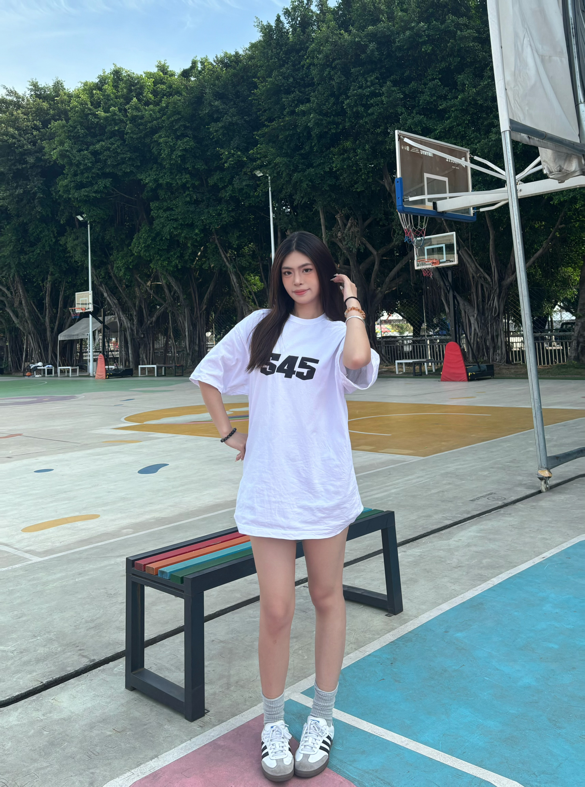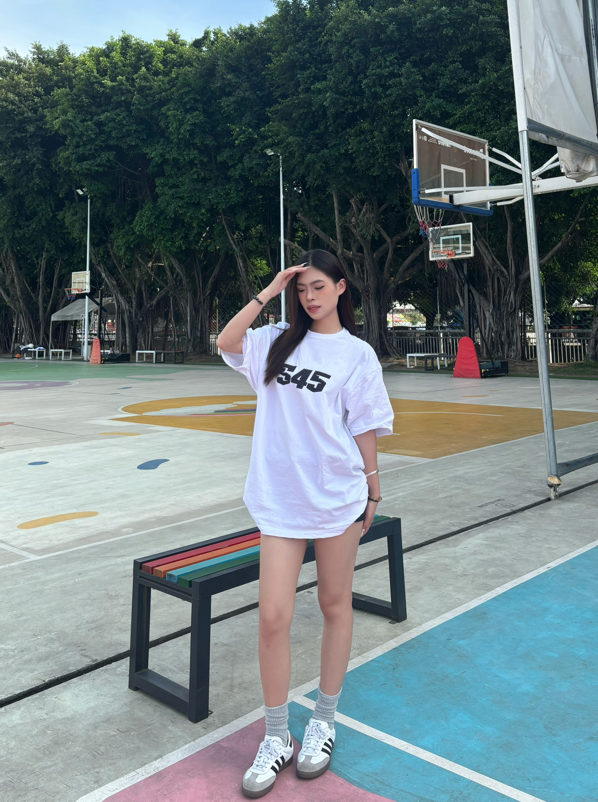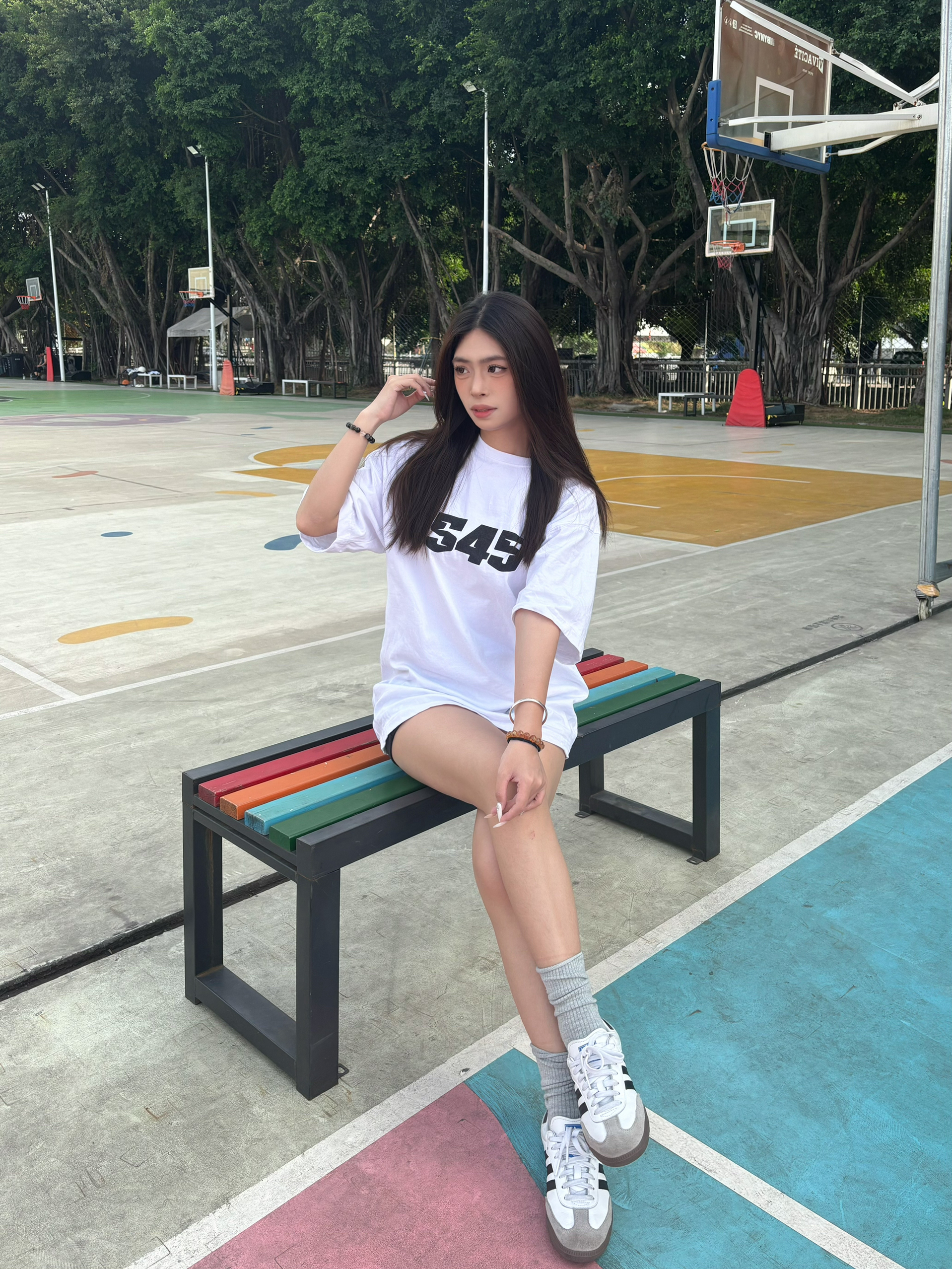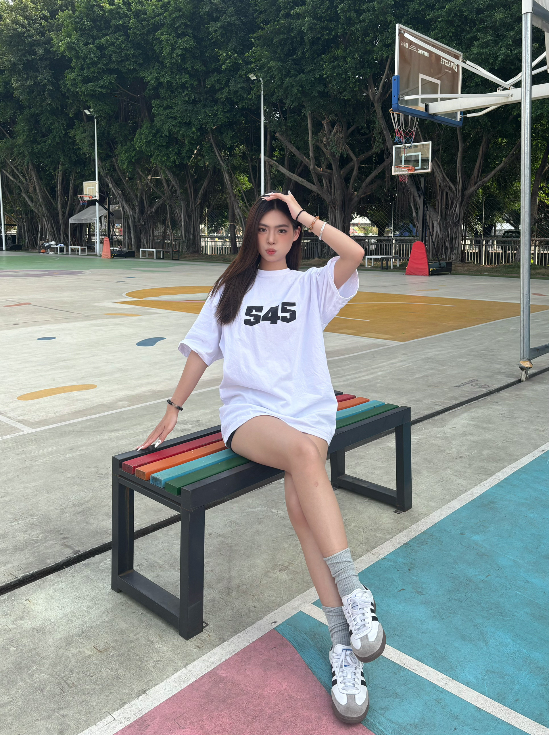 S45这件短袖上身后很舒服😌搭配短裤还有点辣妹感👍 在篮球场拍照很适合穿运动休闲的鞋子👟 阿迪达斯这双德训鞋是我的心头爱! 很百搭 但就是刚穿的时候会比较磨脚😿底也挺平的😂 但穿久了还是很舒服的~