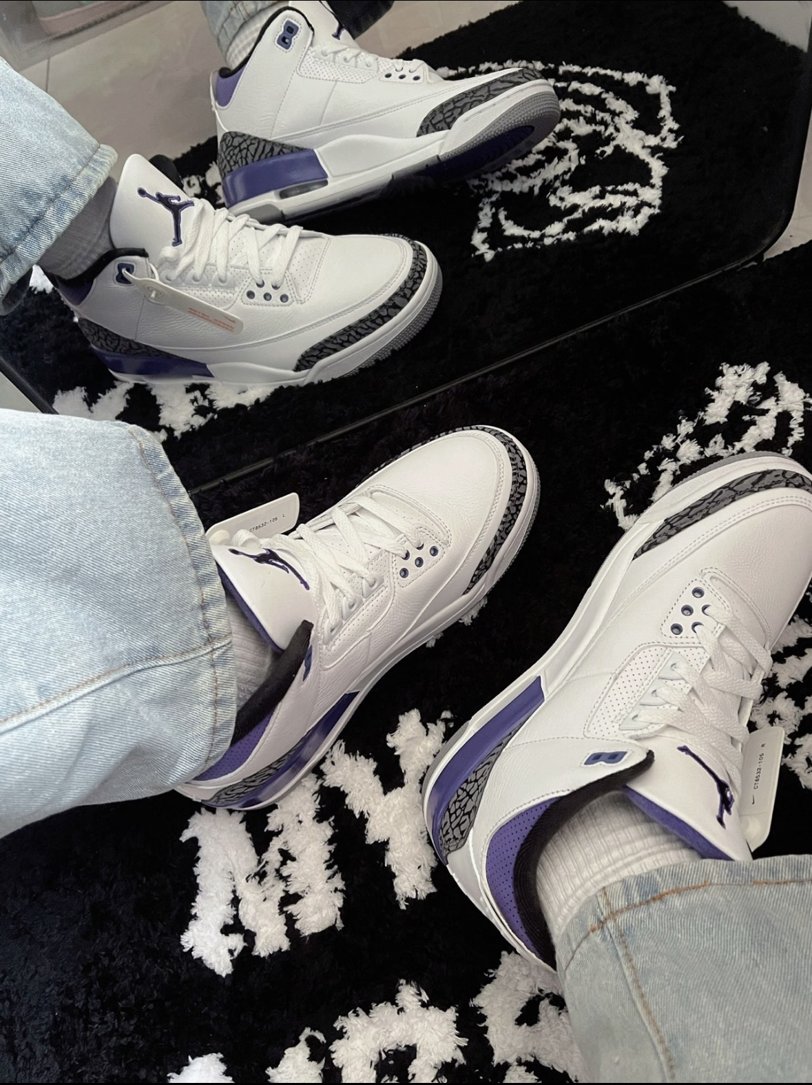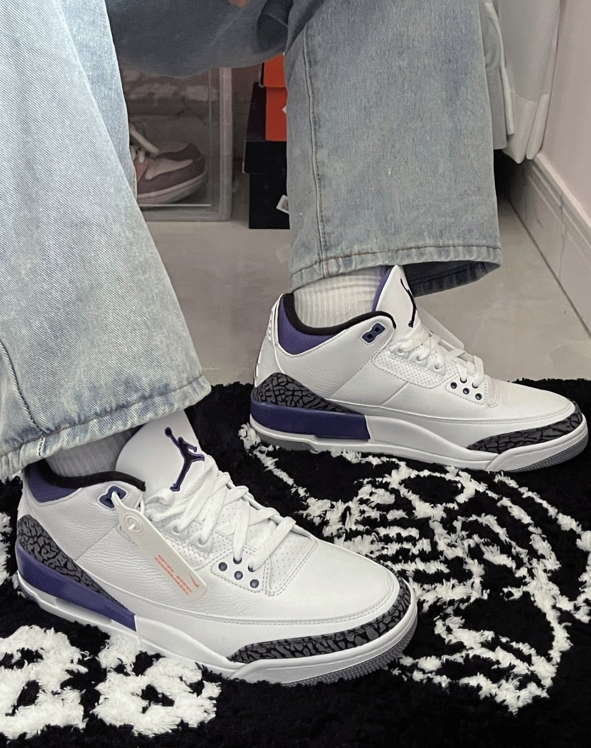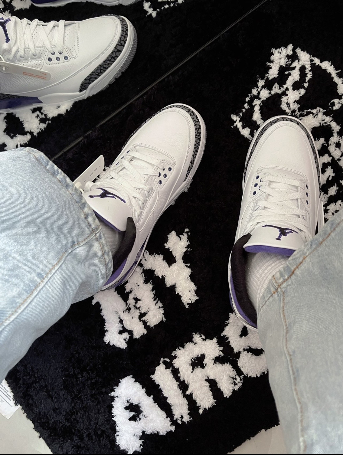 穿搭精选 这双Air Jordon 3 白紫真的爱惨了哈喽 小葵花子 今天给大家上脚这双自己超喜欢的aj3 葡萄紫最爱的aj3系列 经典鞋型 上脚很舒服 百搭 真的超好看 哈哈哈