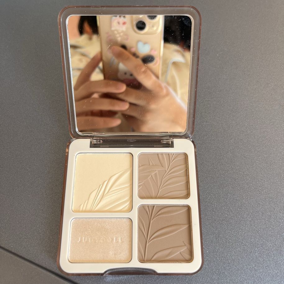家人们,我最近又发现了一款超好用的宝藏修容盘——橘朵修容盘!必须来给你们分享分享~ 咱就是说,它这外观设计就很戳我,简约又好看,平时带出门补妆啥的,从包里拿出来都感觉超有面儿。 打开之后,里面这四个颜色的布局也很合理。左上角那个浅色的,我平时用来提亮额头和鼻梁,粉质特别细腻,就跟云朵一样轻柔,轻轻扫一层,瞬间就嘭起来了,显得额头饱满,鼻梁也贼高挺,超自然!左下角这个闪粉格真的绝!在阳光下布...