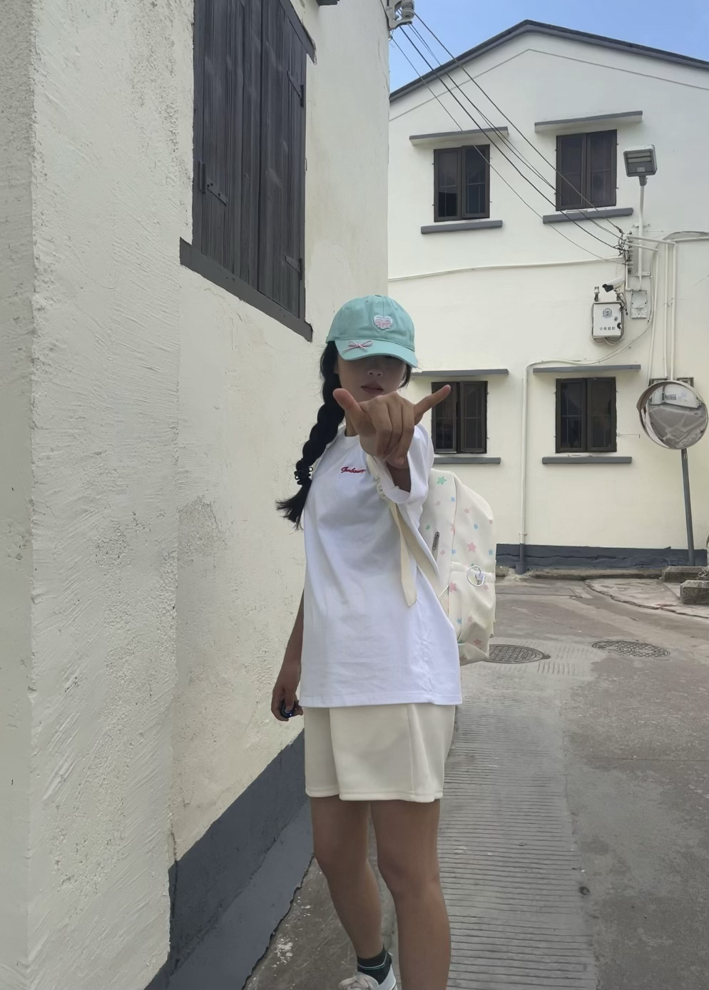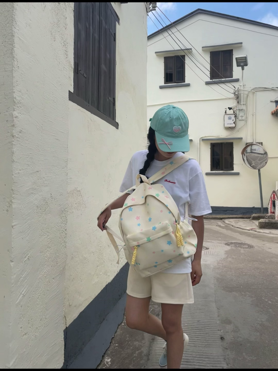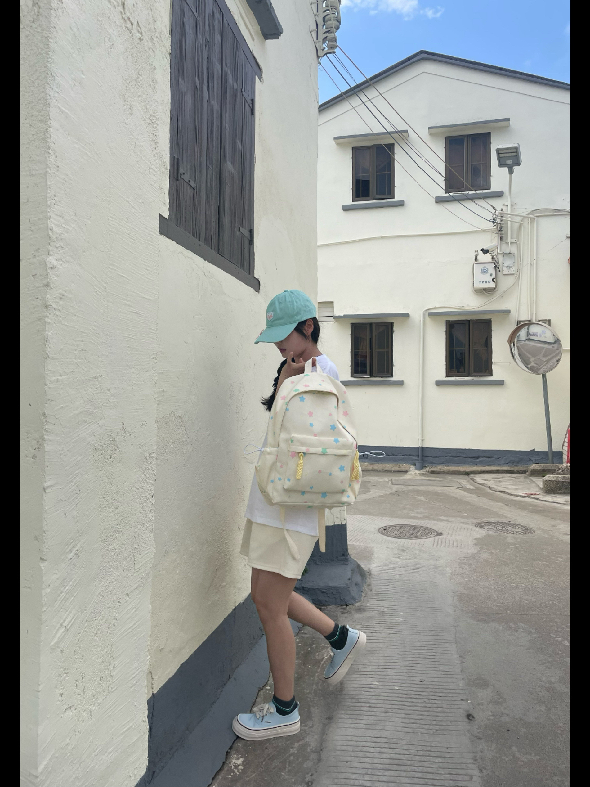 今天发现一个拍照好出片的地方啊! 来这里做女大学生啦~ 好喜欢我的星星包包 用它来背我的谱子刚刚好耶!(容量大)