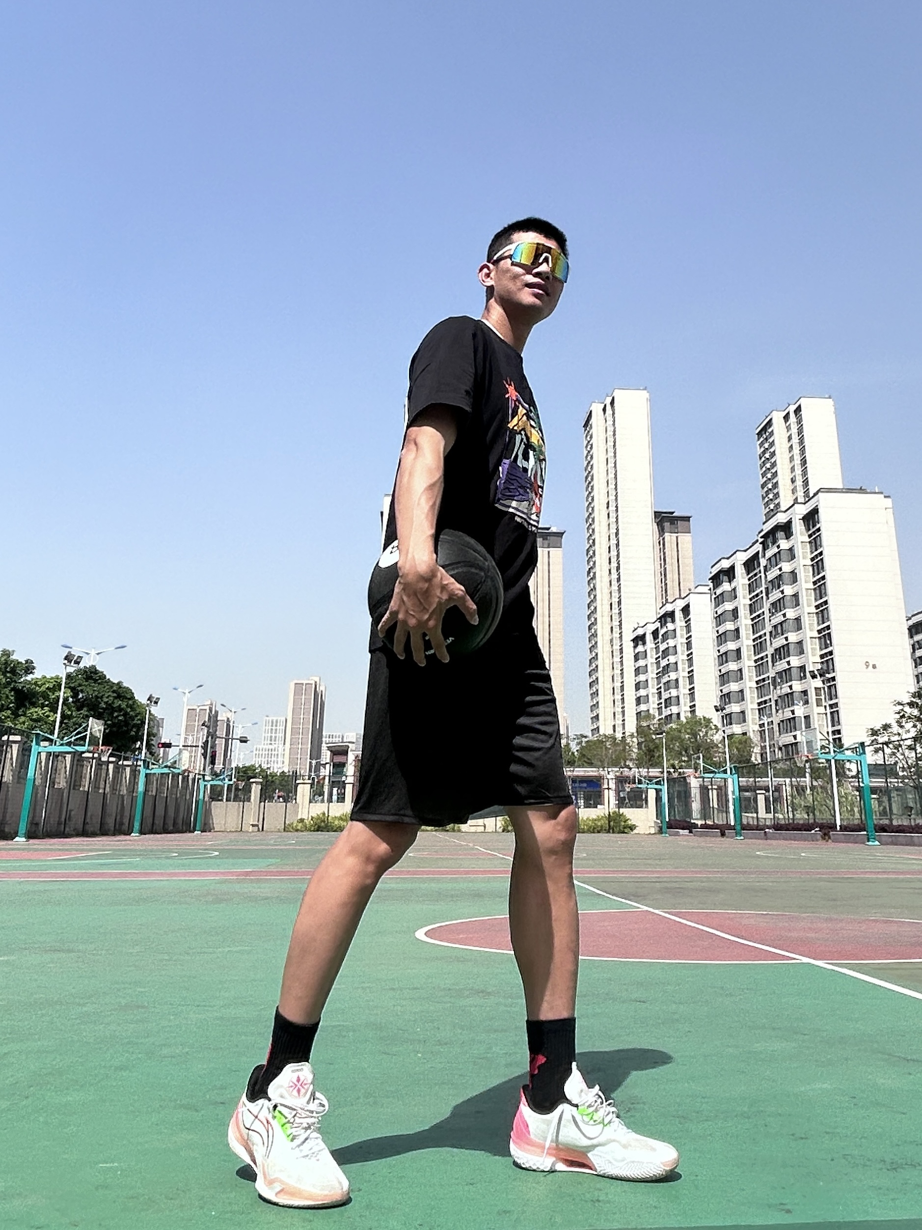 hi~是18啊! 今日练球上身的是 有志者UZIS 猎杀时刻短T, 🔥 上身即降温!德国鲁道夫冰感科技 这件T恤的“冰感”不是噱头🥶 长绒棉+特殊冰感科技, 上身能感觉到体感降温, 室外场打球也不闷汗, 实测30℃温度下依然干爽, 吸湿排汗能力拉满,运动后不会黏身! 🎨 印花炸街!鱼骷髅×篮球的硬核美学 后背的灯笼鱼骷髅印花融合篮球元素, 暗黑系美式复古风直接拉满, 落肩设计+宽松直筒版型...