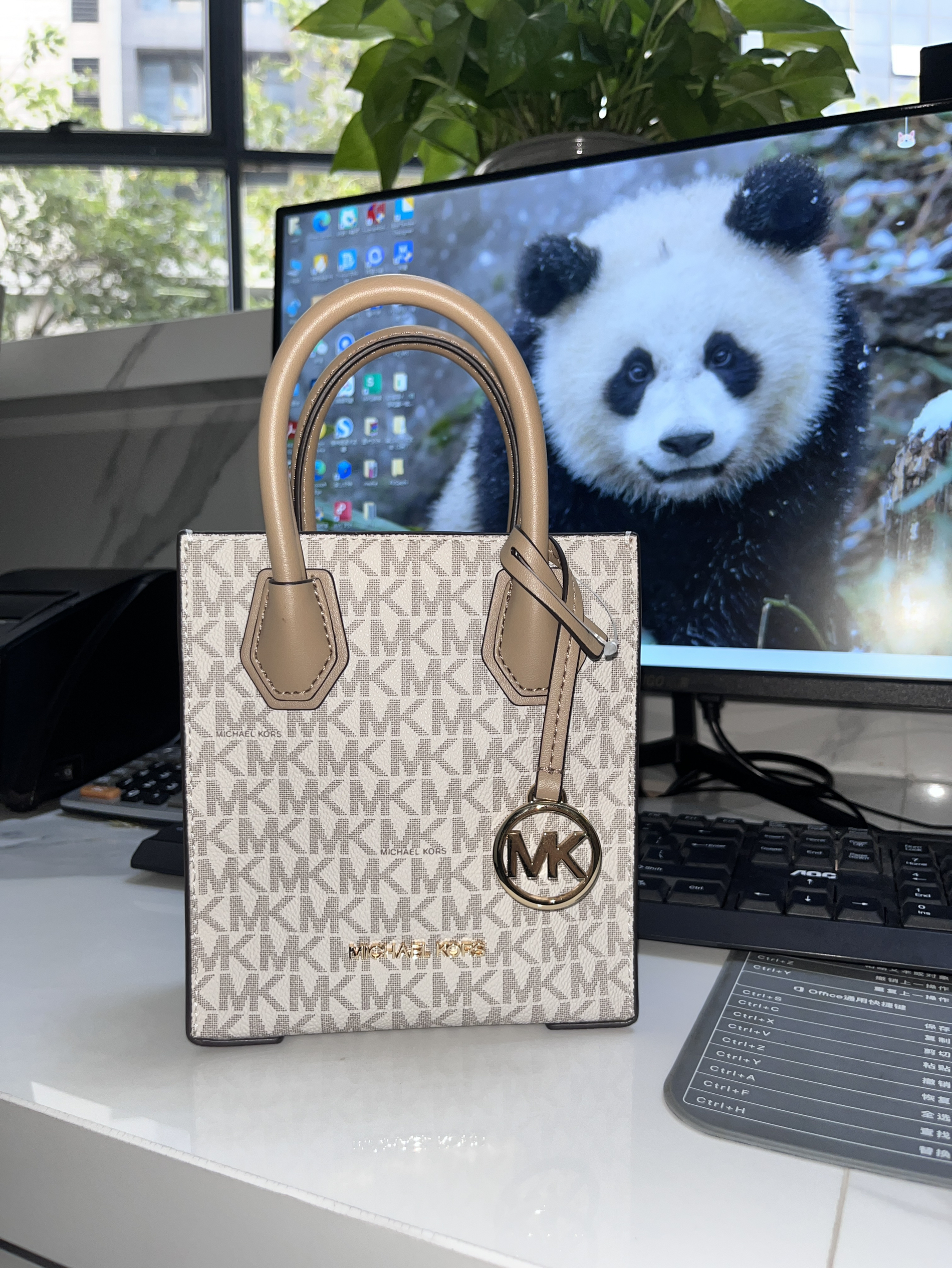 本篇笔记关联了Michael Kors Mercer 迷你 人造革通勤风老花满印LOGO琴谱配牛皮荔枝纹磁扣开合手提单肩斜挎包 香草色印花/驼色等商品,为用户提供真实的使用体验和购买参考。