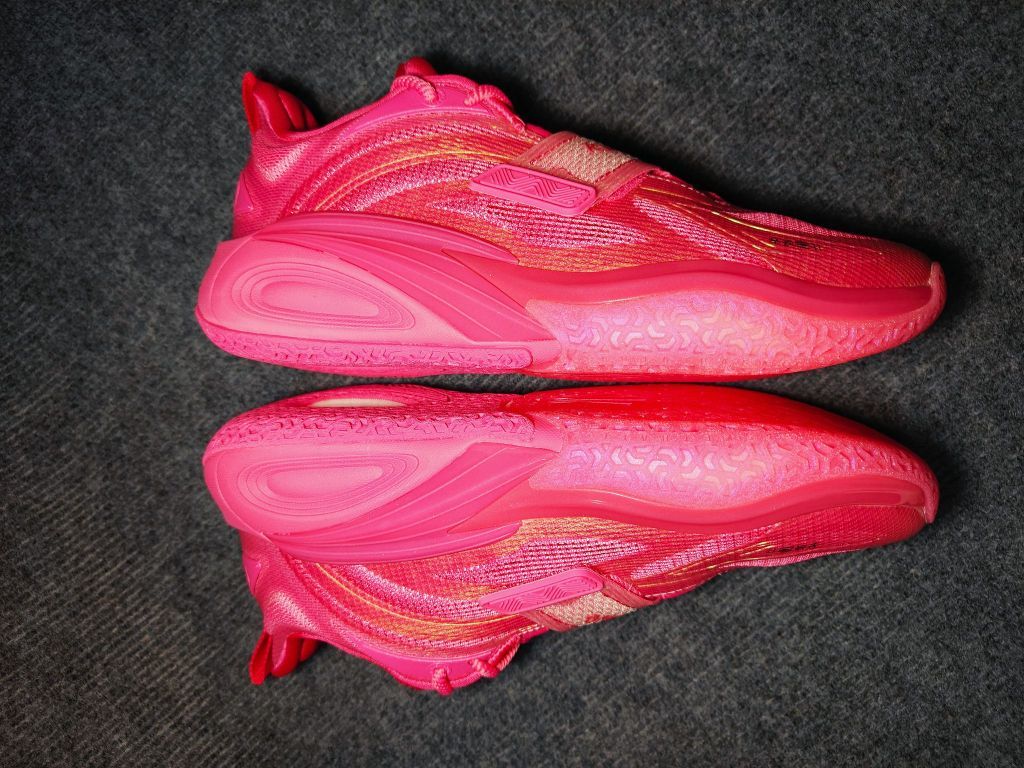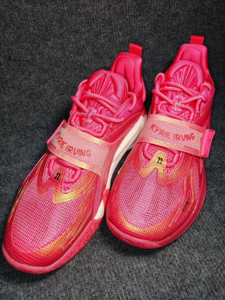 这是我最近刚入手的欧文1代果冻配色 全身粉色的设计 鞋面采用网线标志,透气性不错 鞋舌上有魔术贴,增加了鞋的包裹性 鞋底前掌是水晶底,后掌是橡胶底 中底搭载了氮科技,回弹效果很好 喜欢的小伙伴赶紧去入手一双吧