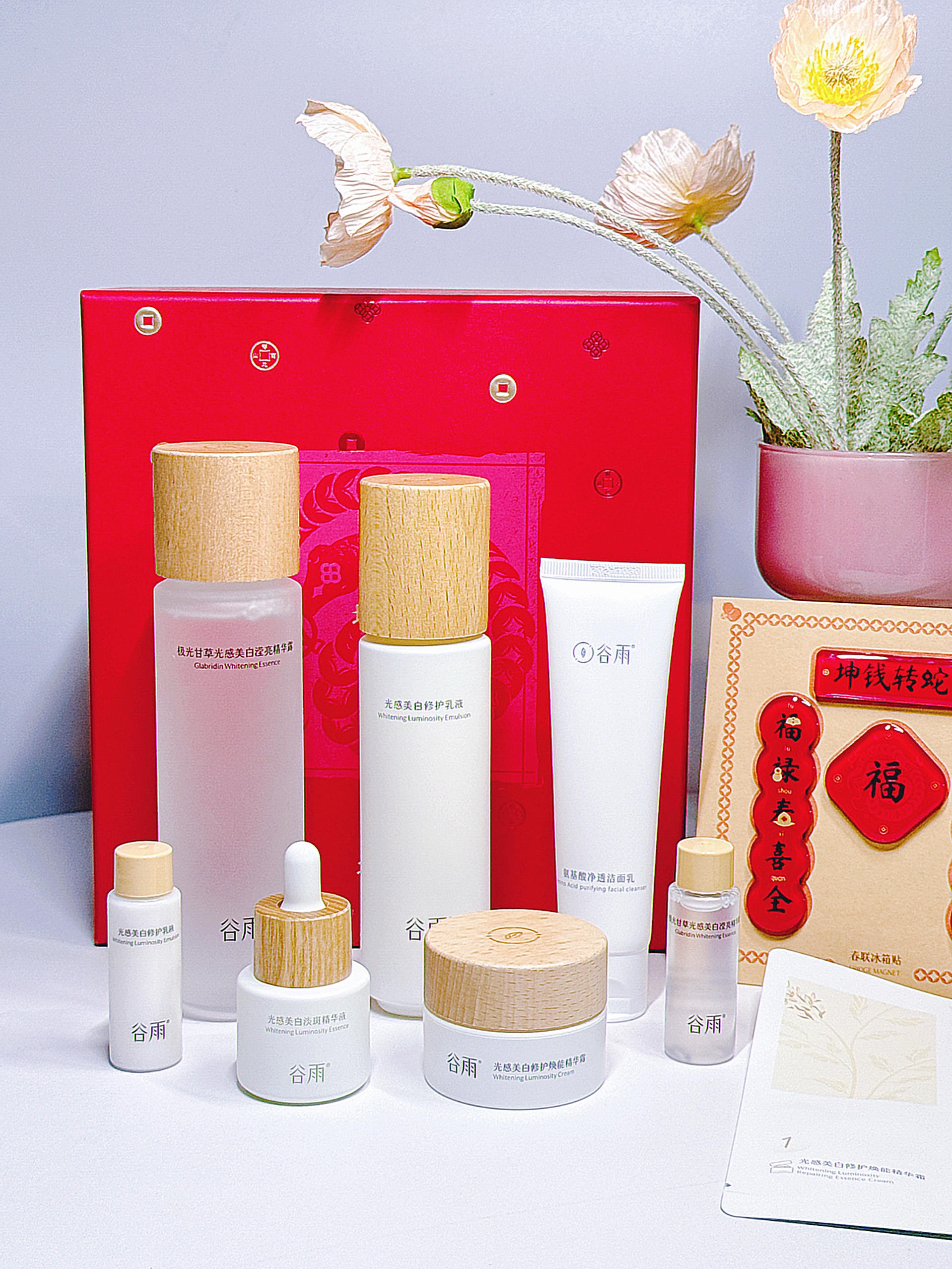 小棉袄早早就备好了母亲节礼物 韩束繁花这个礼盒太喜庆了吧 买正装送了超多小样 啊啊啊啊还有林一的小卡!!! 妈妈是油皮这套在适合不过了 水乳的肤感都是清清爽爽的 涂上立马吸收进皮肤里了 开始期待妈妈收到后的样子了
