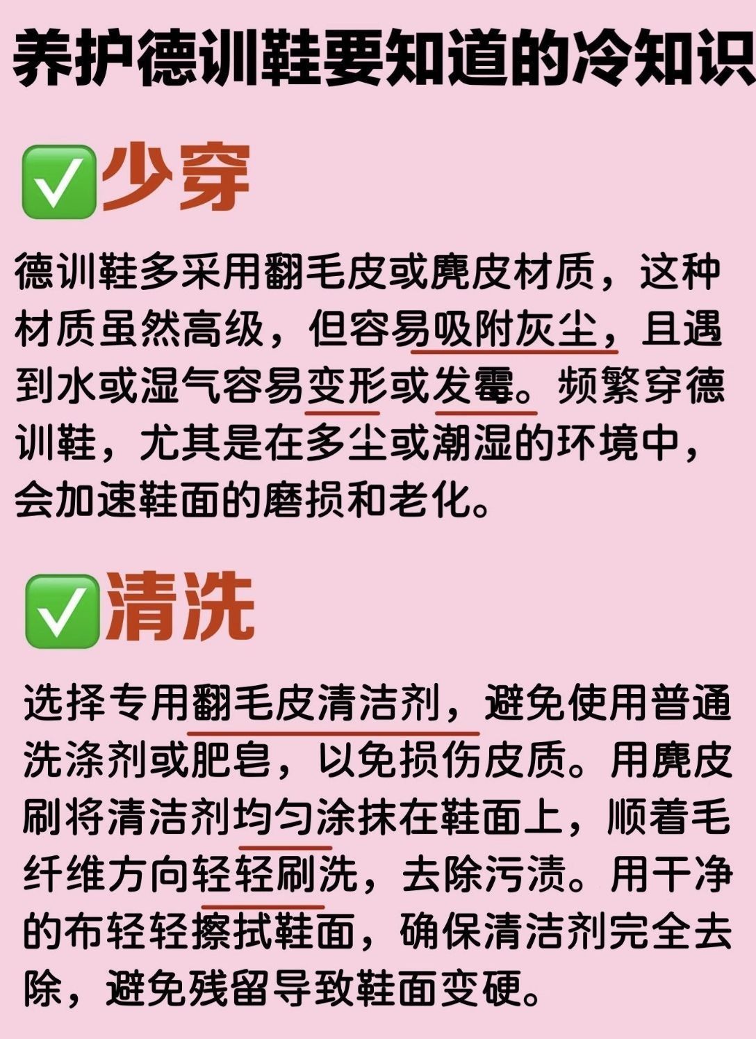 翻毛皮清洁剂/刷鞋清洁剂/麂皮鞋面脏了怎么处理/翻毛皮鞋子怎么洗/勃肯鞋脏了怎么清洗/麂皮鞋子怎么洗/德训鞋怎么清洗/翻毛皮的鞋面脏了怎么清理 作为德训鞋资深爱好者!家里的鞋子大多数都是各种颜色的德训鞋 总结了德训鞋日常洗护方法,需要的快快码住! 1.少穿 德训鞋多采用翻毛皮或麂皮材质,这种材质虽然高级,但容易吸附灰尘,且遇到水或湿气容易变形或发霉。频繁穿德训鞋,尤其是在多尘或潮湿的环境中,会加速...