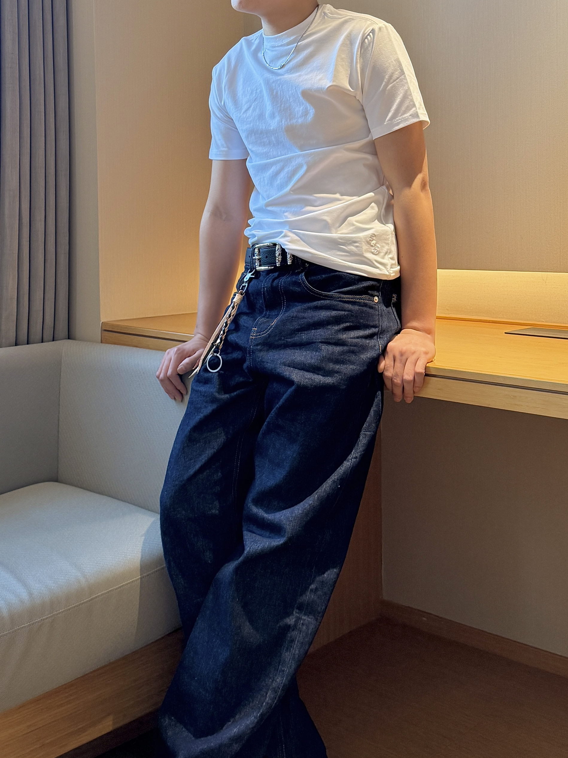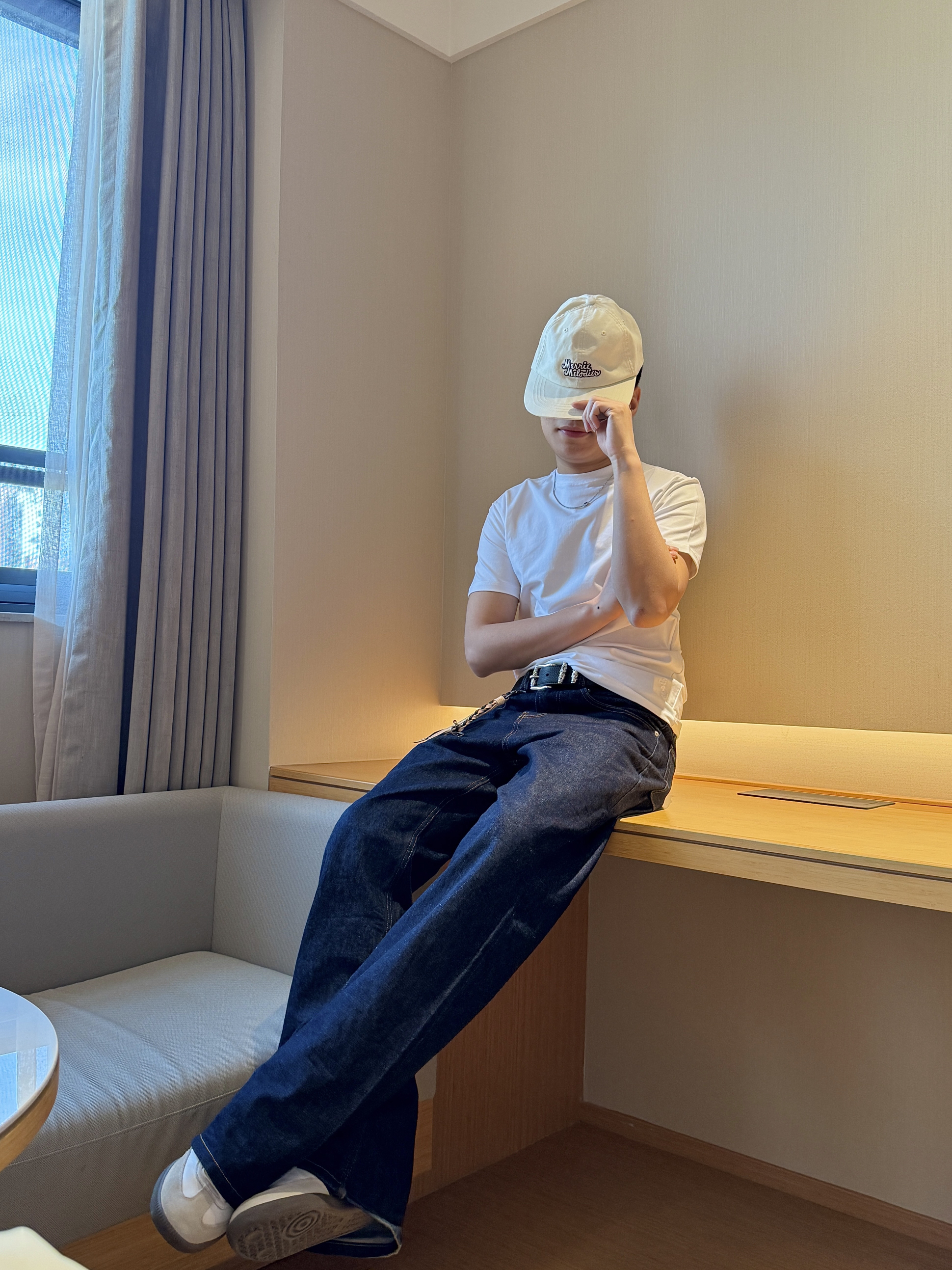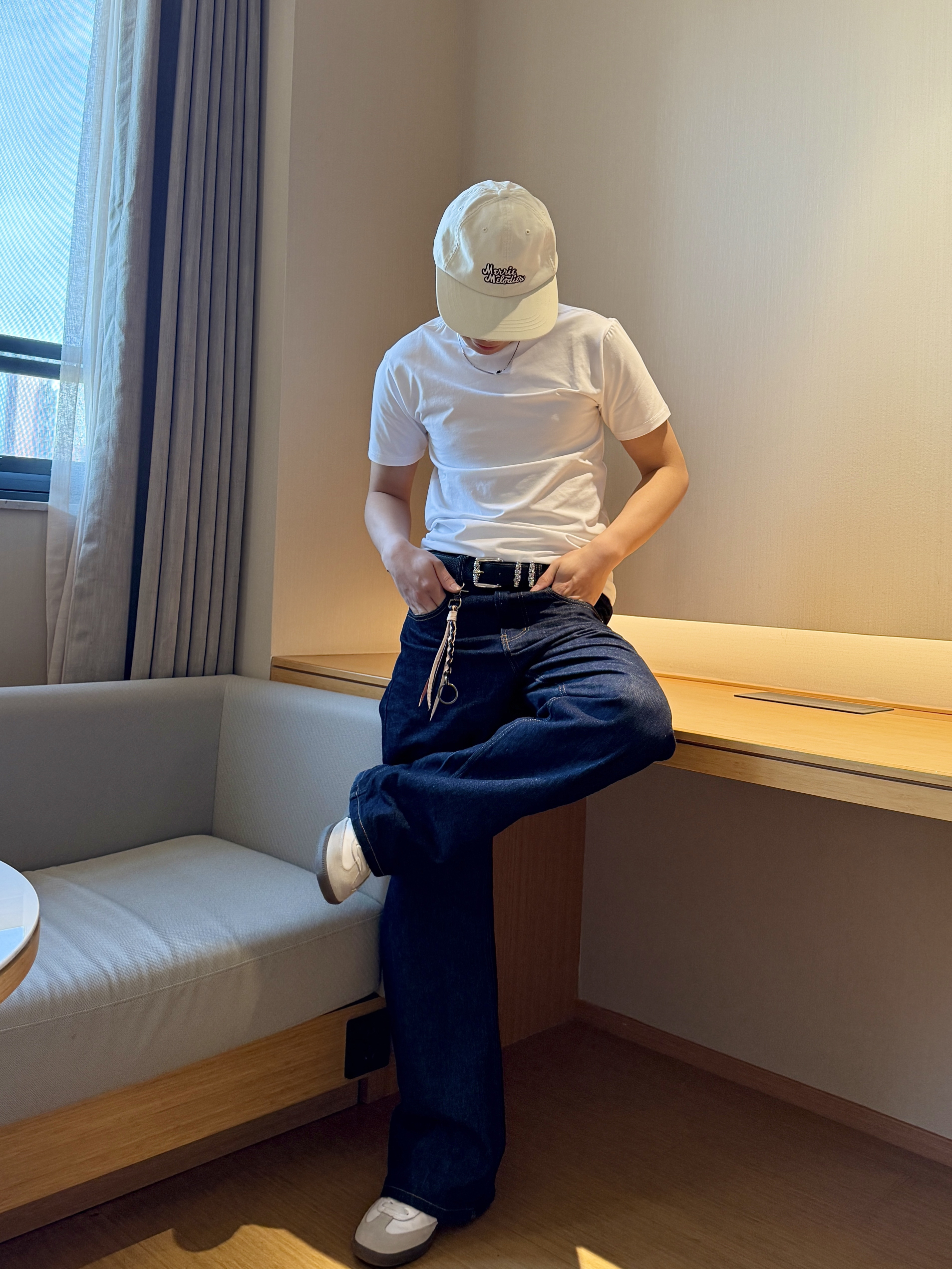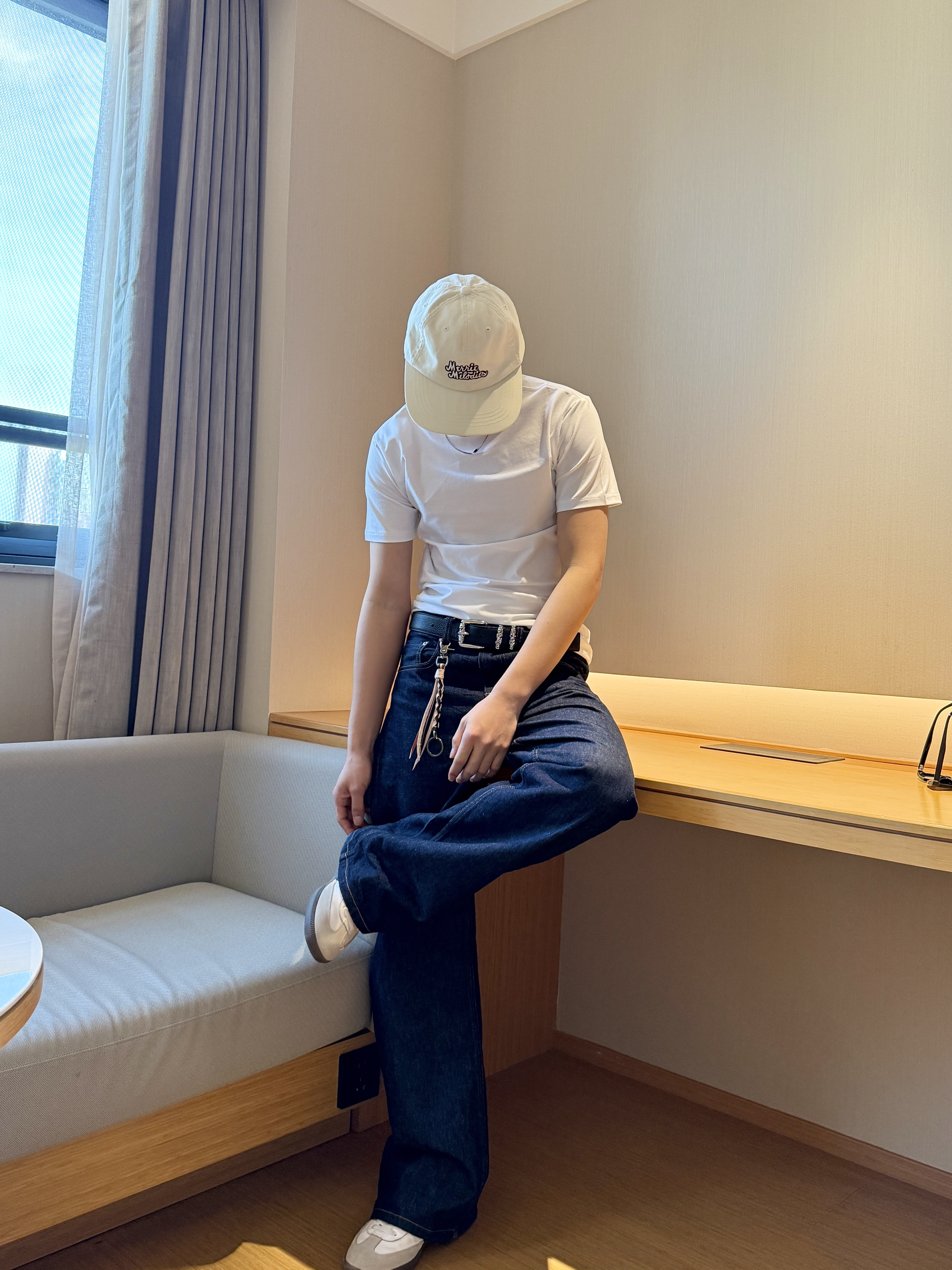 这身穿搭有没有嘻哈的感觉,分享一下今天的穿搭 穿搭小tips:s45紧身短袖,裤子是原色牛仔裤,鞋子是Adidas的德训鞋!选择了一套复古腰带,穿搭是上短下长,凸显身材比例!