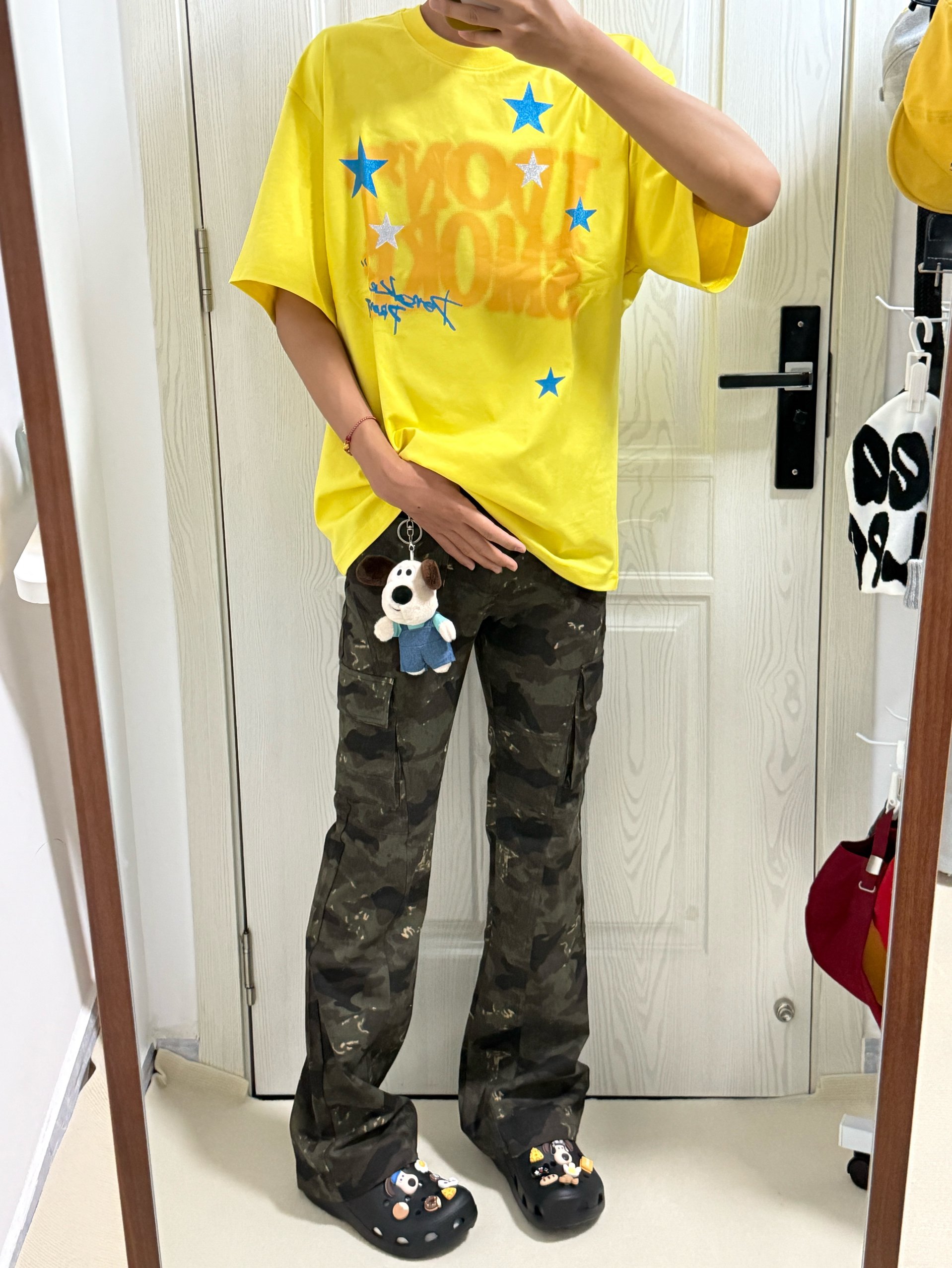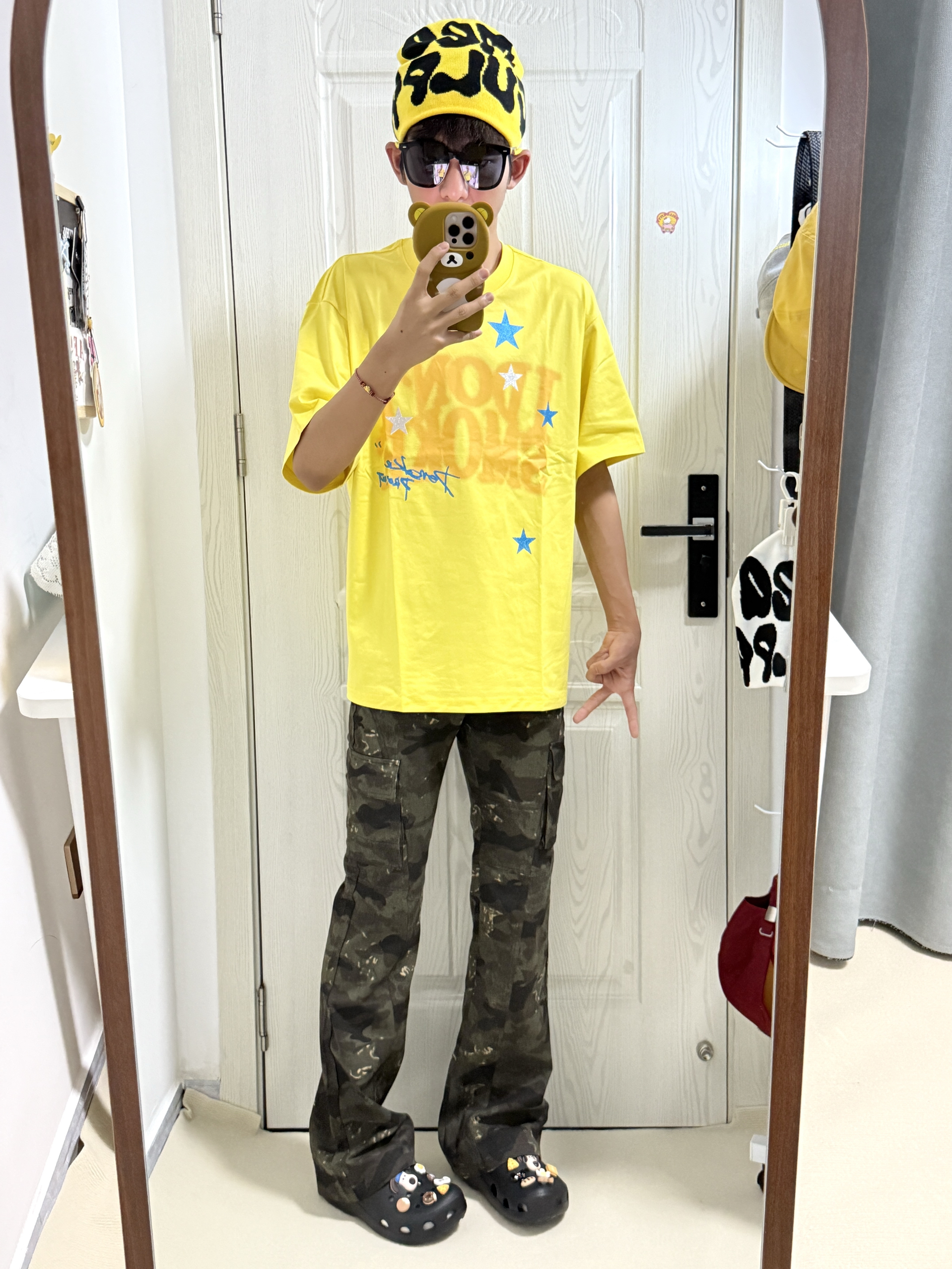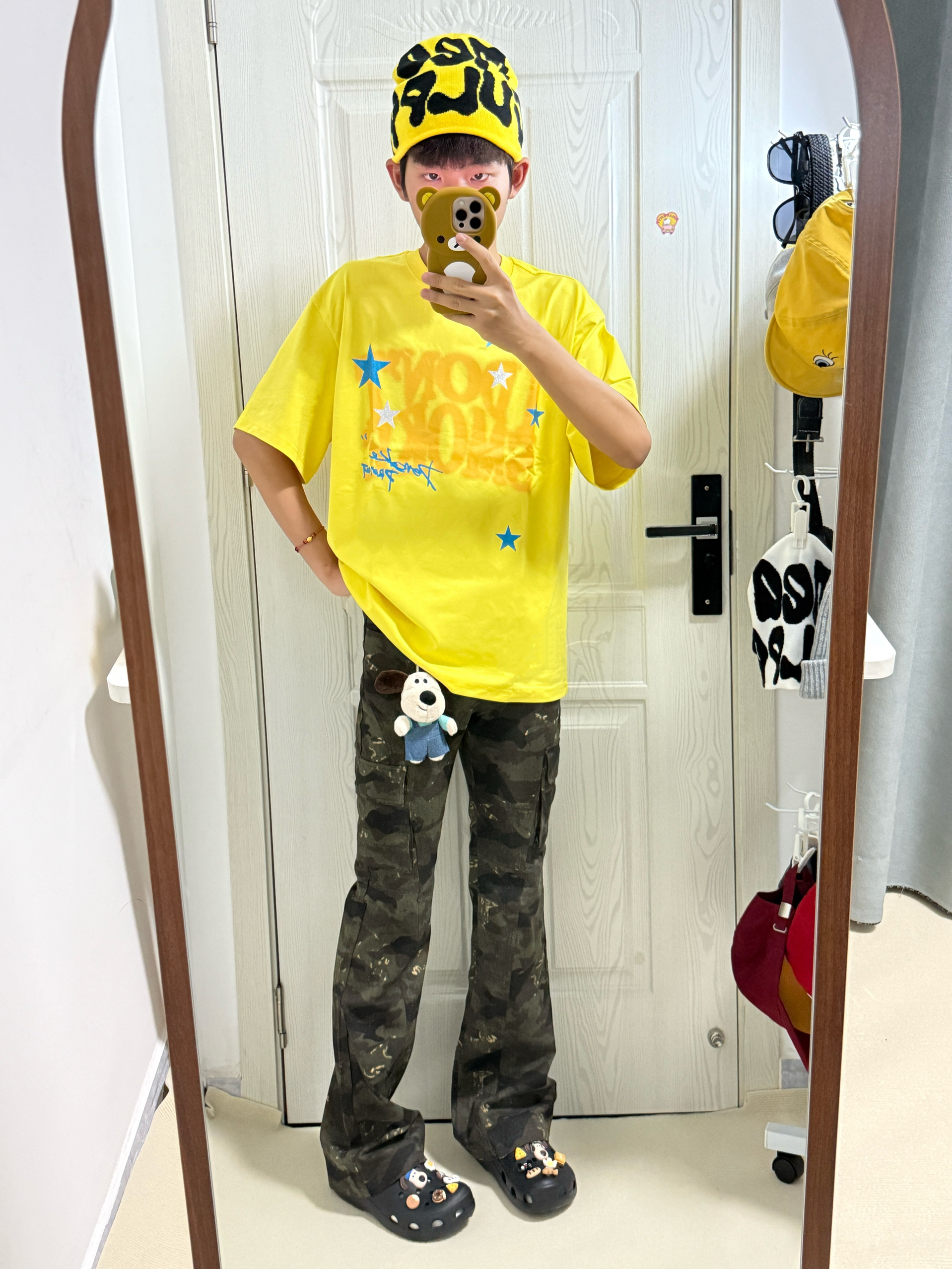 【黄色🌟T恤➕迷彩🍂工装裤 亮色好适合夏天🤩】,由用户 王小旭_ 分享,来自河南。这是一篇来自识货社区的真实用户分享笔记。