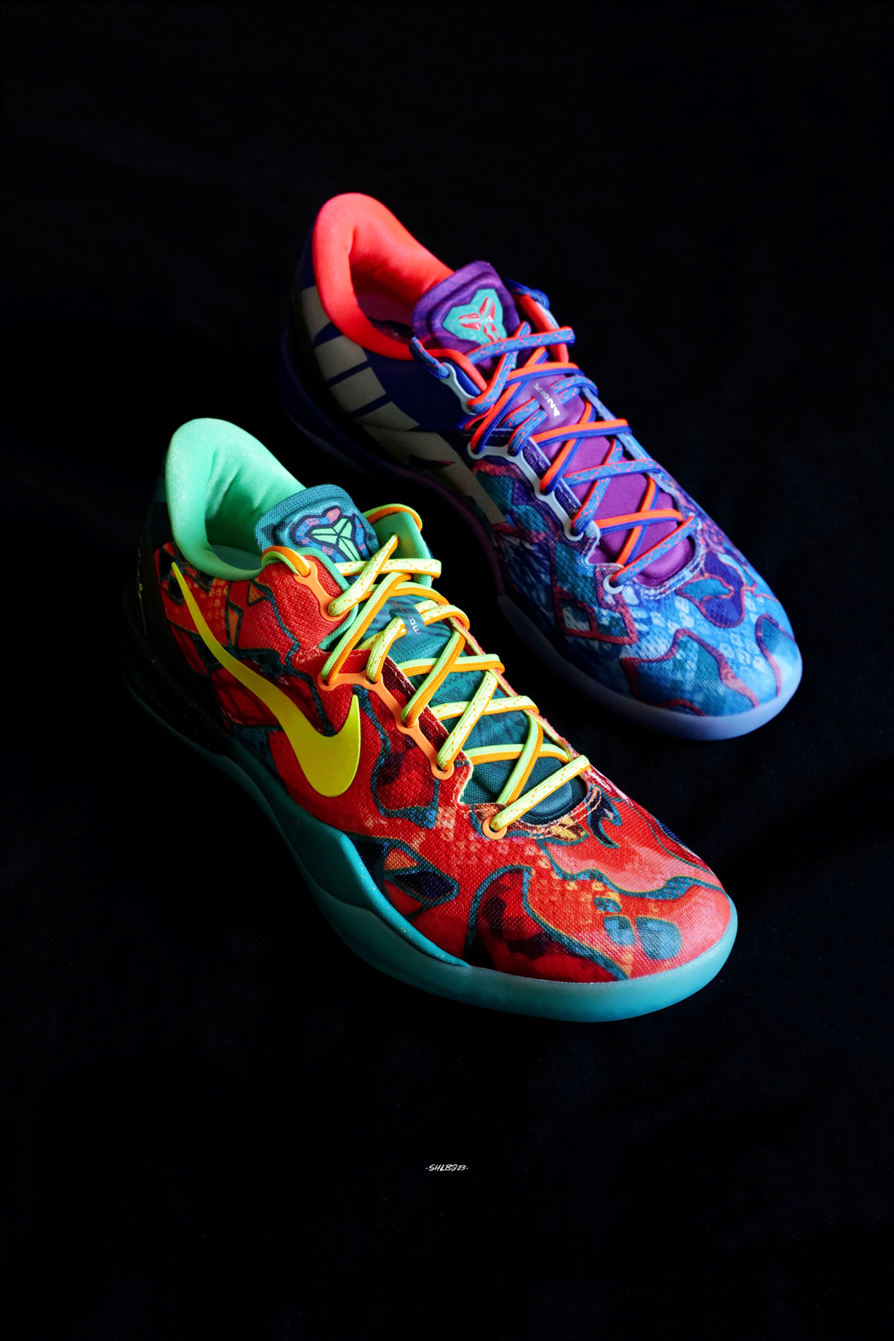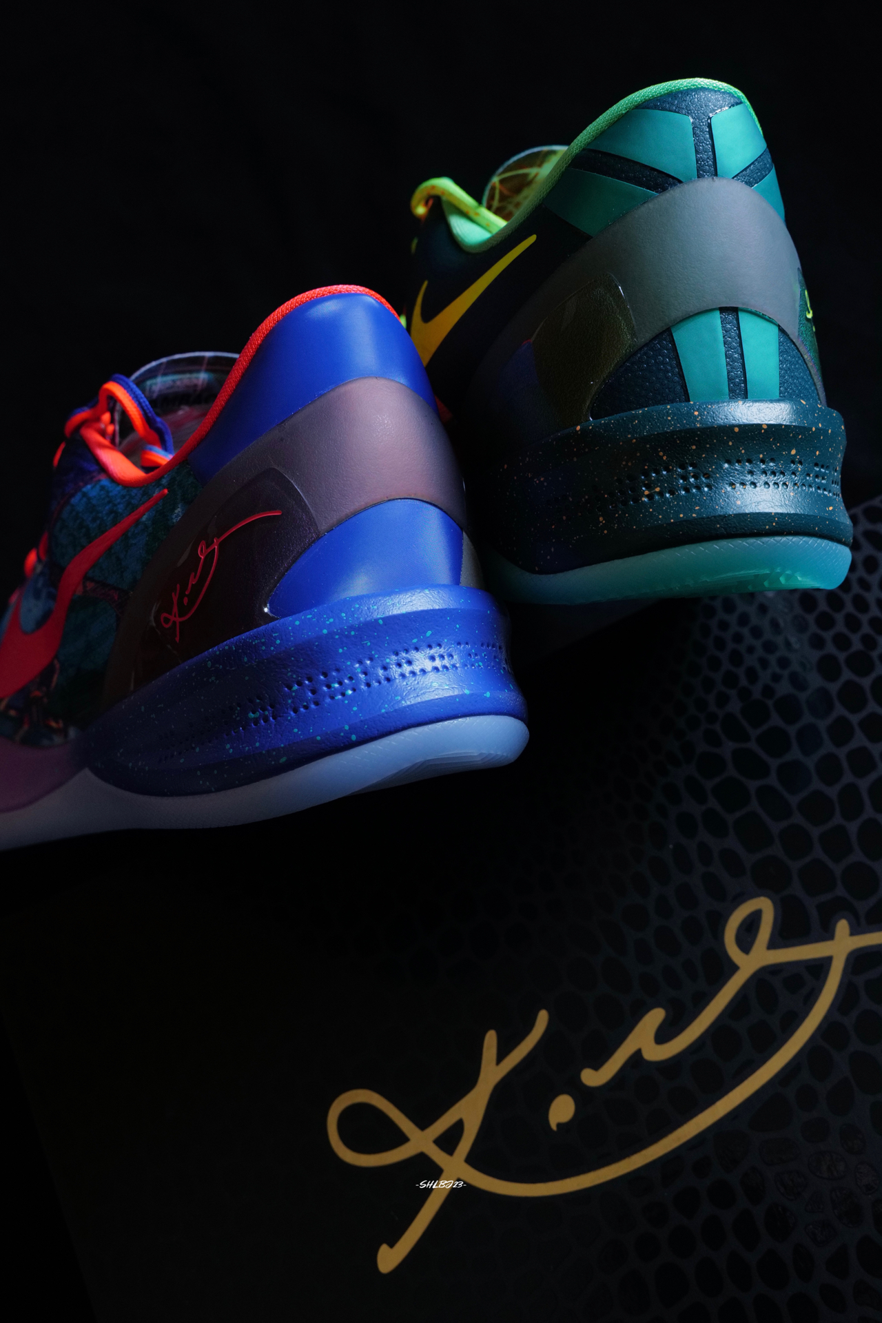 What The系列是将一双鞋子的所有特别配色集于一双球鞋上的设计。从科比7代开始流行的鸳鸯配色在8代上也是采用了更加炫彩的配色。 这双科比8在科比退役的9周年,也就是这双鞋子推出的12周年再次回归了。 这次可能因为是Protro系列,所以将元年的鸳鸯鞋垫改为了白色,部分鞋面花纹移植到了鞋舌内侧,不说的话可能大家也没意识到,比起鞋垫,算不上特别大的变化。 还有一些小区别就是鞋面的浮雕Swoo...