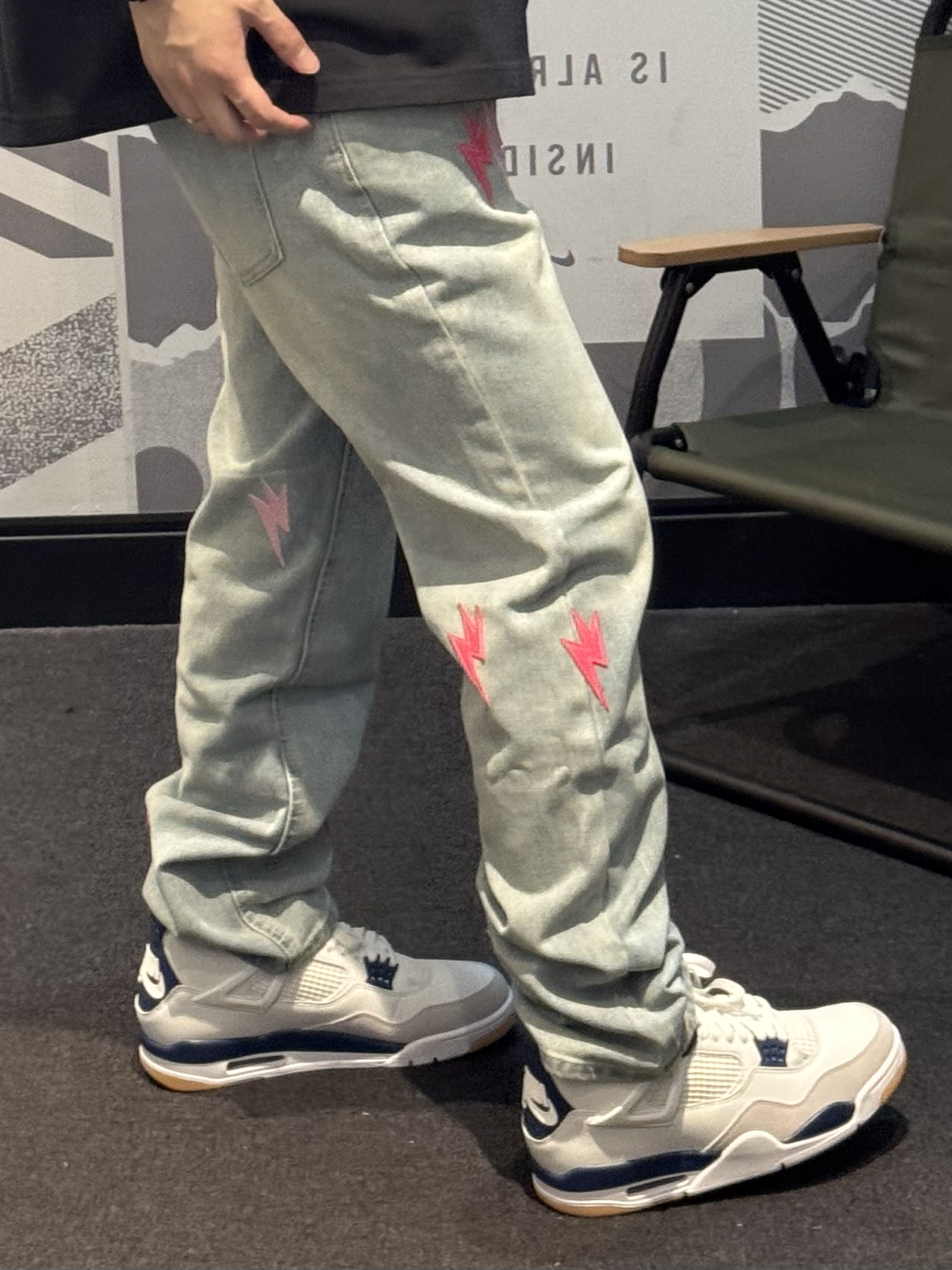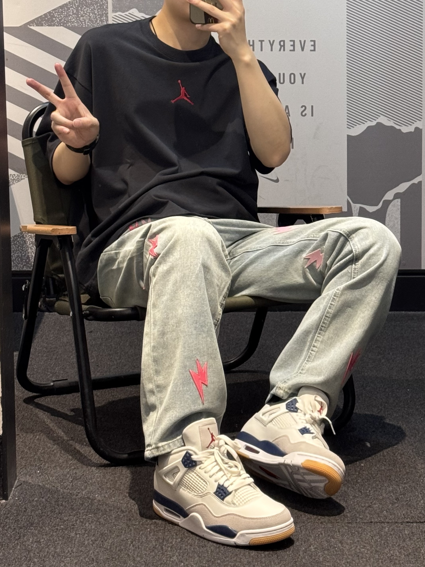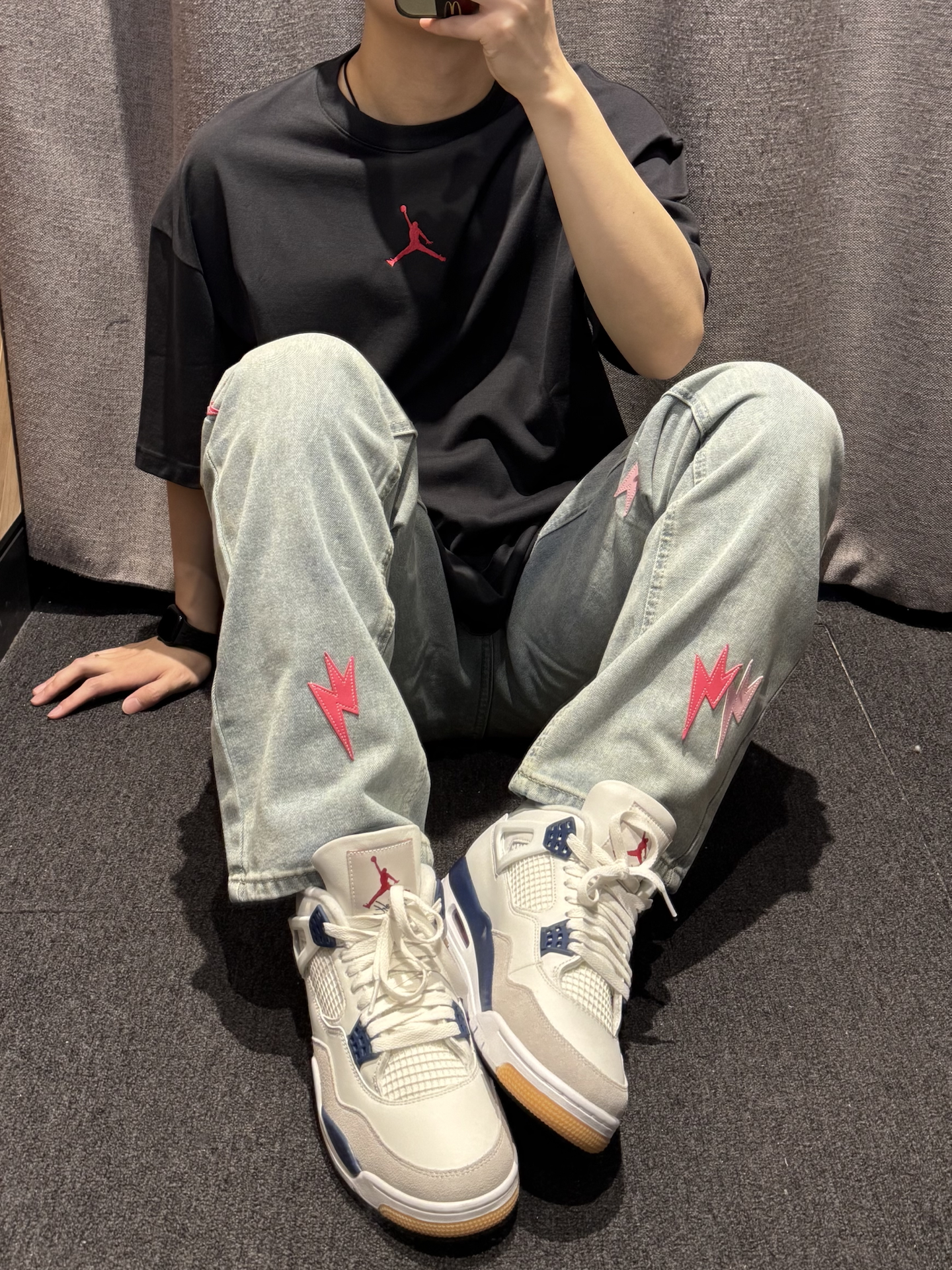 谁懂这条牛仔裤的含金量啊😭 今天的帅气就是ta给的❗️❗️ 新款闪电⚡️标换成了粉色搭配红色 好抢眼👀 直筒版型 不挑腿型贼拉显瘦💢 今天搭配的是同色logo的T恤➕aj4 细节一整个拿捏住了! 约会女友都讲我越来约会穿了[耍帅_blue] #我真的超会穿 #我的态度穿身上 #一条神裤的无限可能 #给裤子做点减法 #春夏时髦运动风