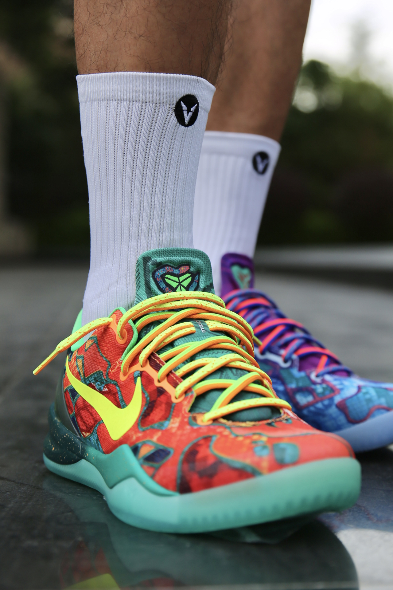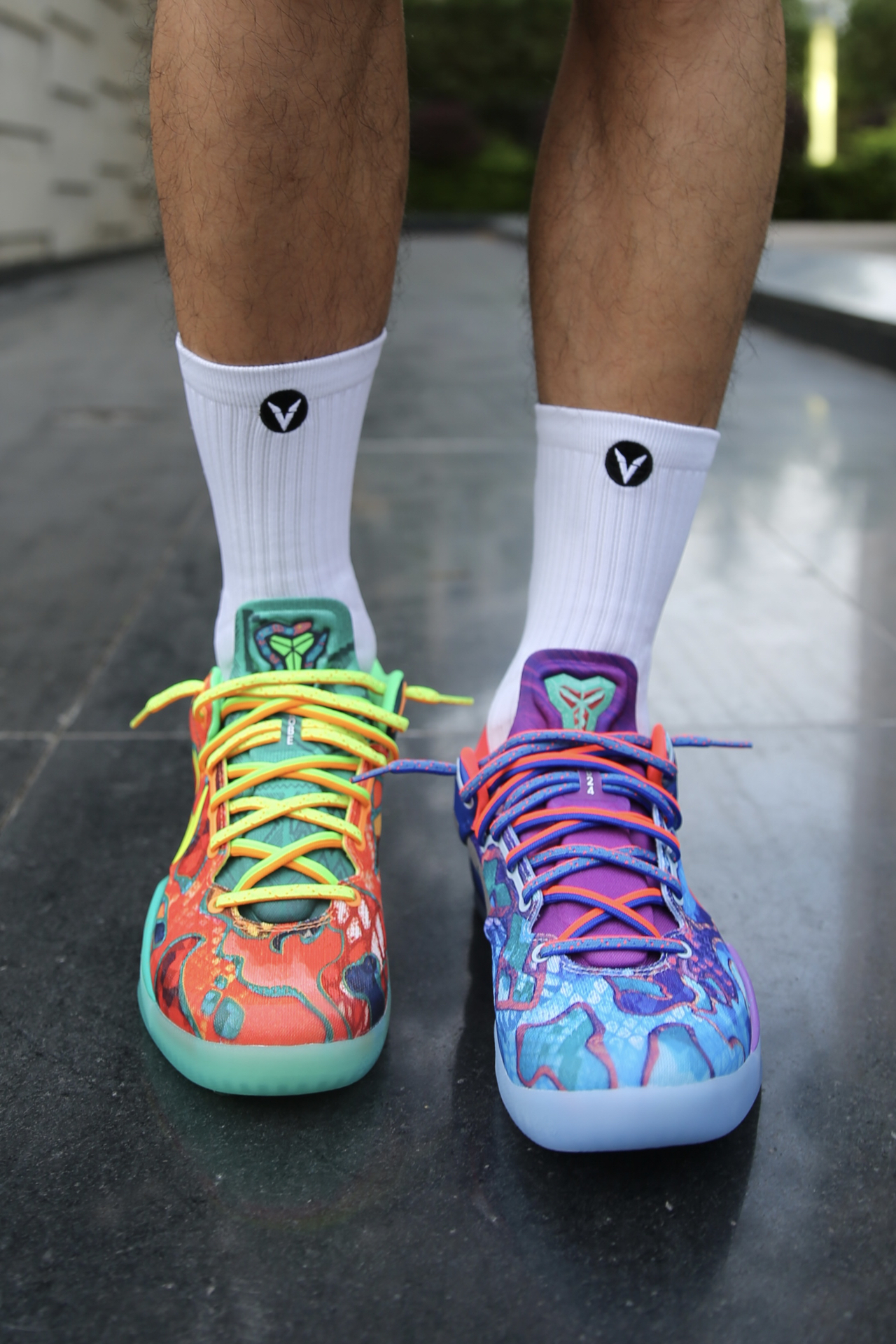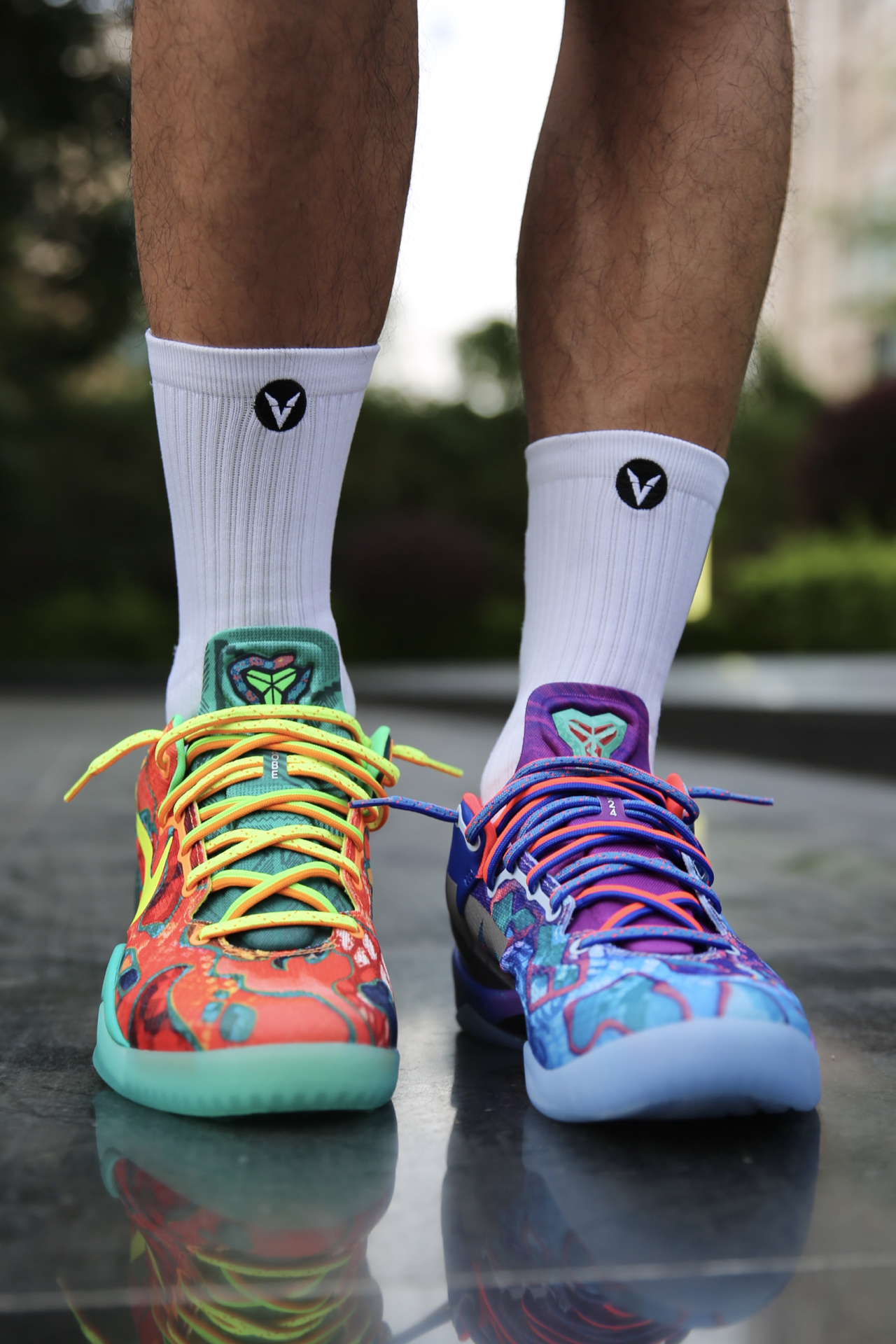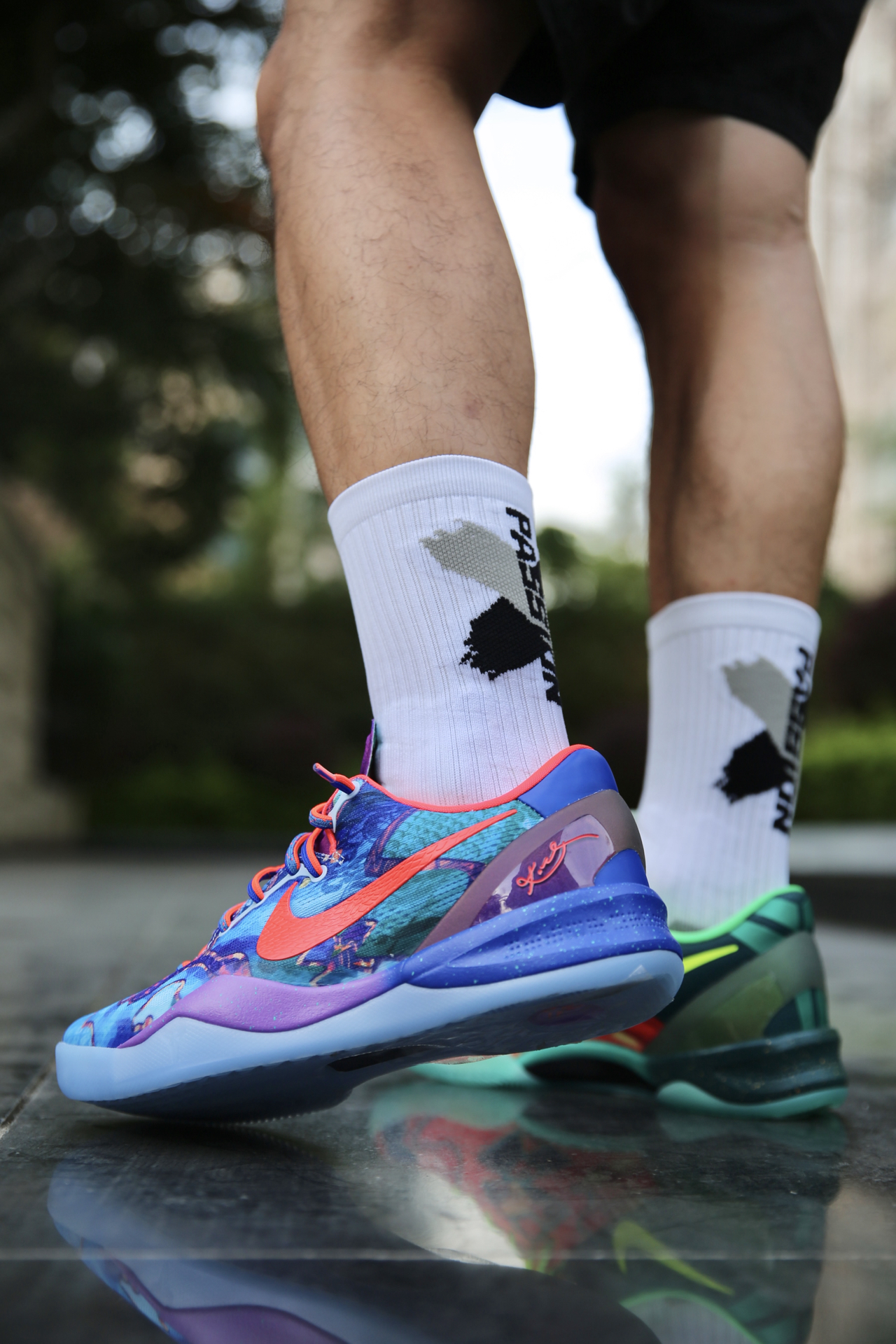 在我心中,鞋袜比衣服还要重要! 今天上脚的是kobe8 what the 配色和维动撒野篮球袜,张扬又个性! 毛巾底脚感特别舒服,防滑又吸汗,打球落地稳稳的,透气性也不错,久穿不闷脚。袜身有厚度但不勒不掉跟,运动一整天都很自在。 我很喜欢它的撞色设计,还有后跟的 passion X 刺绣,搭配我的鸳鸯kobe8很好看,街头感够味,日常穿也OK。 细节到位,打球实穿,颜值也在线,是那种穿一次就想...
