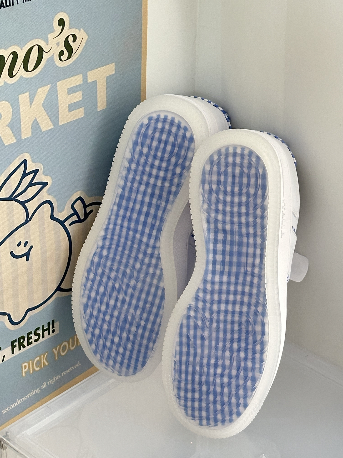 / 太喜欢我的新鞋子啦 鞋底还是蓝白格纹滴 上jio穿起来很舒服 日常搭配裙子和牛仔裤都很百搭 怎么搭配都不会出错 可盐可甜~ 配上我滴baby蓝书包 一套太适合去踏青啦~ 已经狠狠期待夏天啦 喜欢蓝色的姐妹👭可以冲一波
