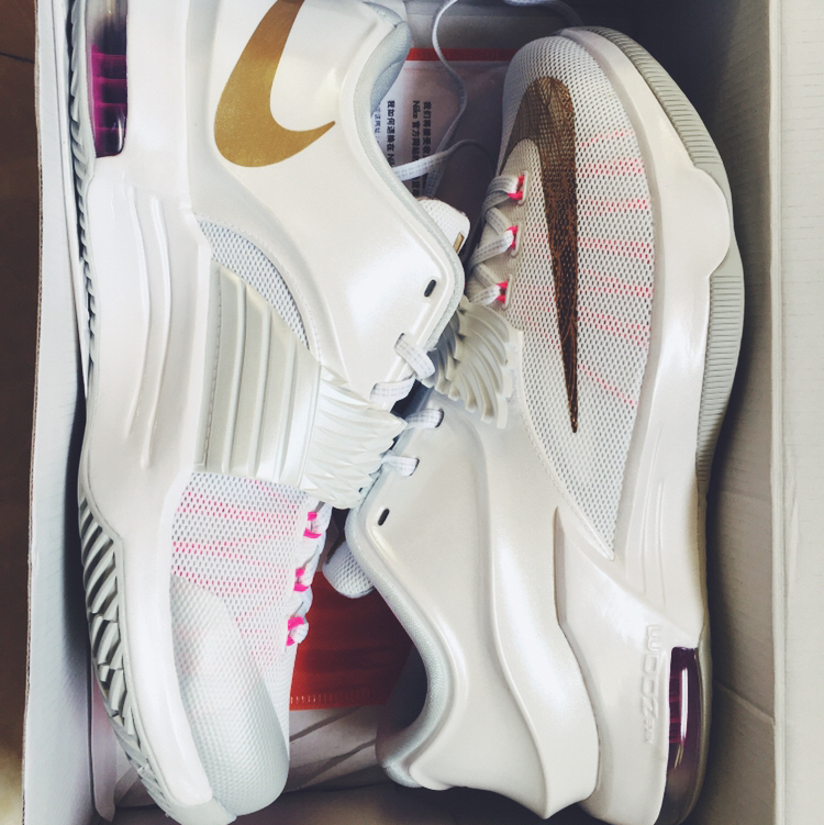 只能说乳腺癌是KD7系列里面最美的配色没有之一! 💗绑带处👼天使的翅膀再加上飞线隐隐约约的粉色!鞋舌和SHOOSH都是采用金色的处理!只能说是清新中带点到骚气 骚气中不失稳重👍这双鞋也是KD为了致敬自己姨妈而设计的一款球鞋。 💗当是KD还在雷霆和威少一起冲击总冠军🏆,如今已经来到了不同的球队,雷霆的大旗交给了CP3🤔️ 🤟🏼再说回到KD7 这双鞋后掌使用了立柱式开窗气垫 刚开始打球的时候应该没什么...