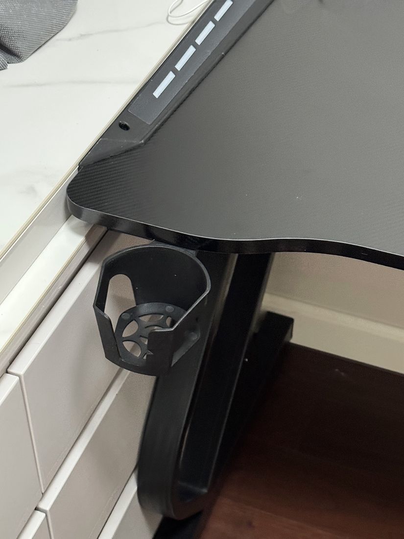 实物到手真的惊艳到我,整体酷帅有型,摆在房间里,游戏氛围感一下就拉满了。 桌角专门设计了放杯子的地方,他打游戏时随手就能拿到水杯,还有挂钩,可以挂耳机、钥匙等小物件 ,方便又实用。