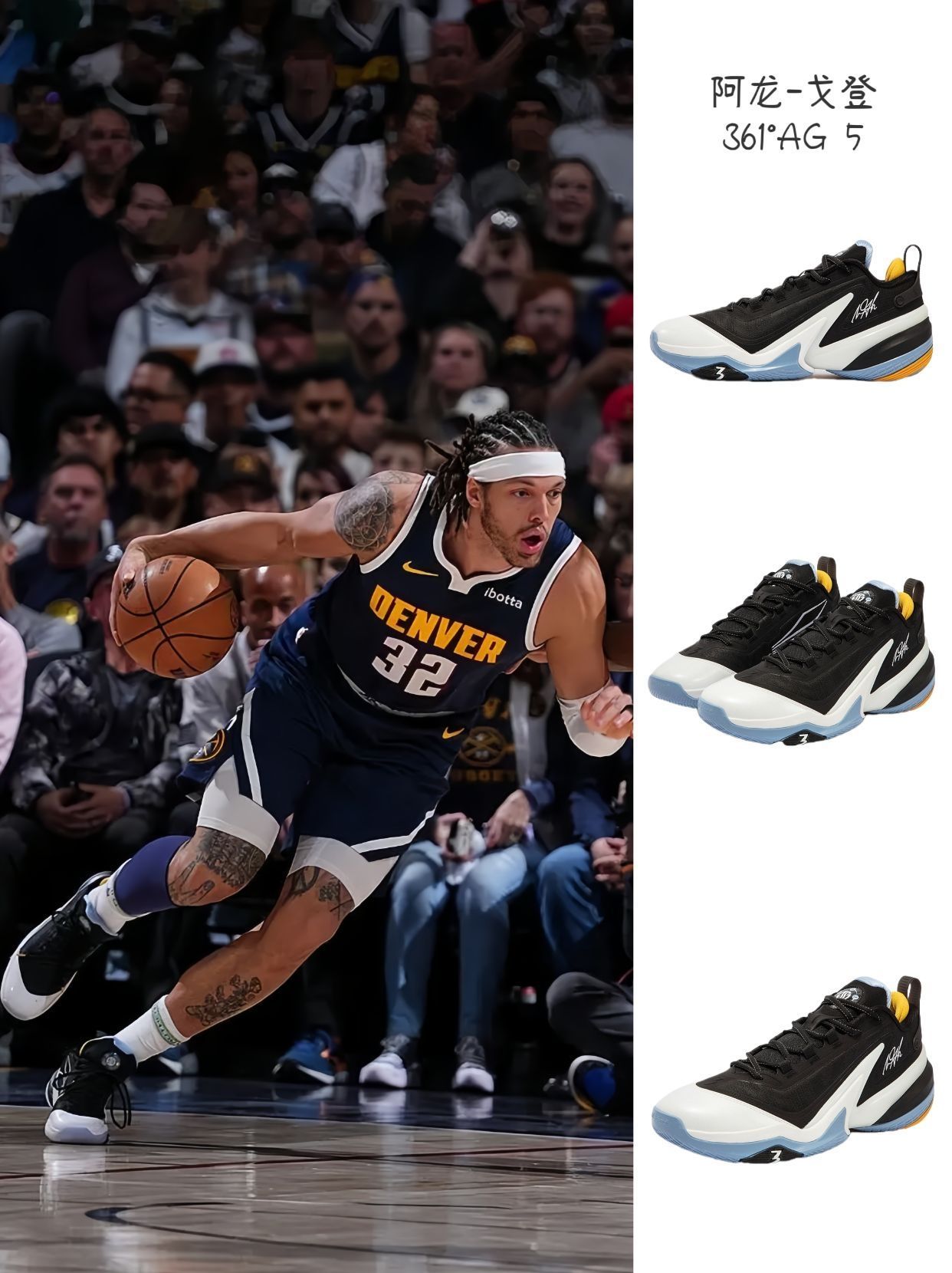 1.尼古拉-约基奇得到26分 脚上穿的是海绵宝宝联名配色361度JOKER1 2.阿龙-戈登得到14分 脚上穿的是361°AG 5 丹佛配色 3.贾马尔-穆雷得到23分 脚上穿的是New Balance TWO WXY V5银白配色 4.诺曼-鲍威尔脚上穿的是斯凯奇SKX NEXUS蓝色