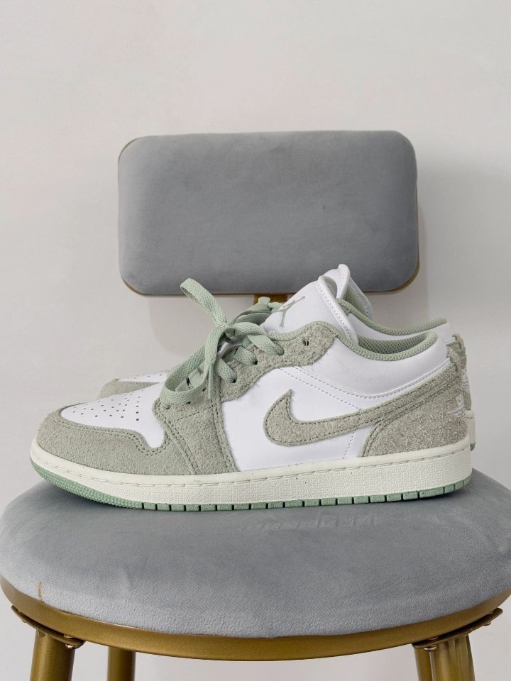 谁能拒绝这双Air Jordan 1 Low薄荷绿神鞋!翻毛皮鞋面,细腻又有质感,仿佛把夏日薄荷冰沙穿在脚上🍧。清新薄荷绿与米卡其阔腿裤碰撞,简约白T点睛,一秒get甜飒夏日风😎。百搭又舒适,日常出街、运动撒欢都超适配,妥妥的时尚加分利器💯。限量库存,手慢无,快冲🏃!