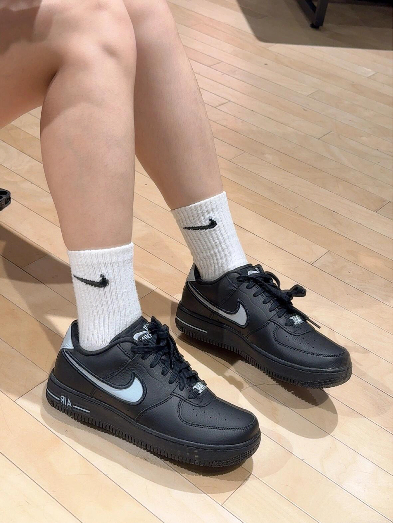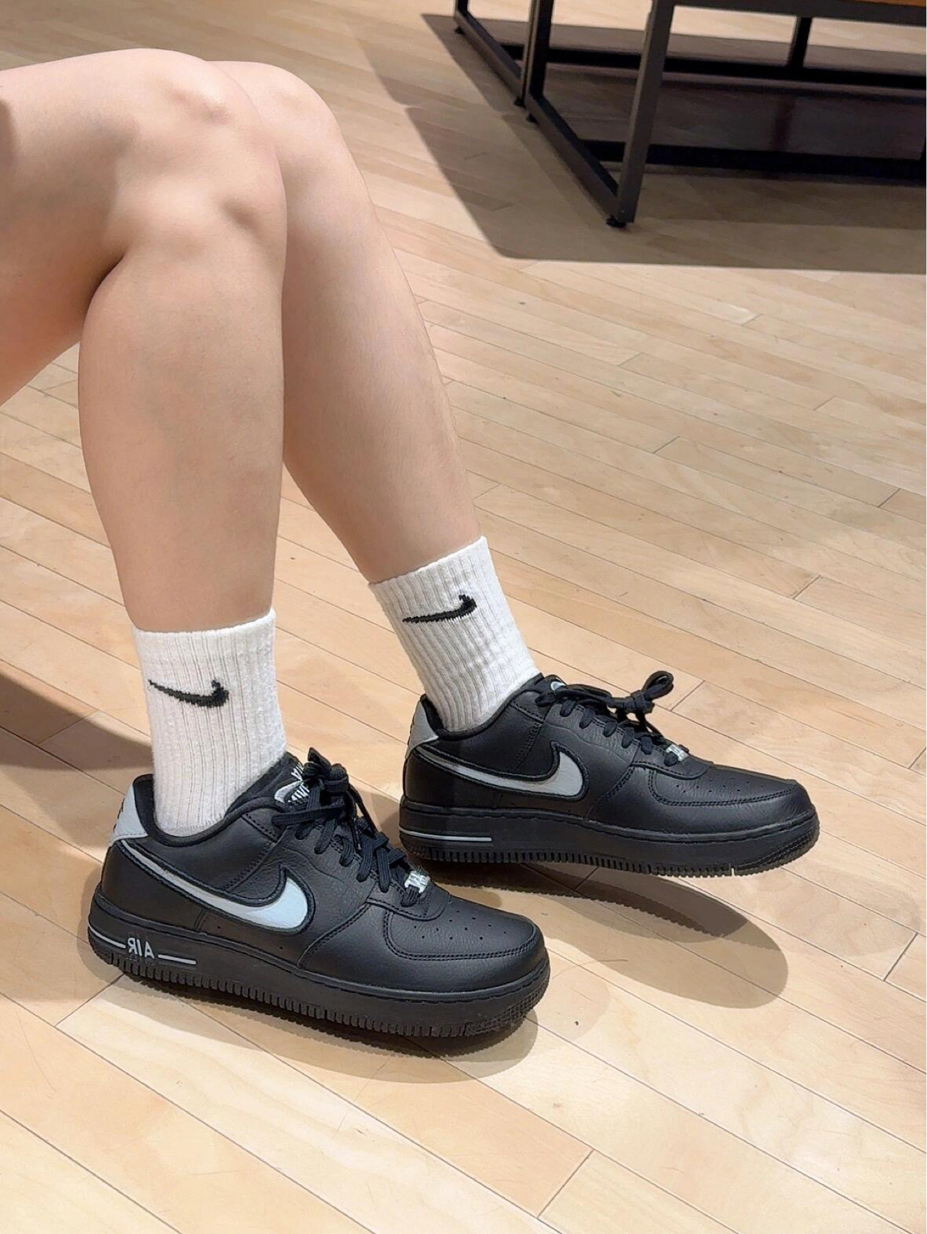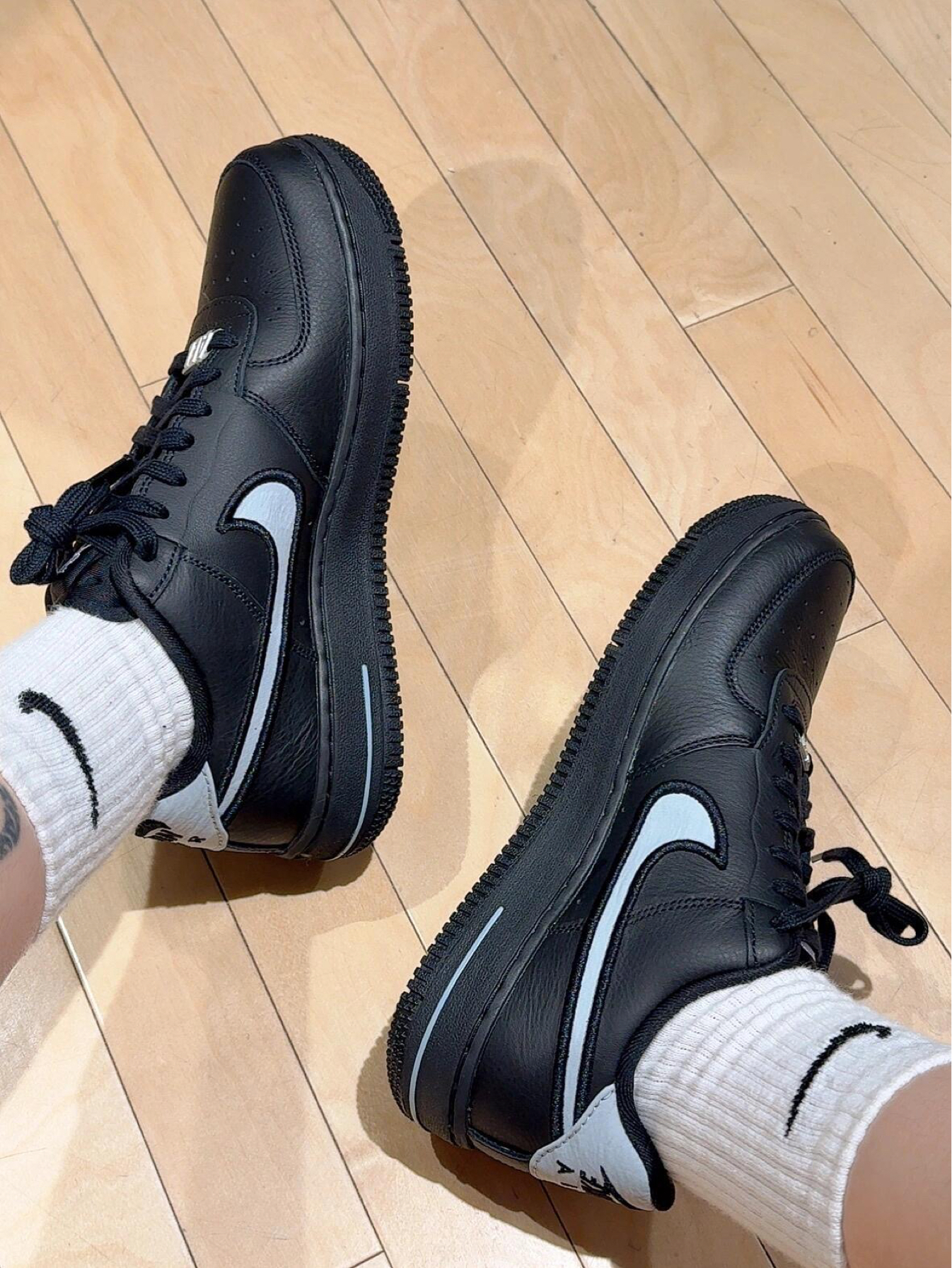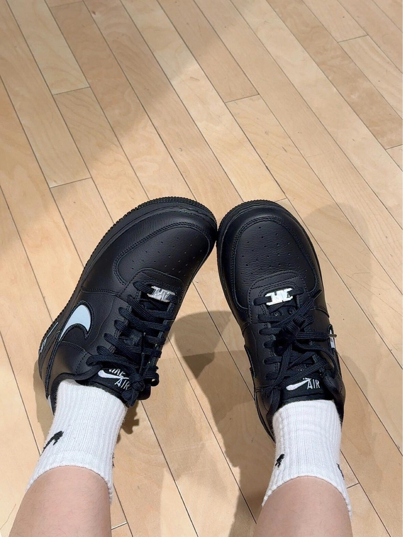 银灰色的logo越看越有魅力鞋子板正 鞋底支撑力很足复古时髦真的戳中心尖上了被拿捏了!酷黑遇上闪耀银勾质感爆棚经典空军一号版型百搭又时髦优质皮革鞋面Air 气垫加持脚感舒适无论是街头风还是休闲装都能轻松适配😎这款空军一号比别的空军一号都要轻喜欢底厚底又不喜欢太重的空军那这对是天选之鞋👟