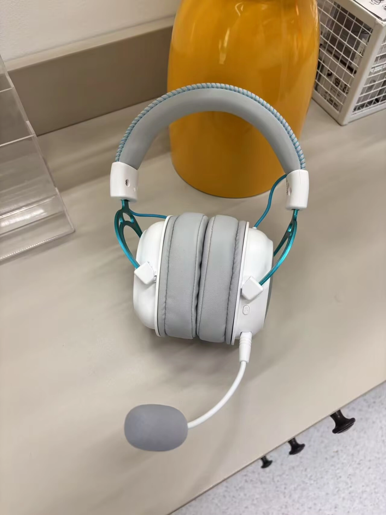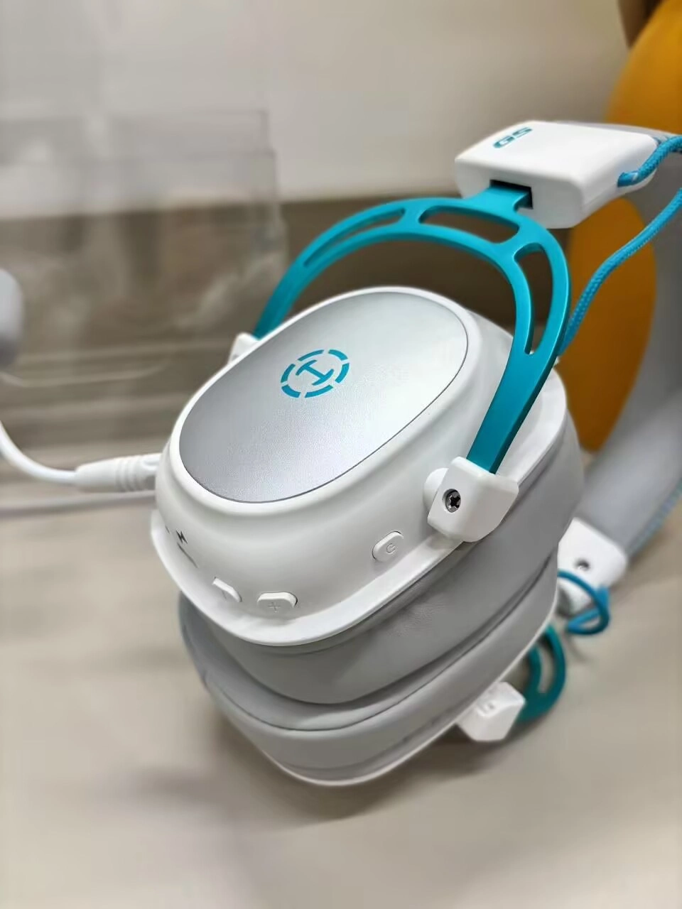 外观白银色➕蓝色点缀 简约又时尚 大气又清新 配戴舒适 拍照出片看起来炫酷🆒 打游戏上分率提高 把把去吃鸡!
