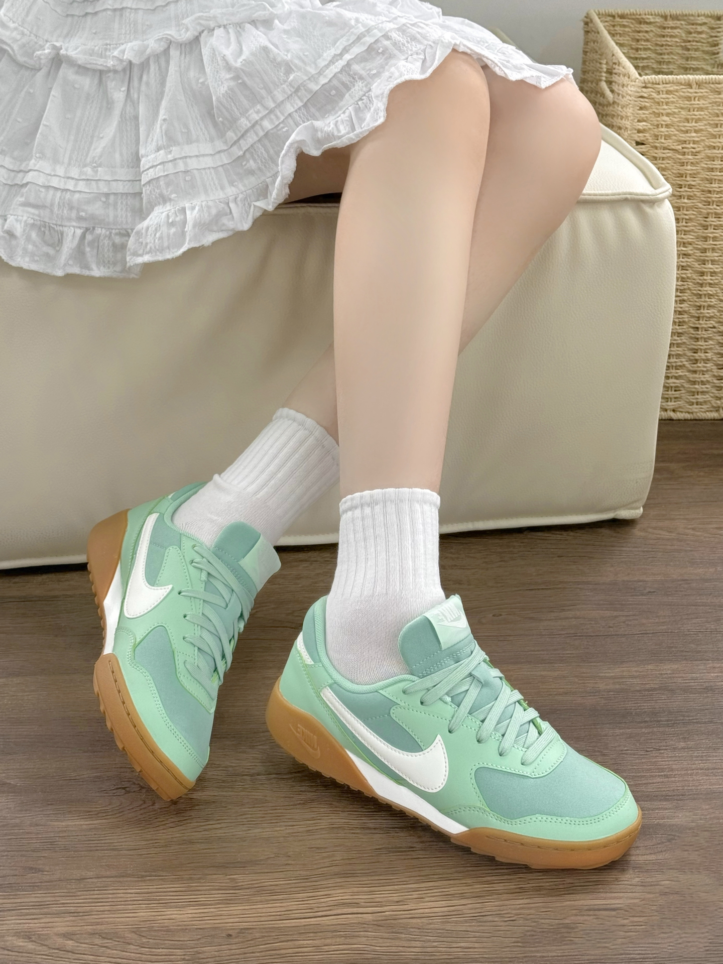 好清透的浅绿色小德训 被元气到啦~ 上脚就是一整个春天的配色呀 搭配小白裙都很出片 直接变成韩女啦 上脚软底软面 舒适透气 超轻脚感 走路超级轻松 出街怎么搭配都好看