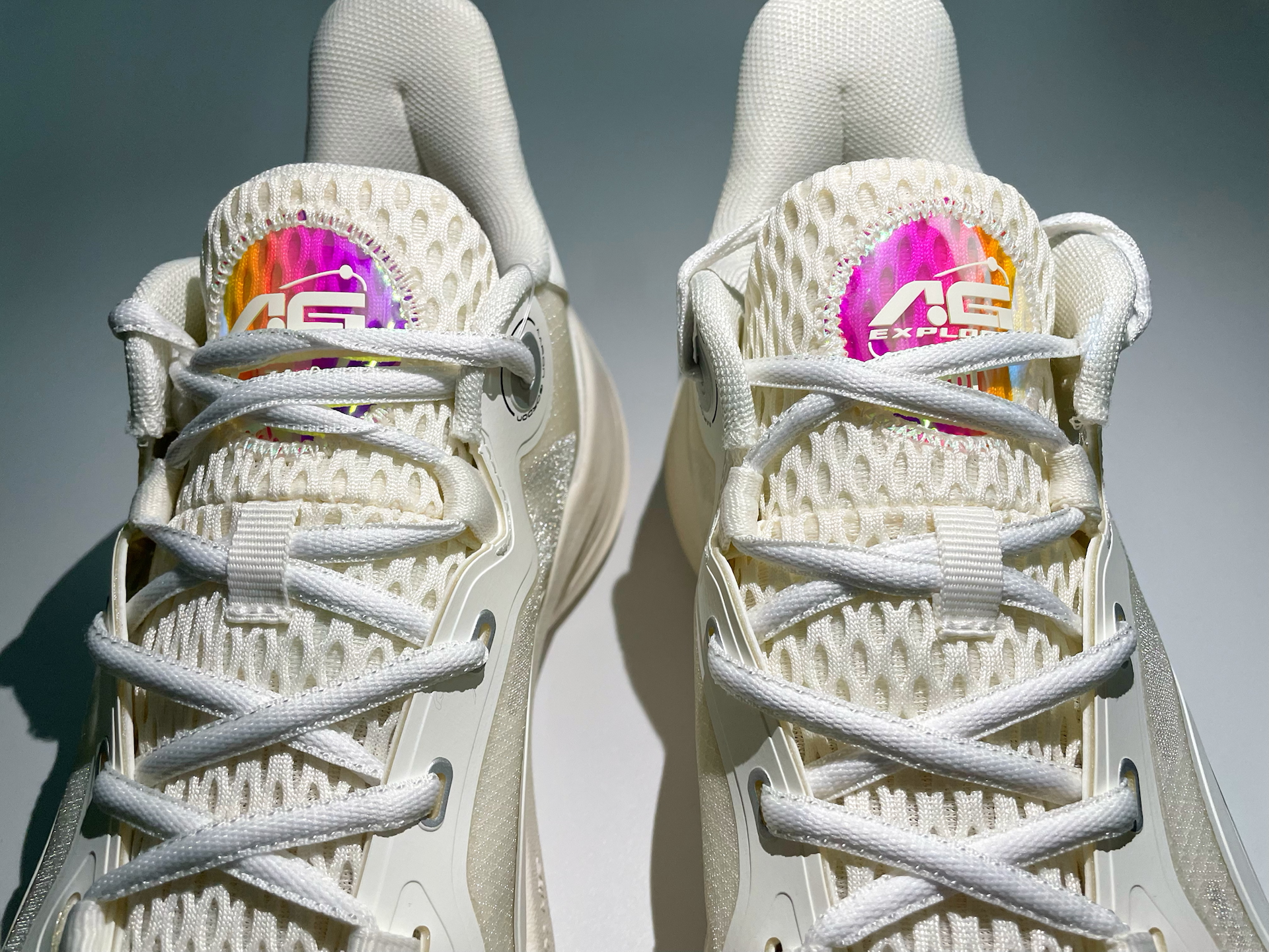 自己平时喜欢那种相对薄底的篮球鞋,启动比较灵活,上次入了一双361°的燃战 M3后开始爱上穿他家的篮球鞋了。 这双AG 闪耀篮球鞋也跟上一双篮球鞋一样,属于相对薄底的,变相灵活,低帮的设计给到脚步最大的灵活空间。纯白的配色真的难以抗拒,还有鞋舌处镭射材质的AG字样,更加添彩。 鞋底纹路较深,防滑性和耐磨性都很到位。 性价比很高,才2开一点,打外场也不心疼,相当耐造,妥妥的性价比实战篮球鞋。