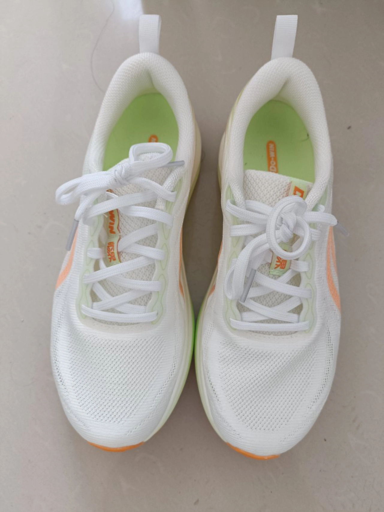 这双鞋是买给女朋友运动用的,她平常板鞋穿38码,然后这双买的也是38码,感觉左脚微紧。后面是她的感受(目前穿多威临界2已跑步30+公里,跳操10+小时)下面来聊一下这双鞋: 优点: 性价比高:多威的鞋子不用多说,性价比杠杠的,我之前买的训练鞋也都是多威的,可以说国产性价比之王。 颜值高:白色绿色和橘色的搭配,看起来非常有青春气息,运动的时候穿的单调会让我没有激情,这种“显眼包”配色就很适合...