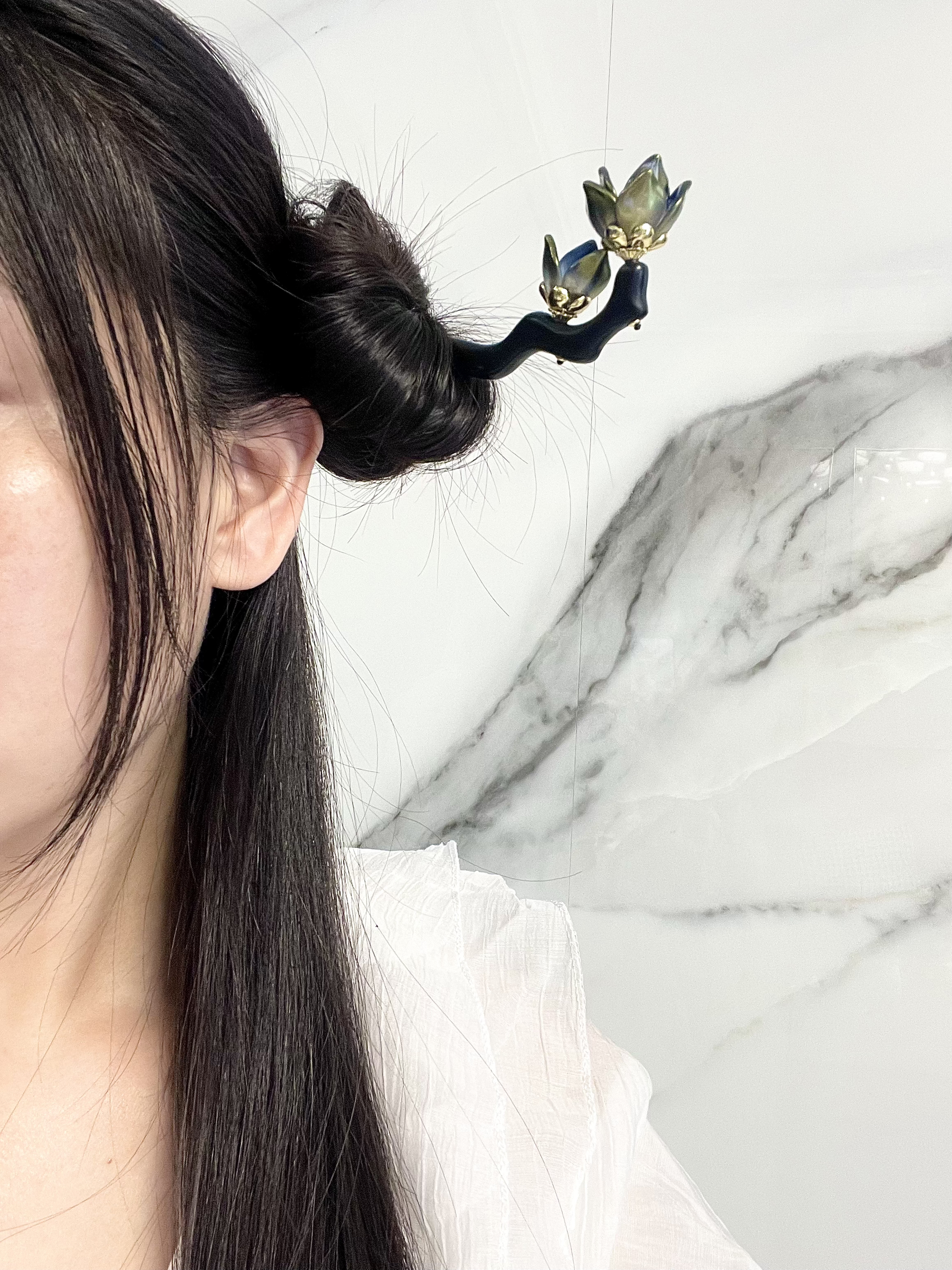 一直就想尝试下新中式的发簪 实际比我想象的还要惊艳哎 随便盘个丸子头戴着也显气质 我觉得有种温婉大气的美 每个簪子都是檀木哒质感也不错 日常我搭配国风装或者休闲装都适合~