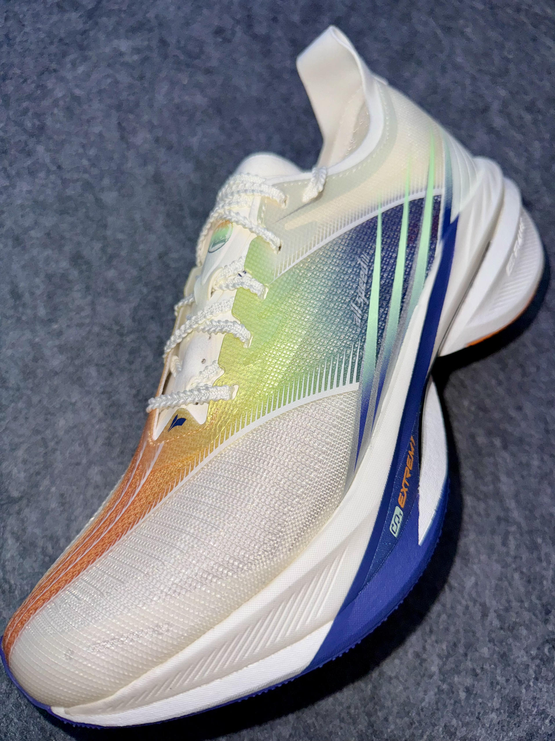 361 飞飚1.5 红蓝BUFF配色🔴🔵 作为361的次顶碳产品,飞飚现在也已经出到了2代,但是在近期又全新发售了1.5代,这是361经常喜欢进行的一个常规操作❗️ 点5的版本一般在最主要的中底配置上都不会有任何的改变,最主要的改变就是在鞋面材质上,为不同需求的跑者提供多种的选择🏃 那么这一次对比于一代主要将斜面改为了绞综材质,这种材质透气延展性更好,适度也更加出色,对比其他的大多数材质在打...