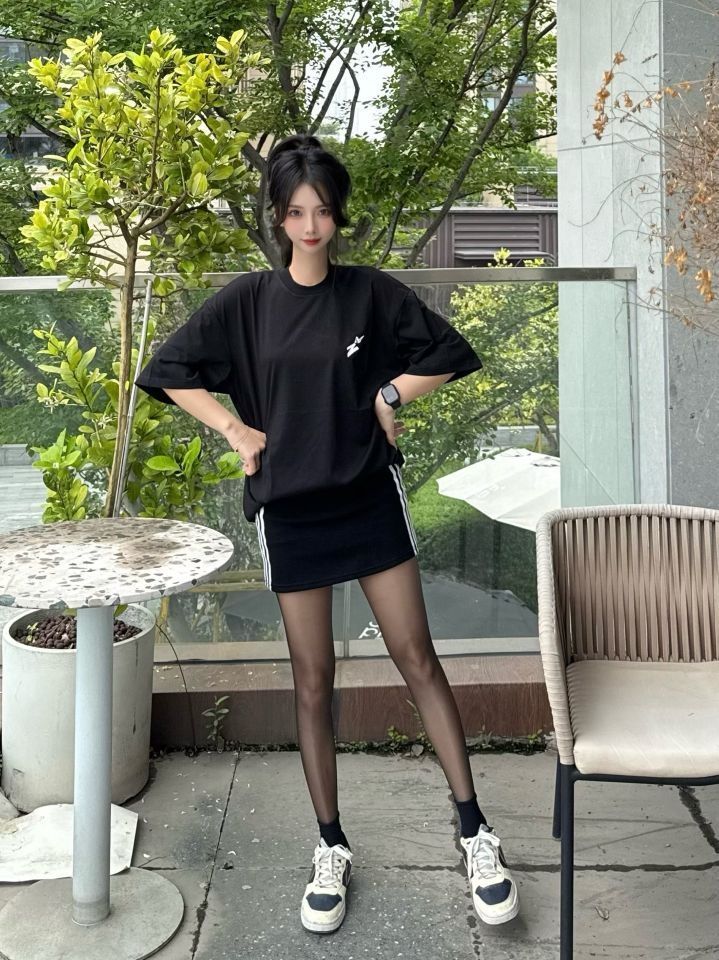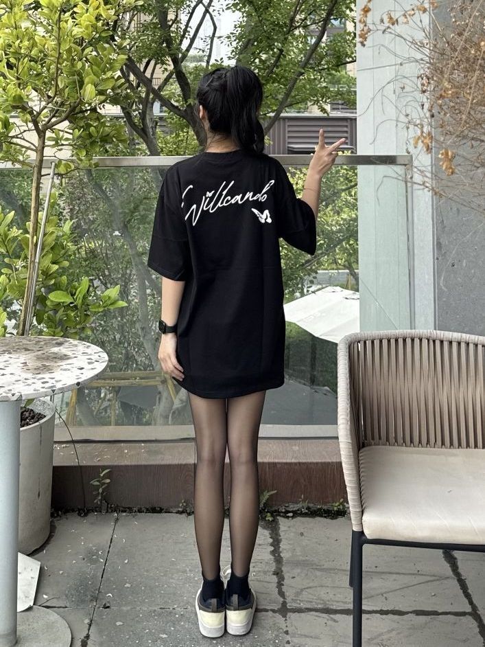 黑色长t才是我的夏日主打~ 百搭又显瘦! 夏日玩下装消失轻松get韩系欧尼氛围✨ 穿着冰冰凉凉的肤感好适合夏天🧊 虽然是基础款黑t 但是有蝴蝶印花就不觉得单调🦋 简单搭配就美很大~ (图源网络侵删)