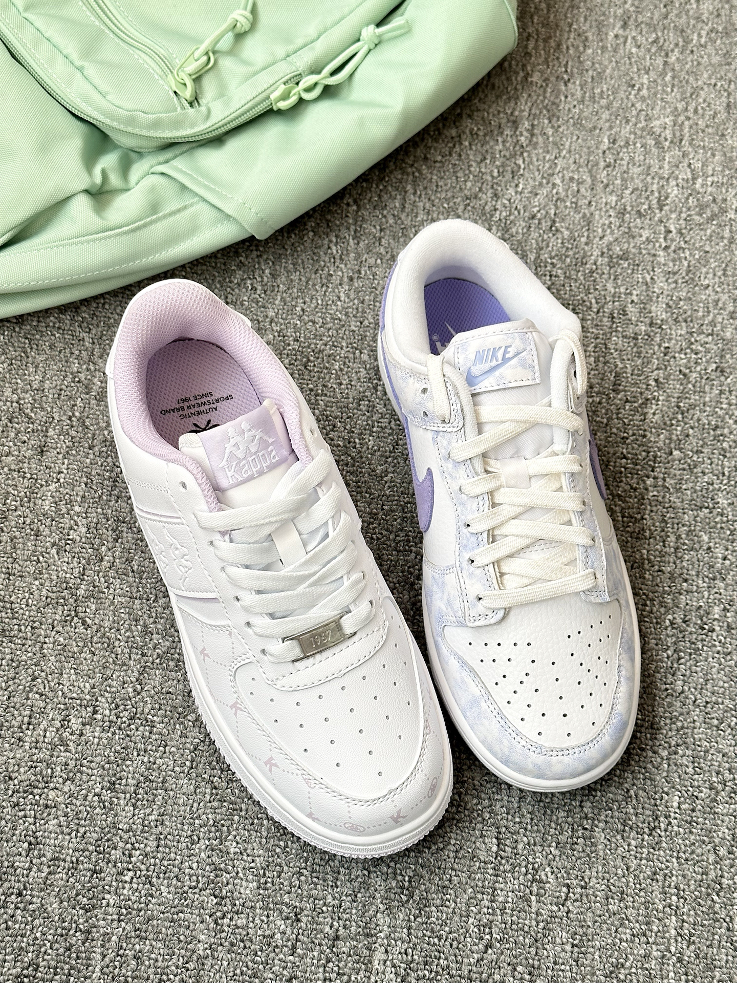 是为春天准备的两双紫色板鞋呢 好纠结选哪双 一双Kappa的白紫 配色清新百搭 另一双nike 鞋跟和侧面有种油画的感觉 两双上脚都蛮舒适的 也适合春夏呢