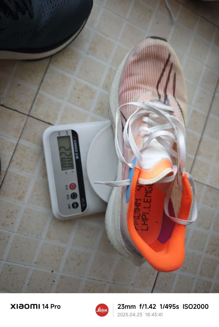 这双鞋是海外版转内销的,据说海外卖699 美金? 这个价格我感觉不太值。 peba大底,确实韧,我体重155斤,踩不动,也可能是穿习惯了李宁飞电4C,和李宁的䨻相比,peba确实硬,配速在5以下的不太建议买这双鞋,而且这鞋前脚太宽,我脚就够宽了,在里面还是有些晃荡,可能要加一双碳板缓震鞋垫会更好一些。但是150的价格,要啥自行车,口粮鞋吧,日常穿也可以(就是丑了些)