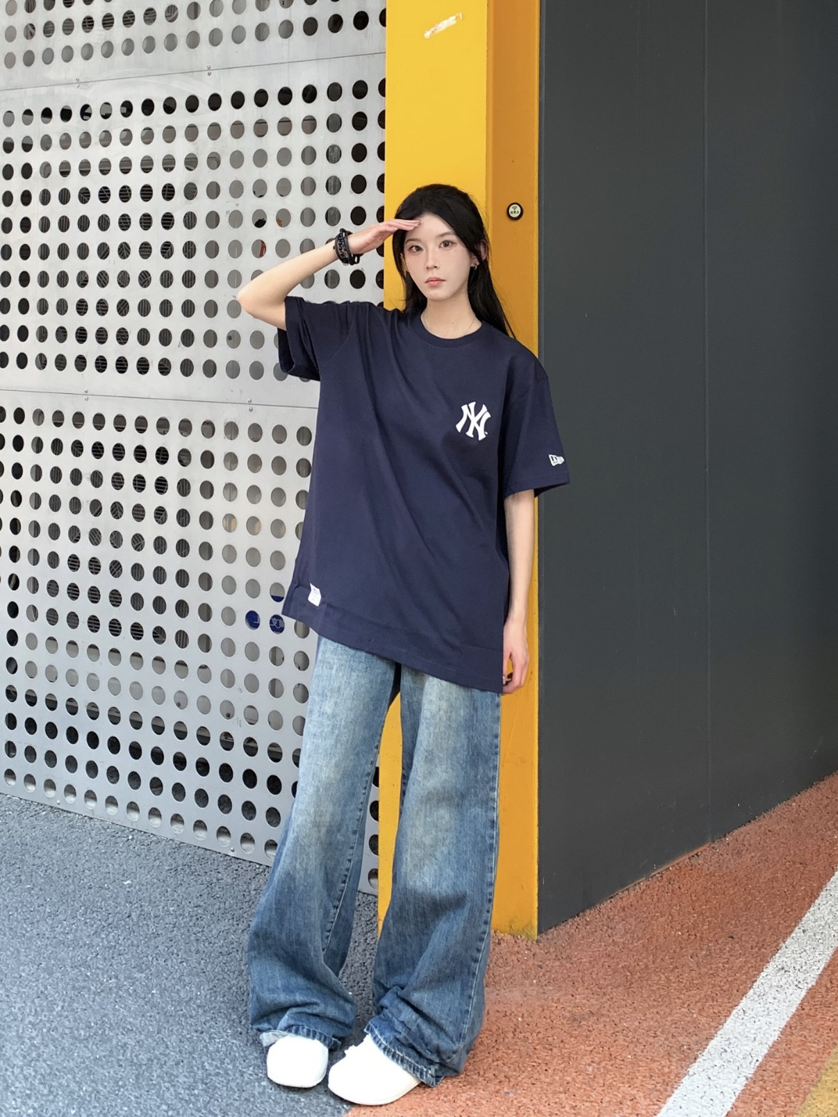 蓝色系穿搭真的是我的夏日常见穿搭 今天来给大家分享一下👋 蓝色T恤+蓝色水洗牛仔裤十白色板鞋 一整个青春活力值拉满有没有🥏 这件T恤我每次穿都会被它的版型惊艳到 宽松舒适也很板正🏏 简约的logo和图案设计就很百搭呀@海旯