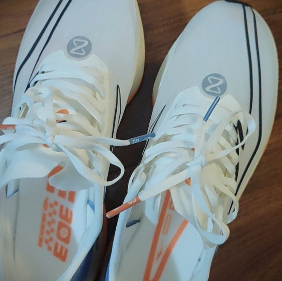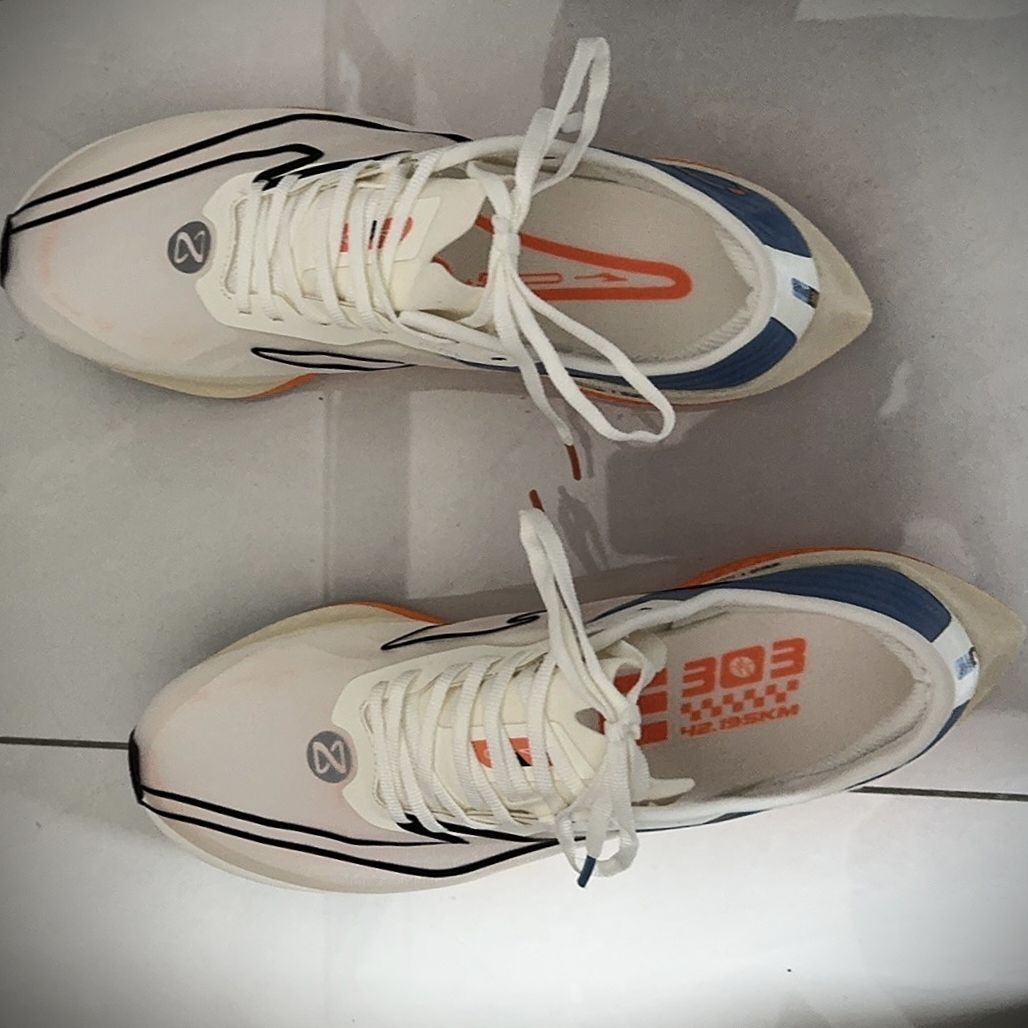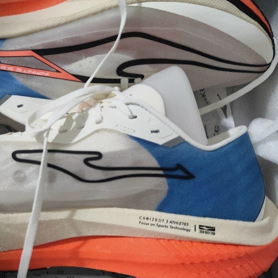 🌸日落配色太绝,鞋面是云罗纱材质,透气很棒,夏天跑步不怕闷脚。 🌸中底的QI科技搭配异形碳板,缓震和推进力双双在线,跑步、训练都超给力。 🌸鞋舌改成了袜套式设计,后跟海绵填充也更多,脚感舒适,鞋脚一体性很强。 缺点: 🍀尺码偏大,鞋帮袜口紧,穿脱不太方便,宽脚的朋友慎重考虑。